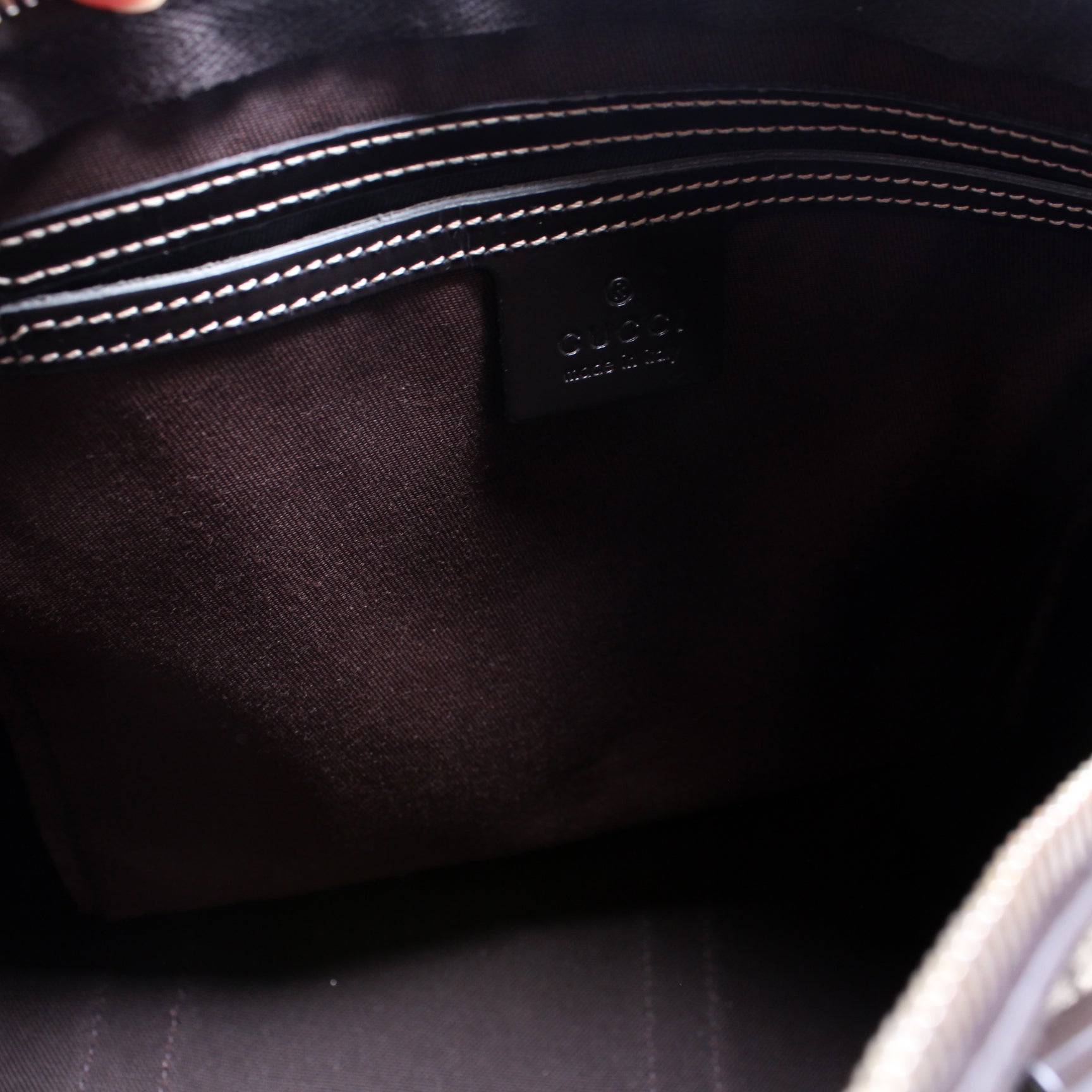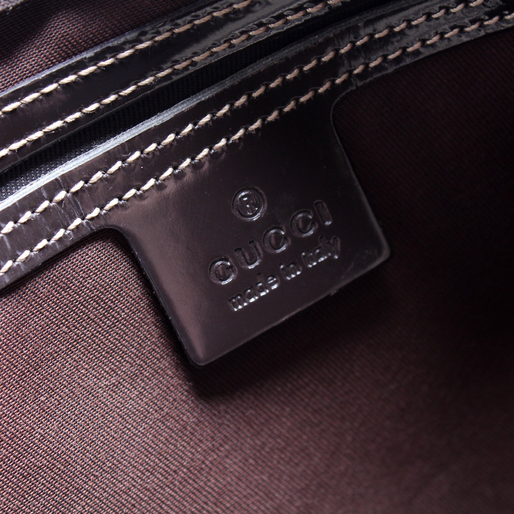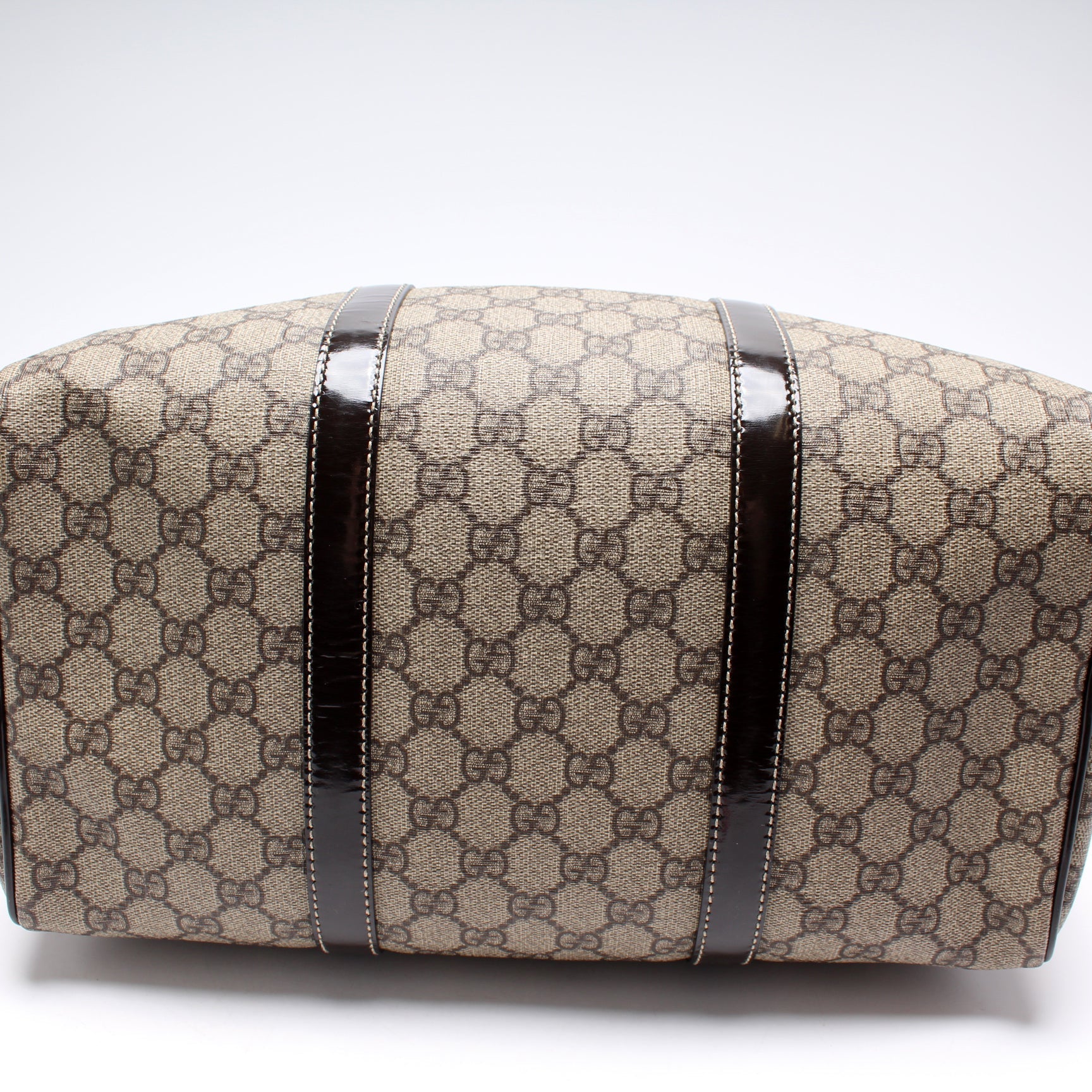 This Gucci Joy Boston Bagis eye catching bag. The exterior is in the classic Gucci GG coated canvas.