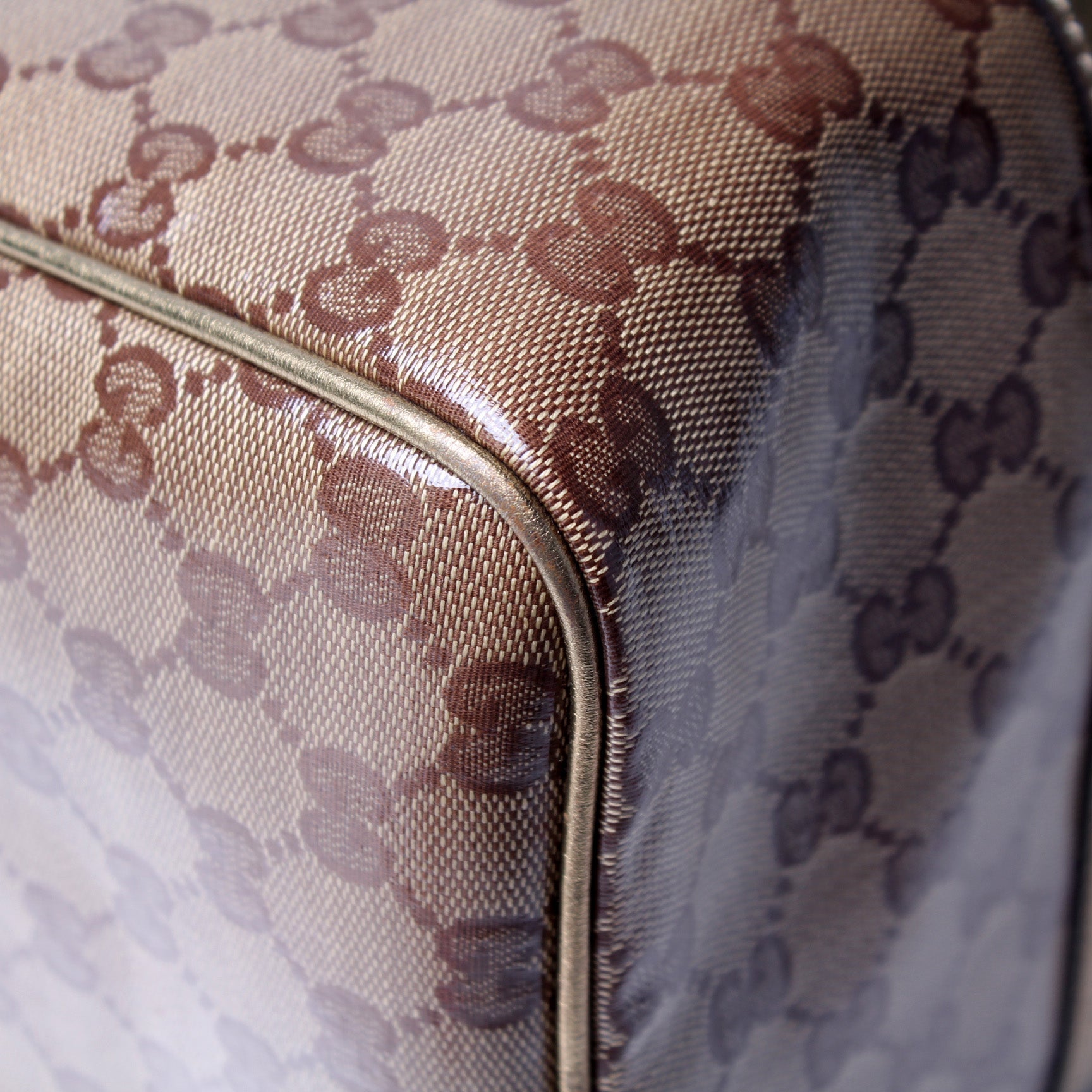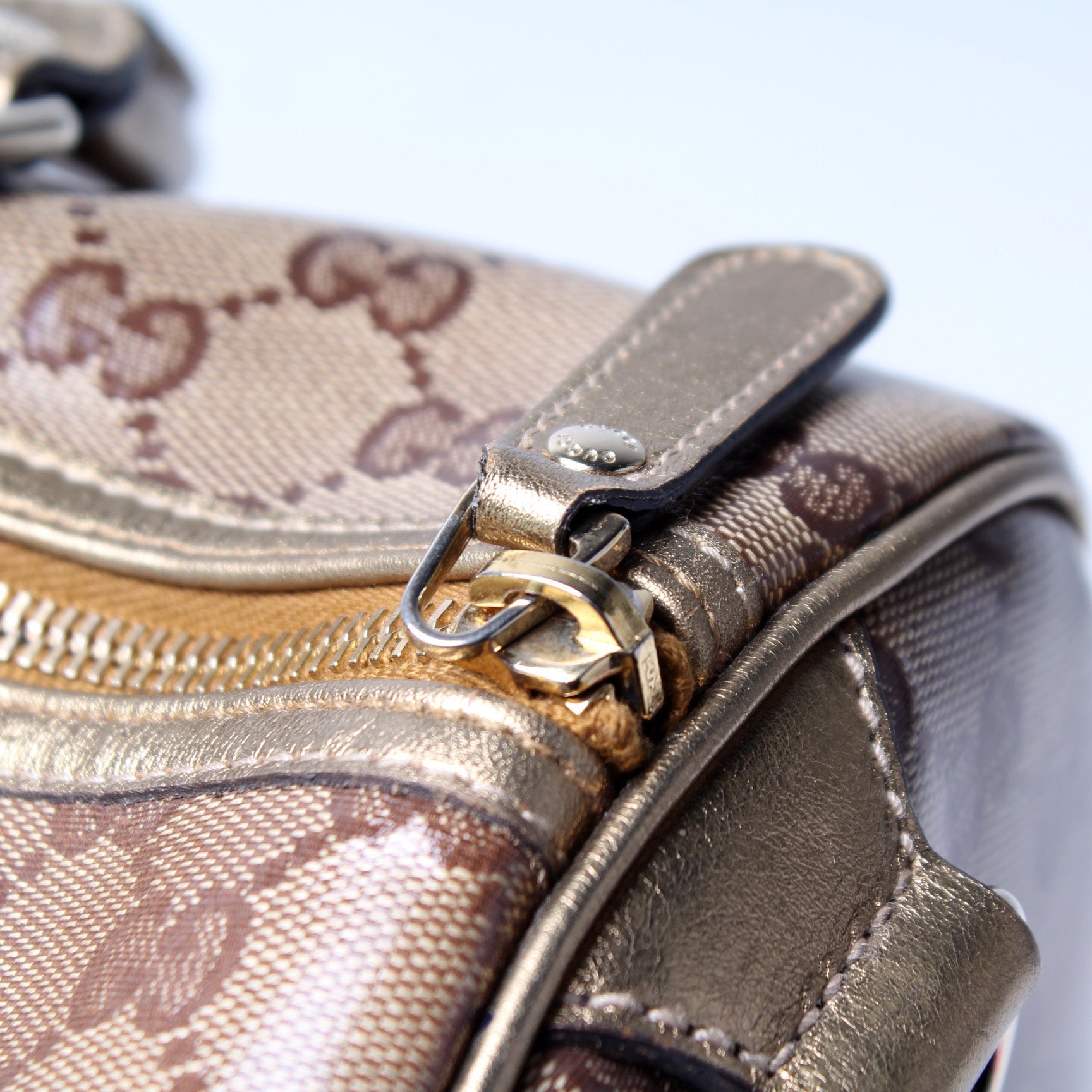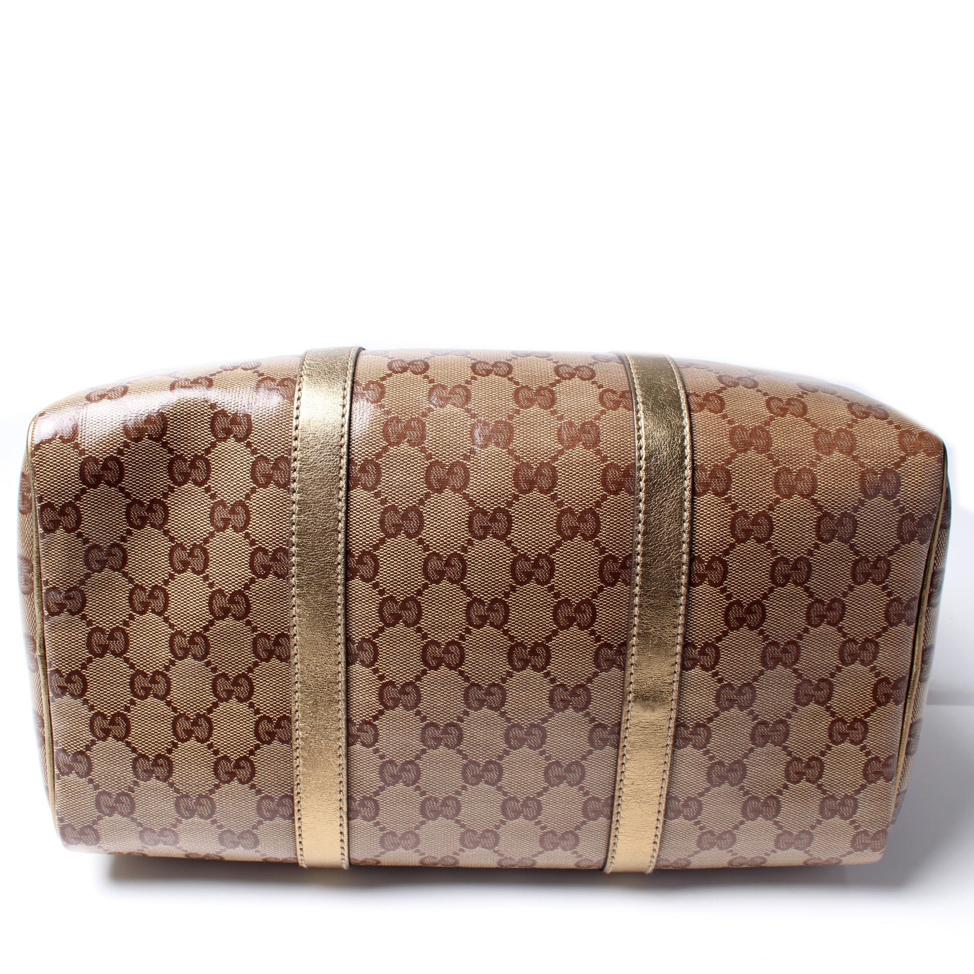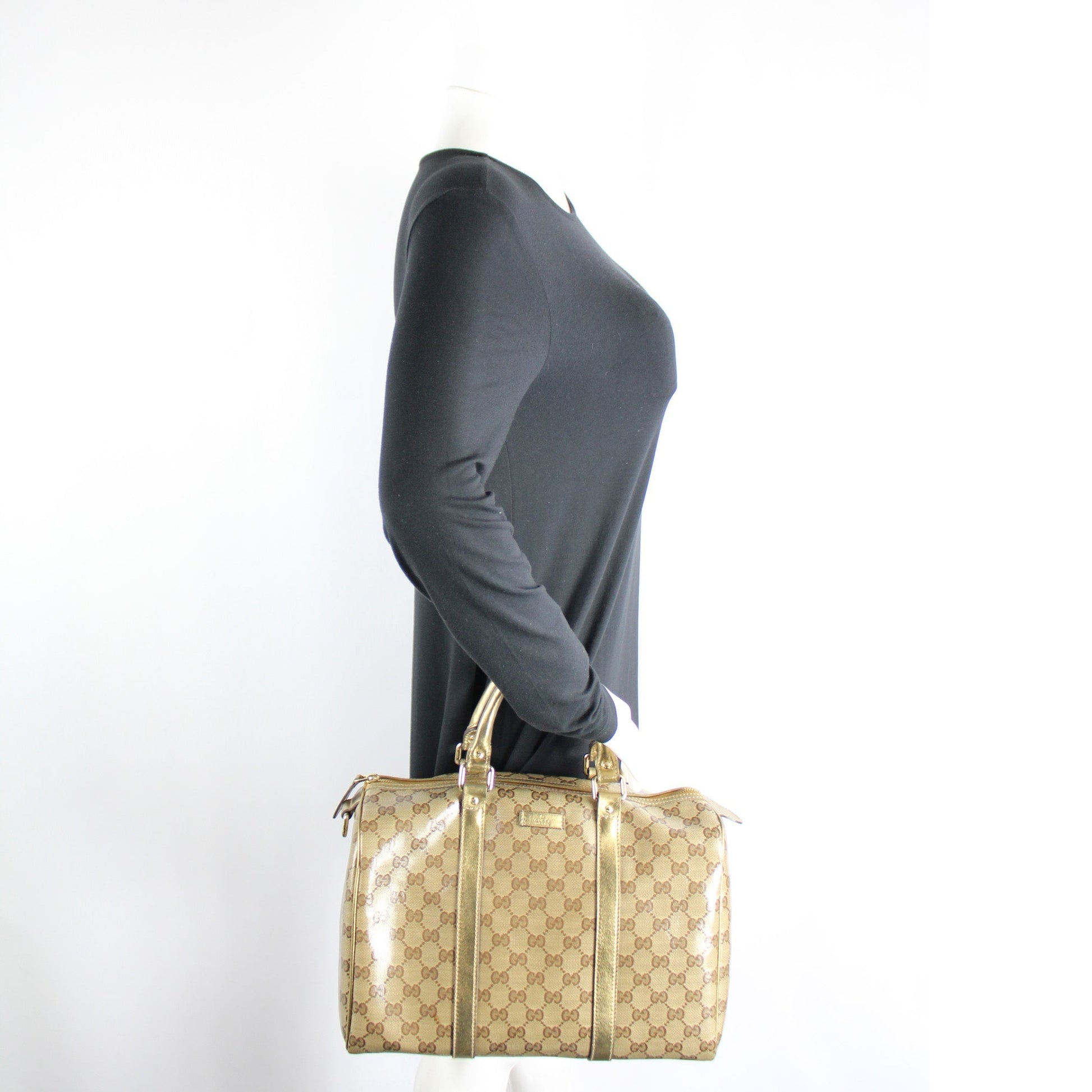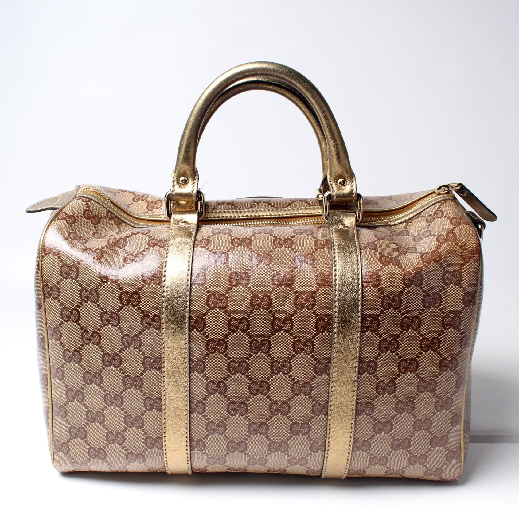 This Gucci Joy Boston Bagis eye catching bag. The exterior is in the classic Gucci GG Supreme coated canvas.