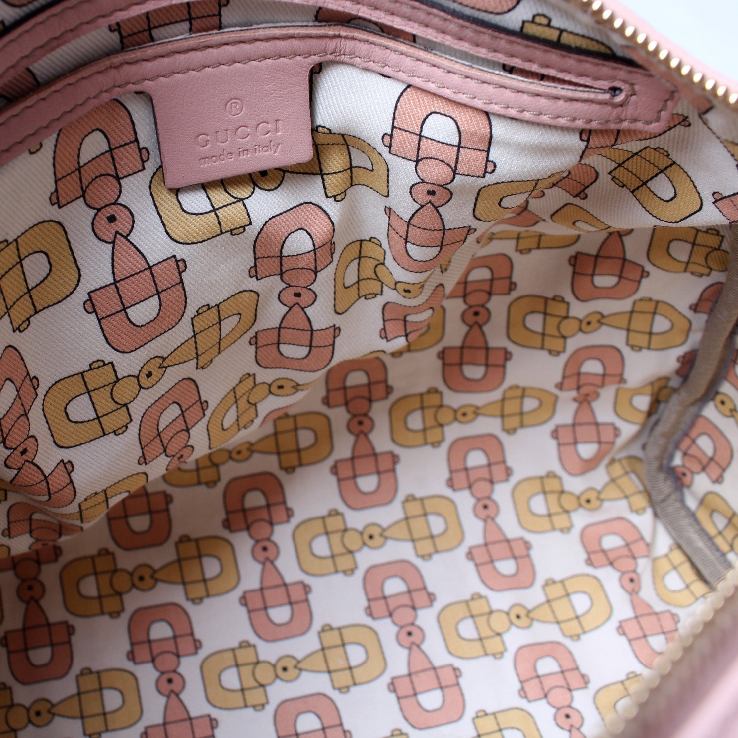 This Gucci Joy Boston Bagis eye catching bag. The exterior is in the classic Gucci Guccissima leather.