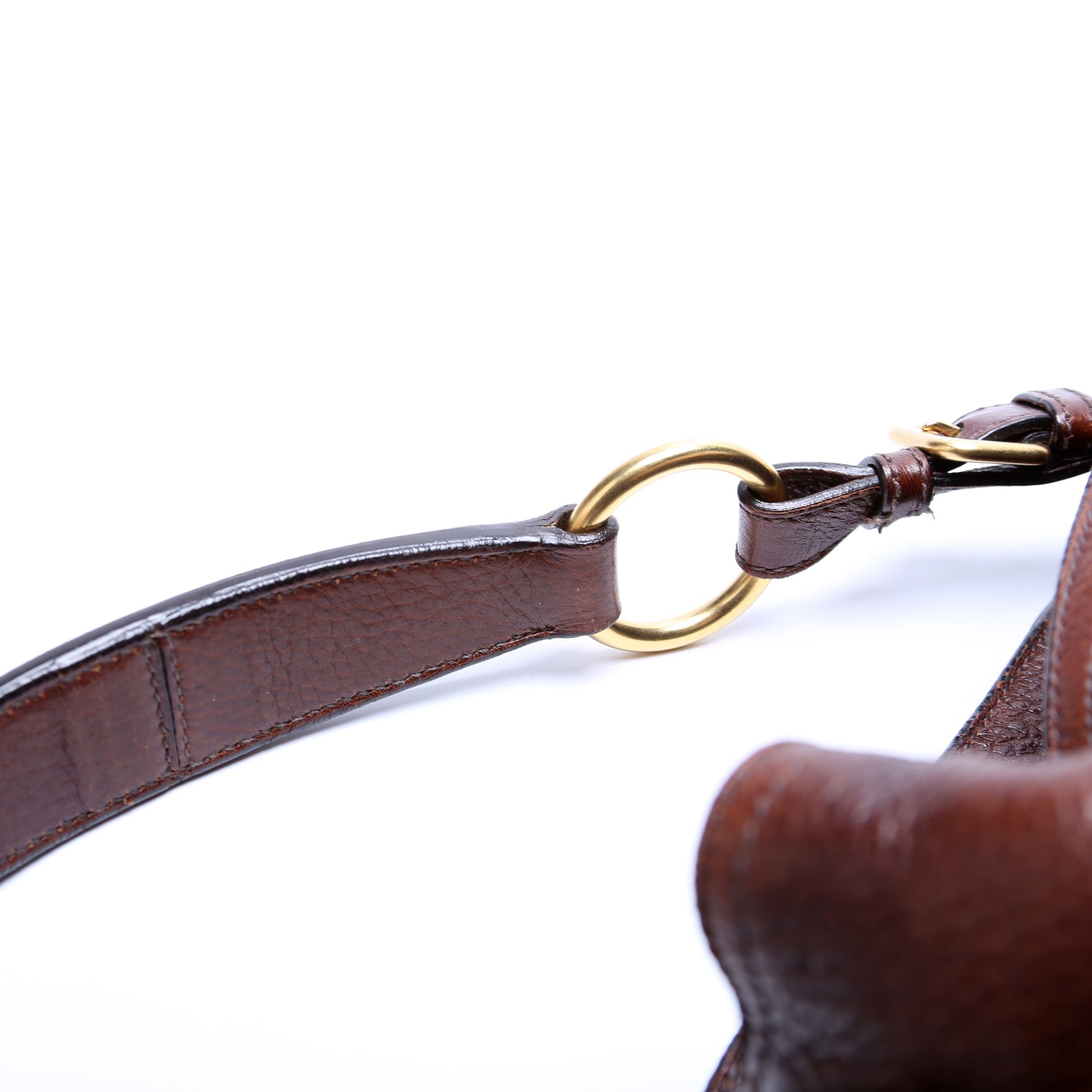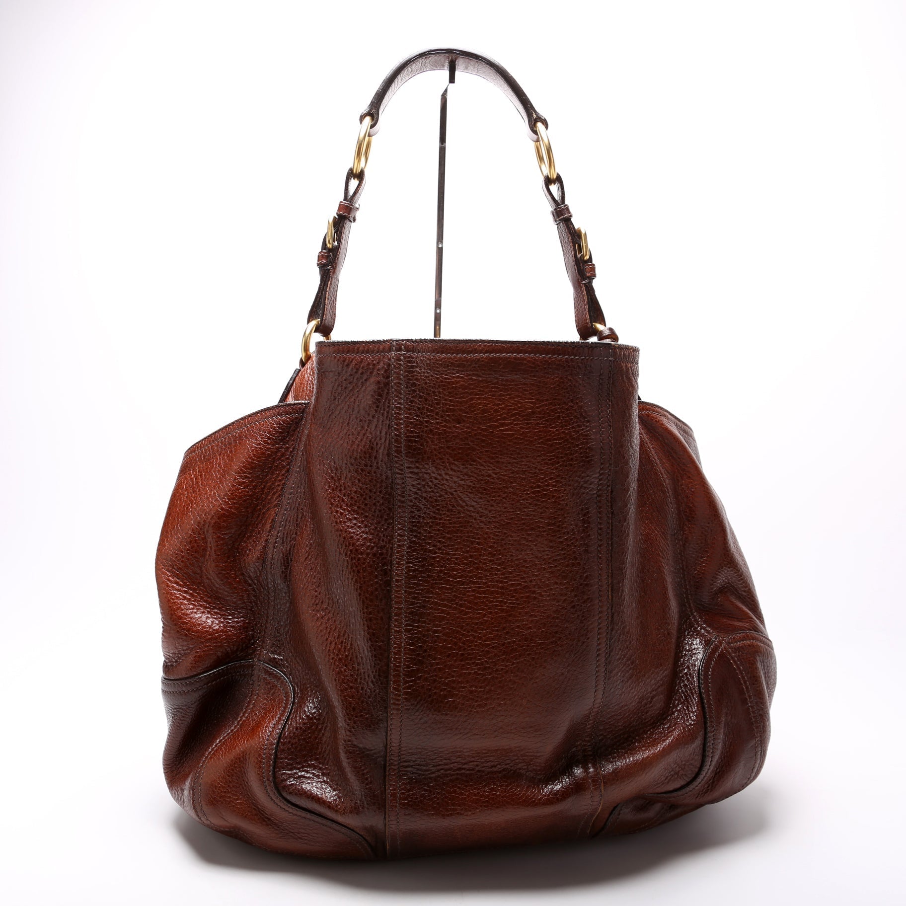 Exterior: The exterior leather is free from major wear. The glazing shows minor cracks along the opening of the bag.