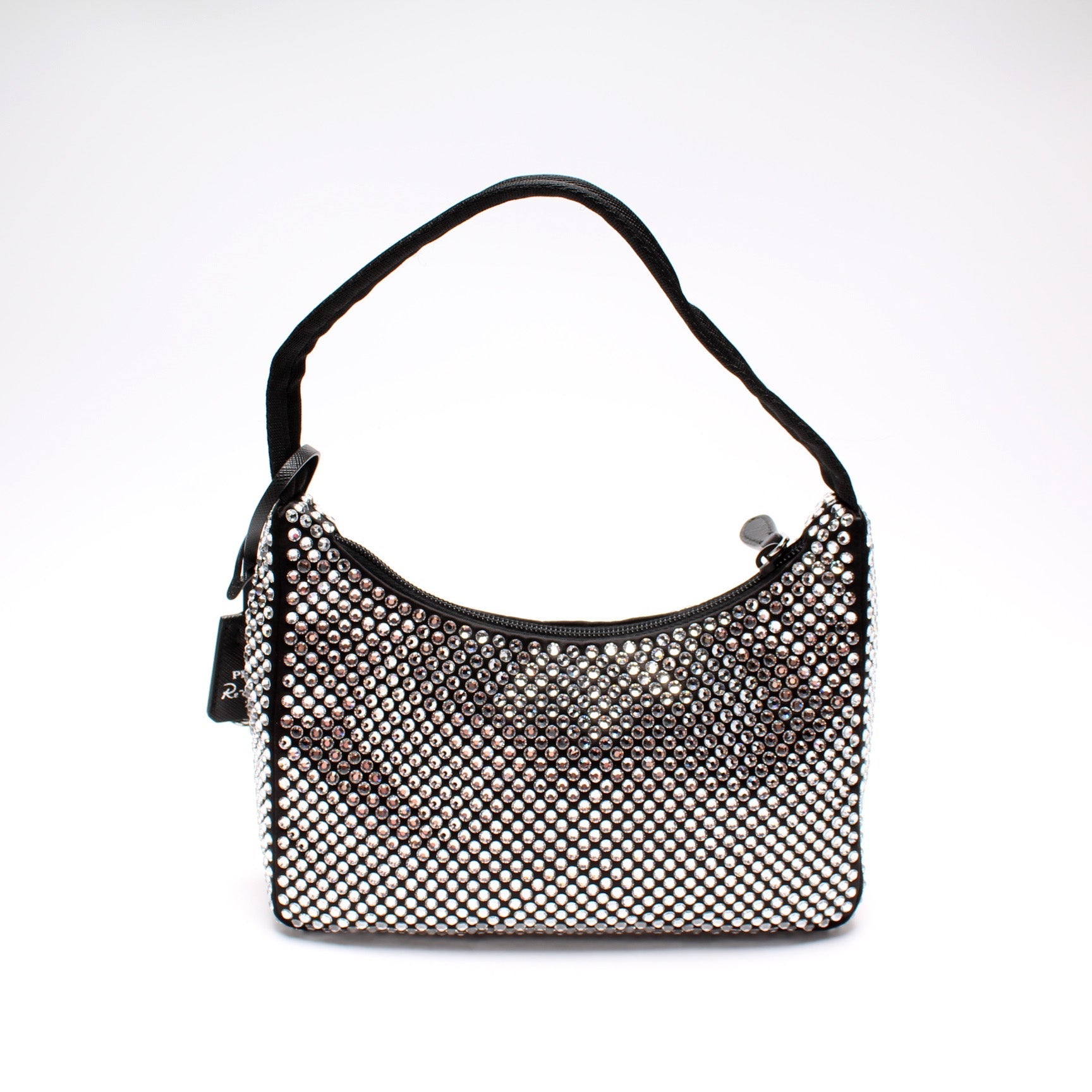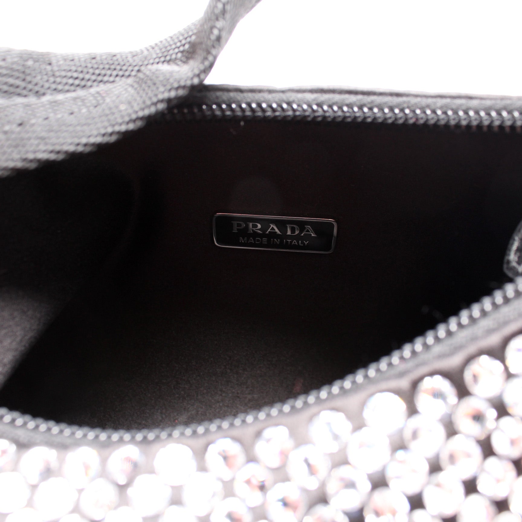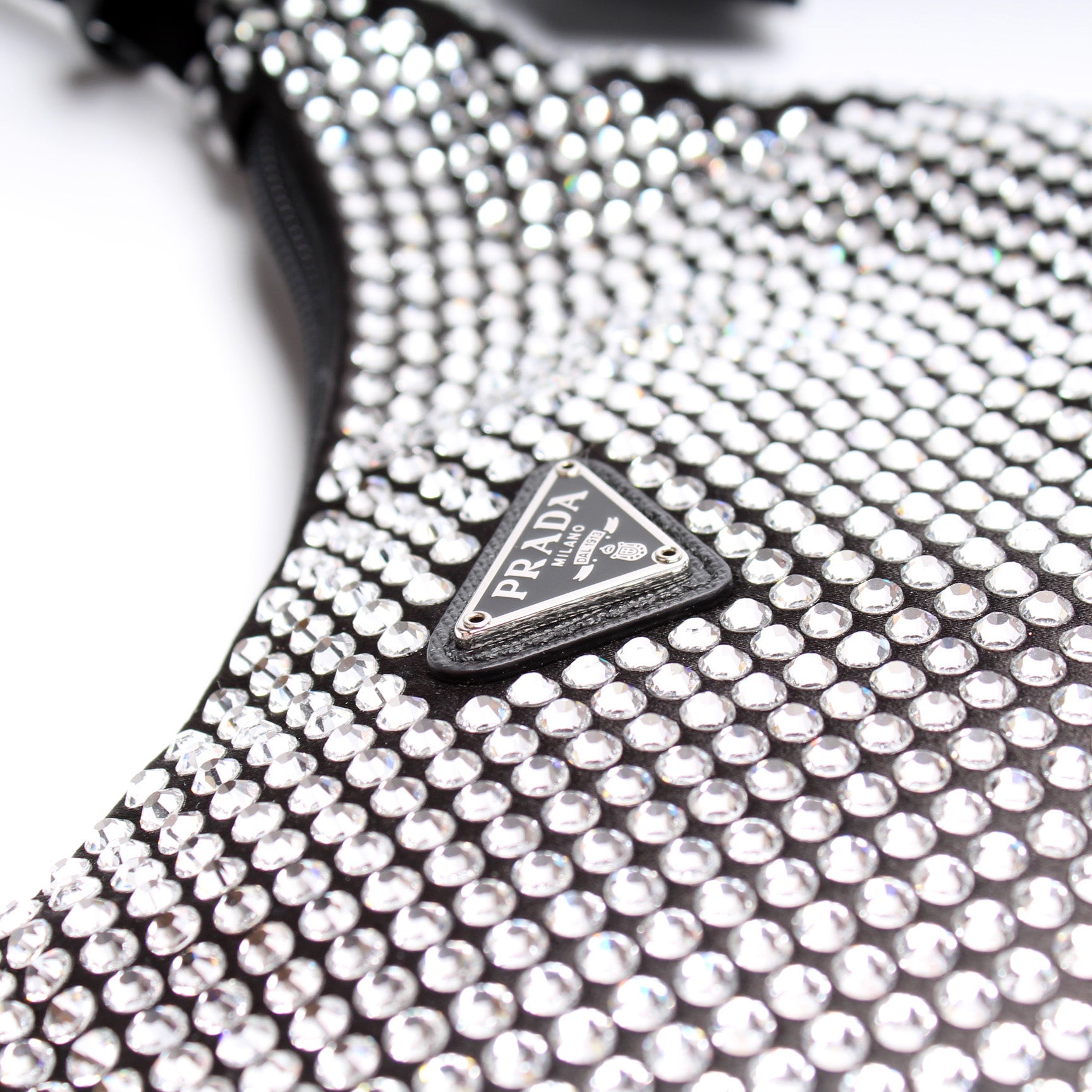 This Prada Satin Crystal Re-Edition 2000 Mini Bagis eye catching bag.