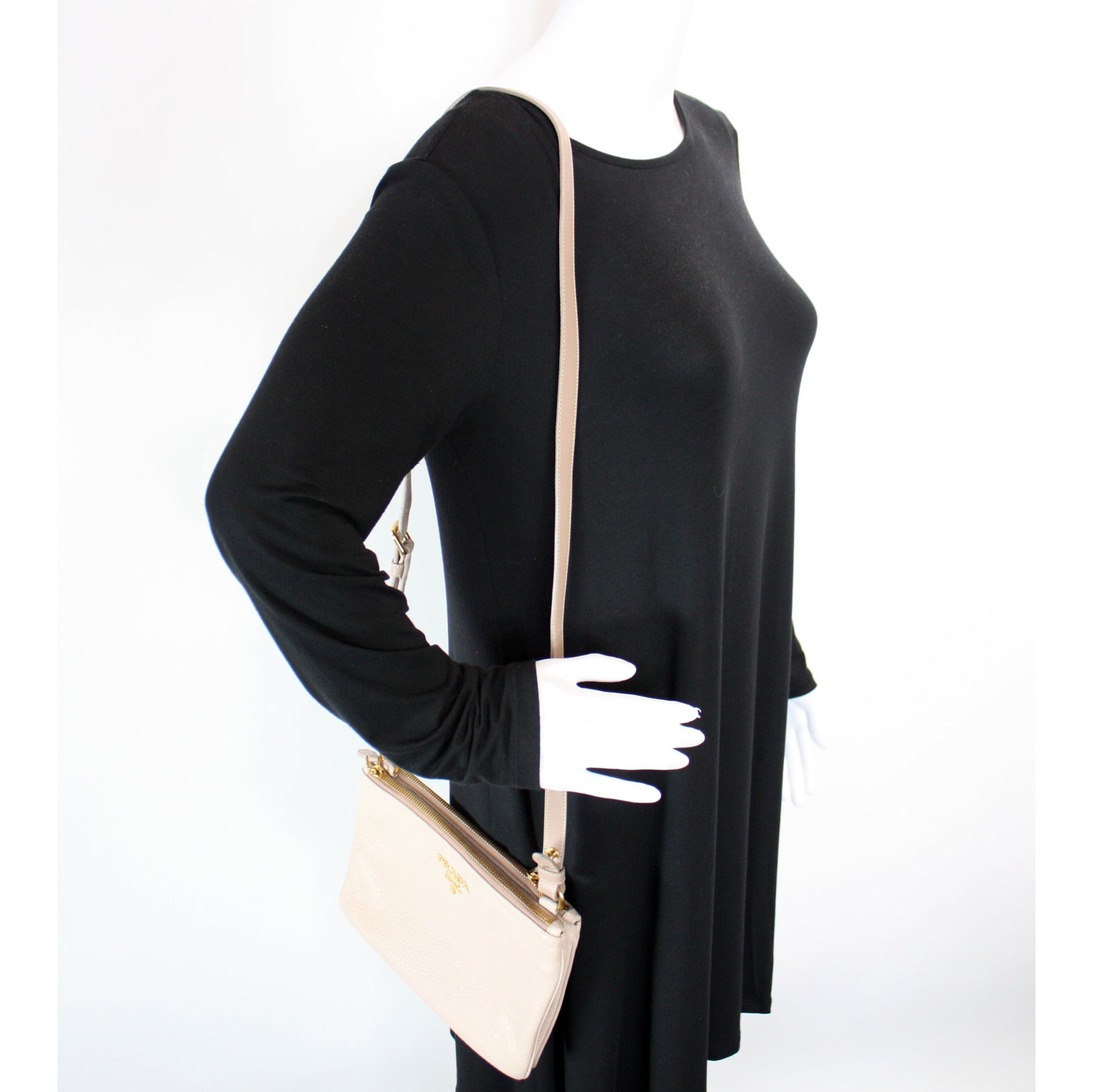This Prada Vitello Phenix Crossbodyis eye catching bag. The exterior is in the classic Vitello leather.
