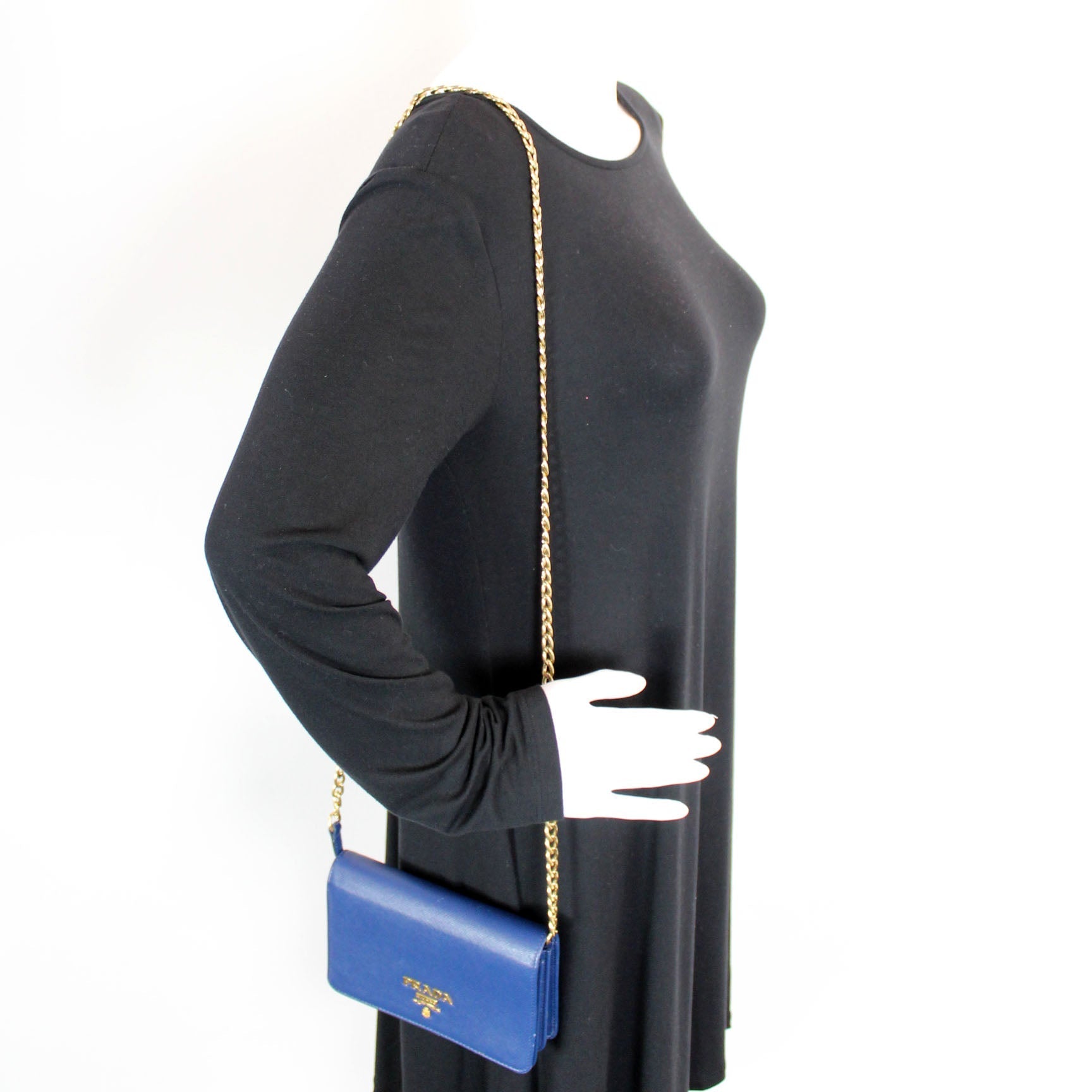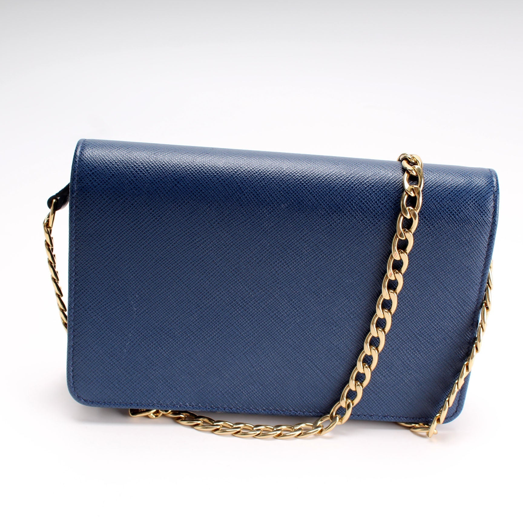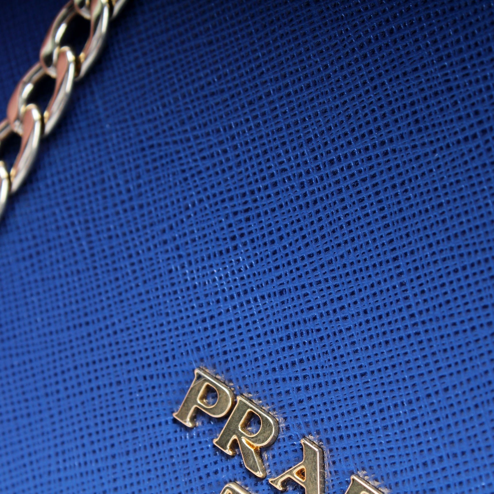 This Prada Saffiano Chain Walletis eye catching bag. The exterior is in the classic Prada Saffiano leather.
