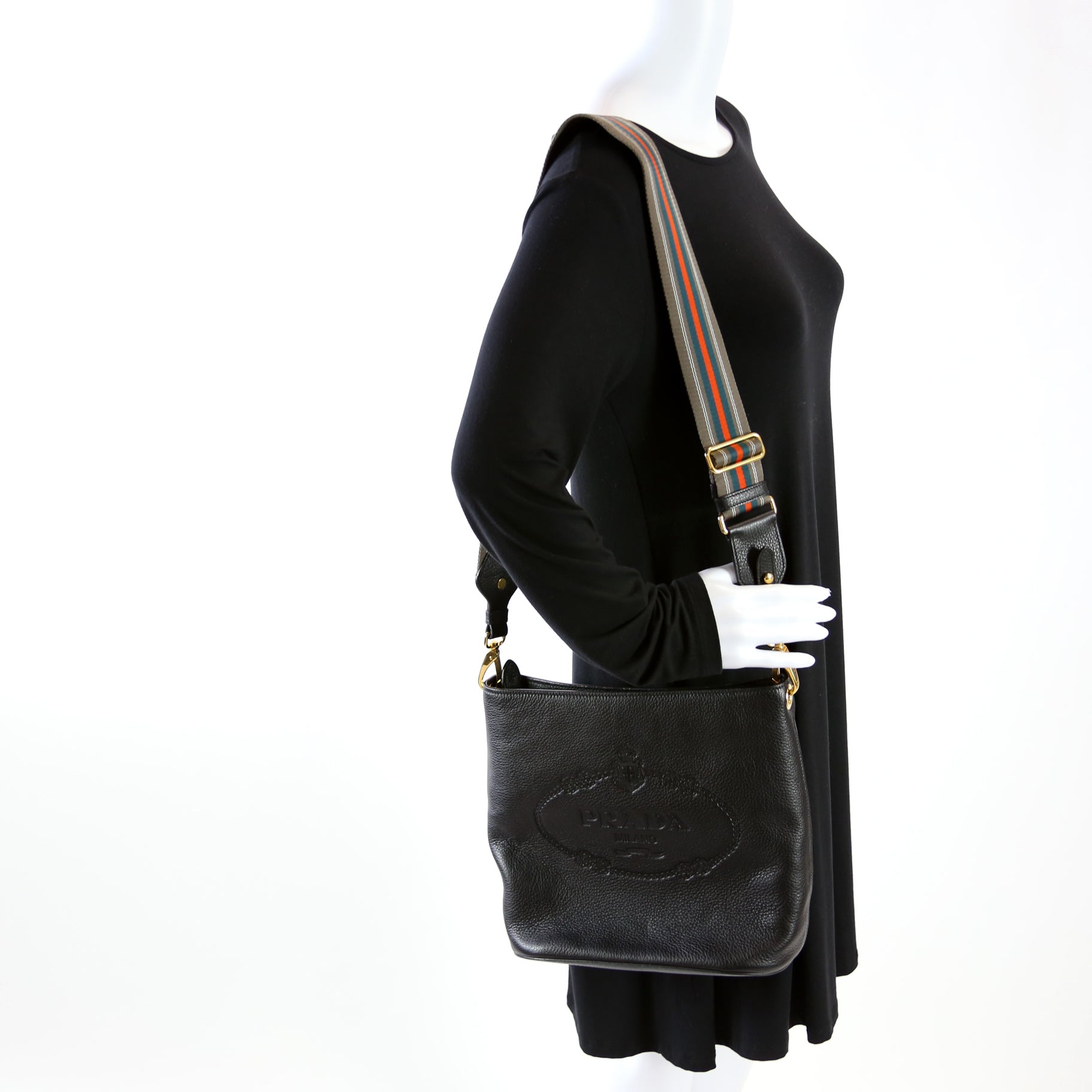 This Prada Vitello Phenix Bucket Bagis eye catching bag.
