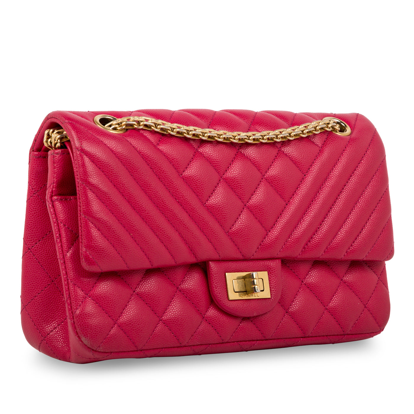 For timeless Parisian-chic there is no better investment than a Chanel timeless bag, be it the classic flap or the original 2.55 re-issue. This particular treasure is the smallest variant of the iconic Re-Issue bag created by Coco Chanel herself. Crafter from its rich Fuchsia grained caviar leather and finished with aged gold hardware, this Re-issue is a rare and stunning find. This re-issue will be the perfect investment piece to take you into SS20 and beyond!