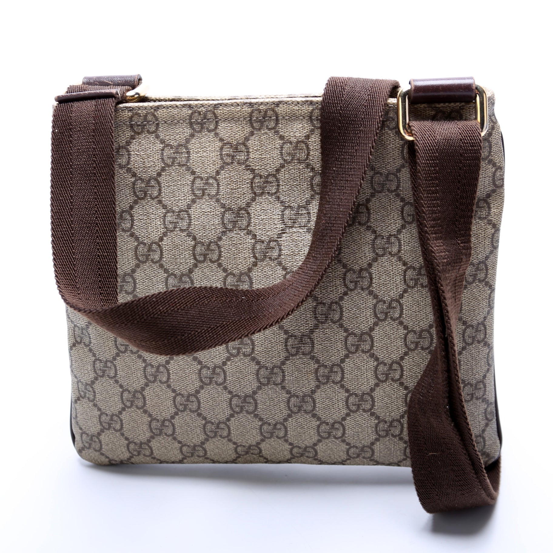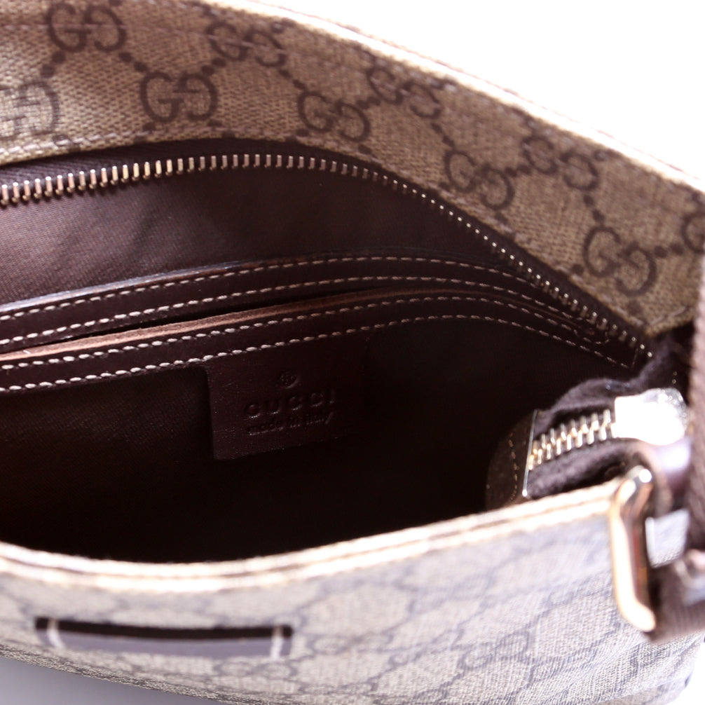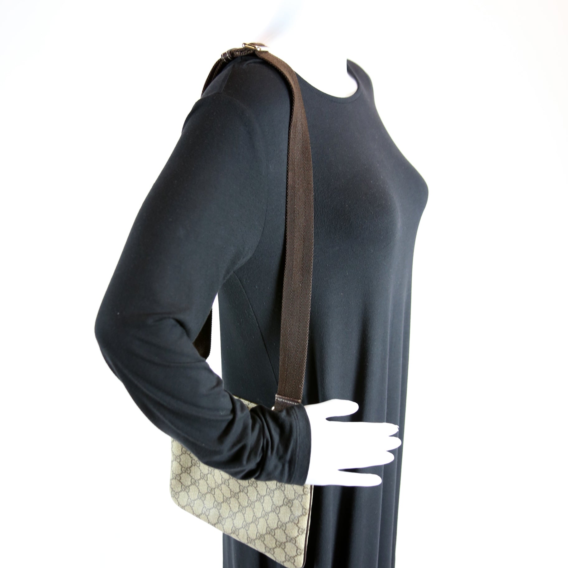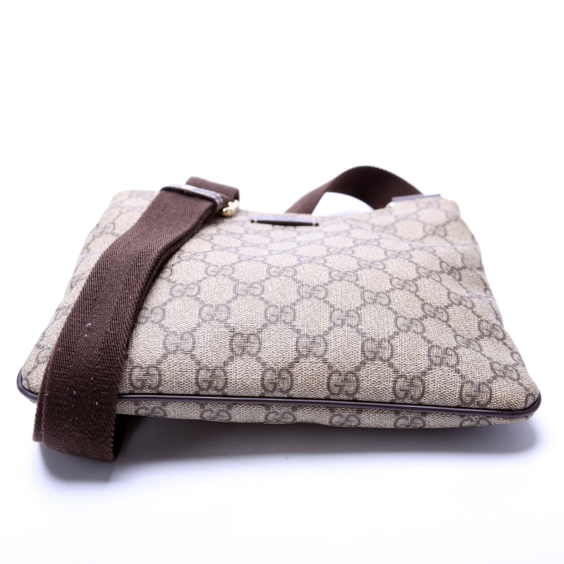 This Gucci Crossbodyis eye catching bag. The exterior is in the classic Gucci GG Supreme coated canvas.