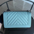 *2019, Series 29* Caviar Old Medium 25CM Chevron Grained Calfskin Light Baby Blue No 29