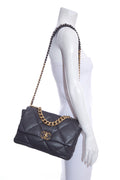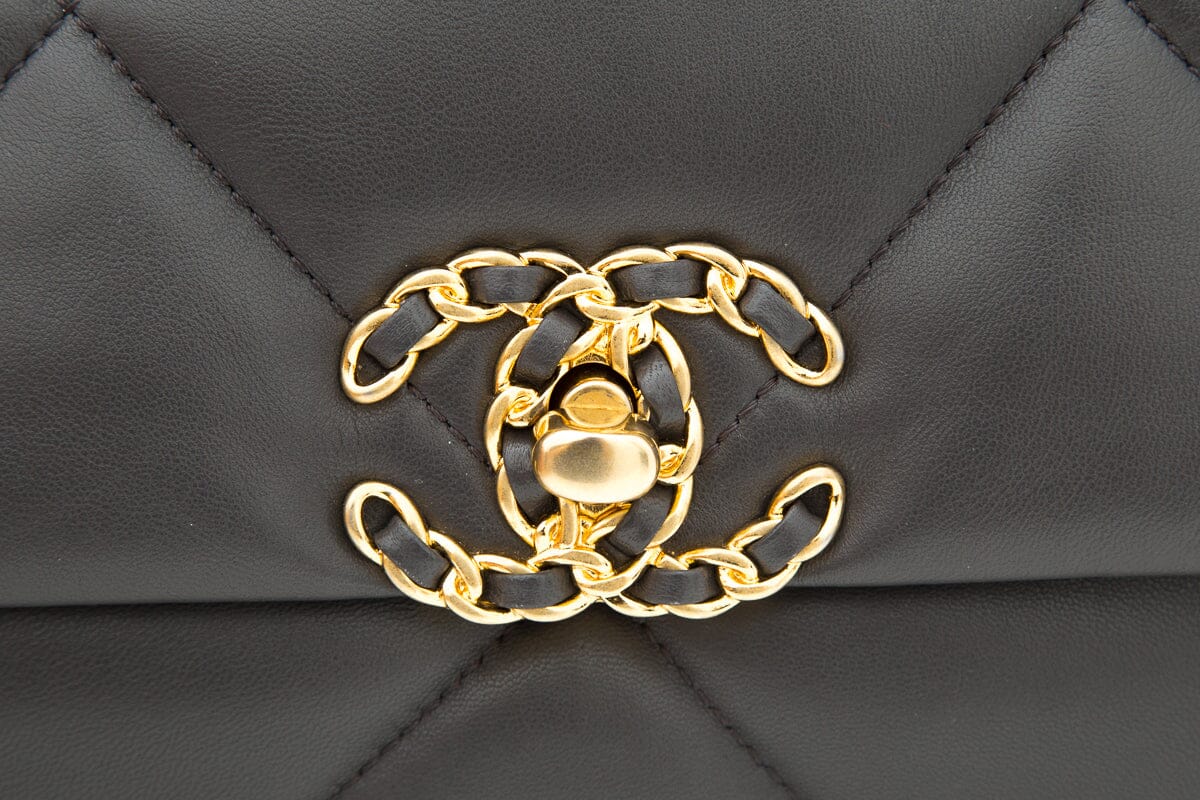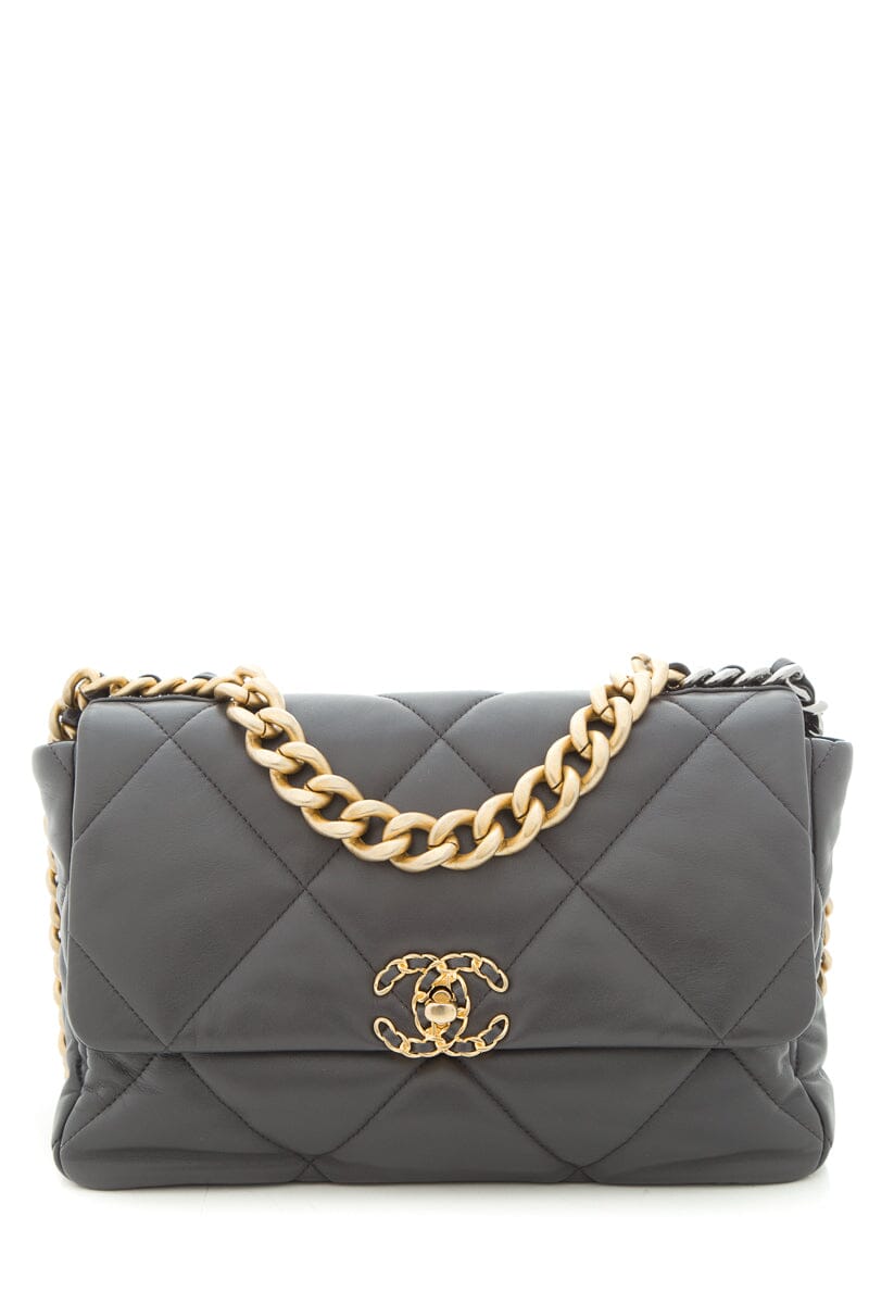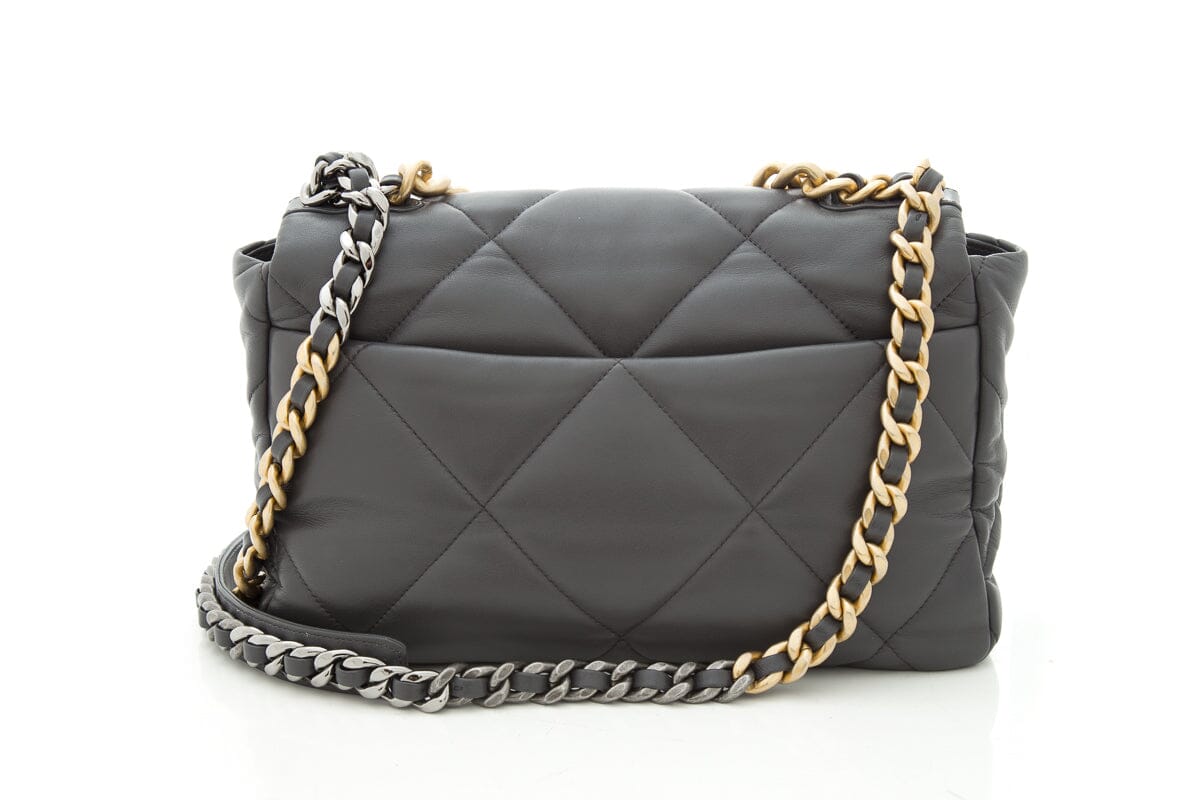 2020 Chanel 19 Grey Lambskin Quilted Flap Handbag