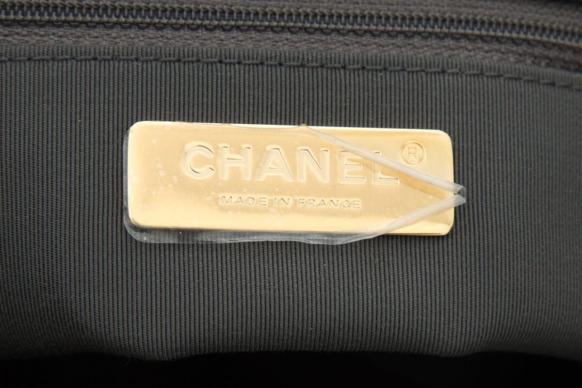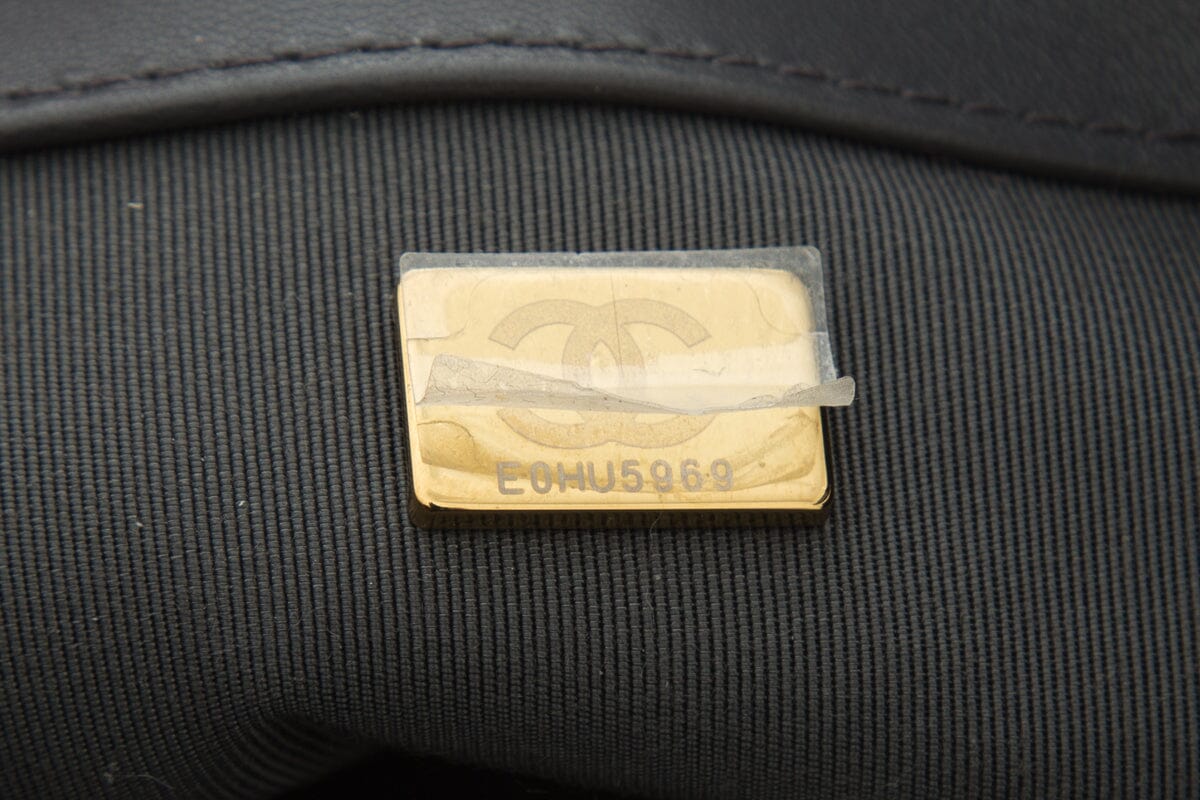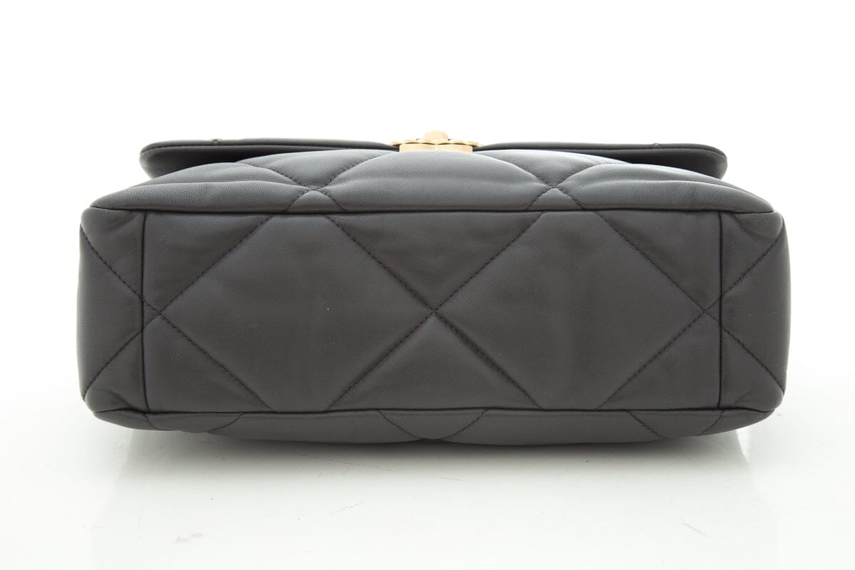 2020 Chanel 19 Grey Lambskin Quilted Flap Handbag. This item is in excellent condition; some small marks on interior lining.