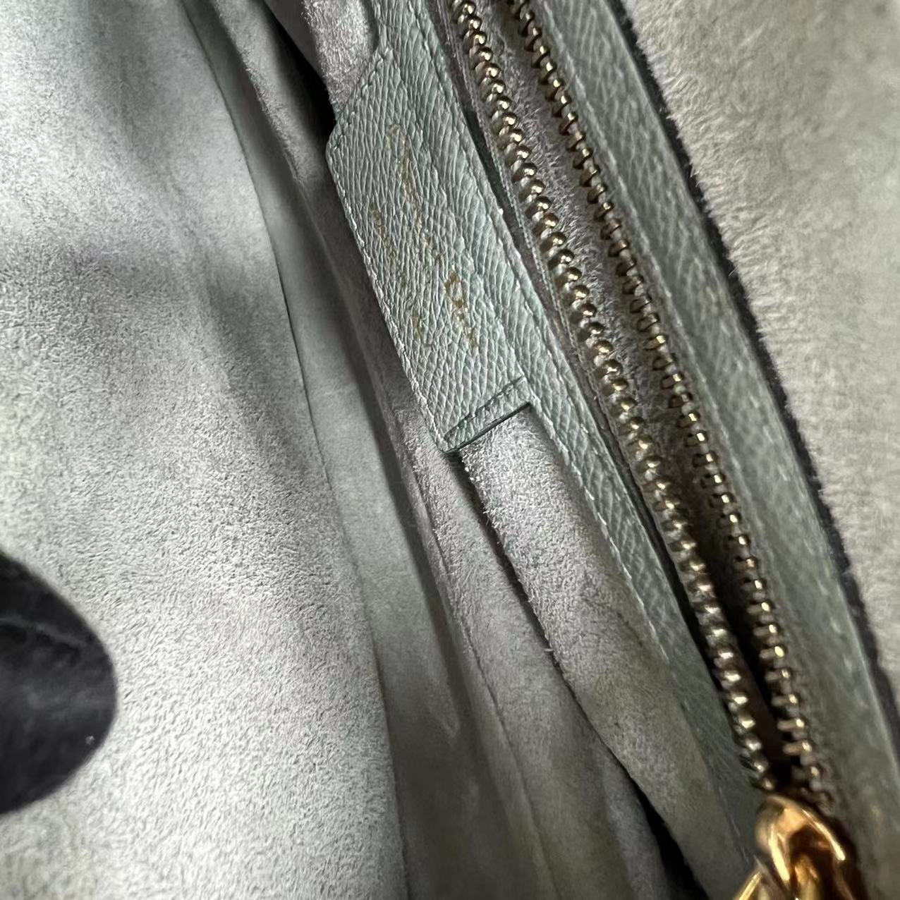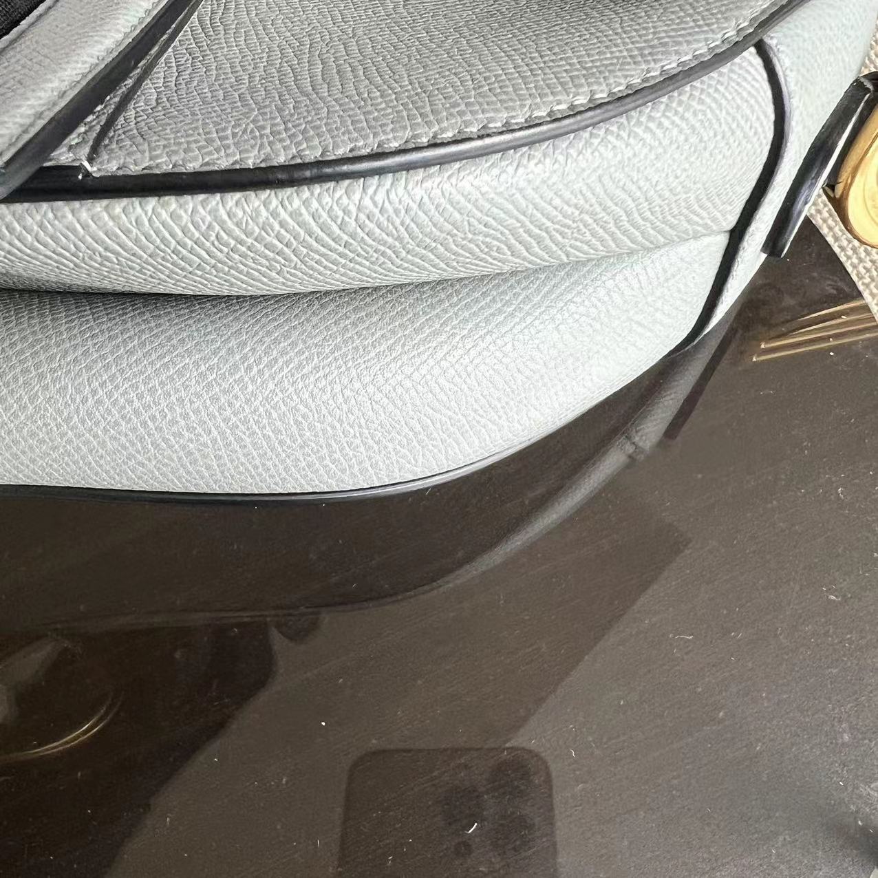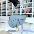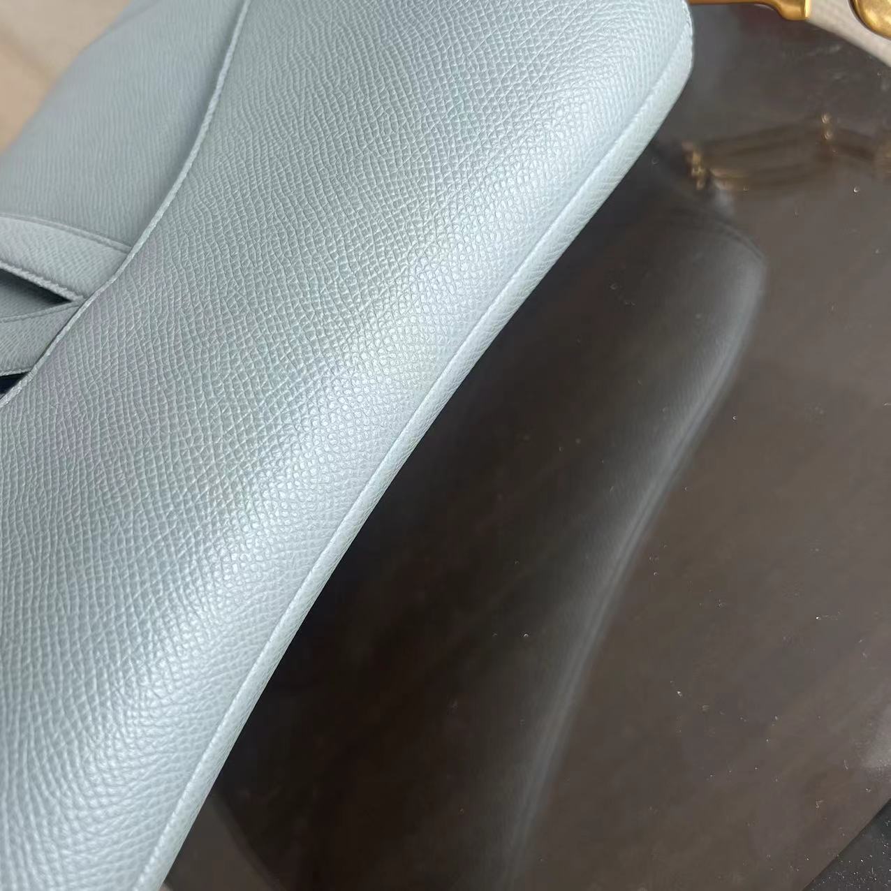 *2022 Receipt, Full Set* Saddle Medium 25CM Grained Calfskin Haze Blue GHW