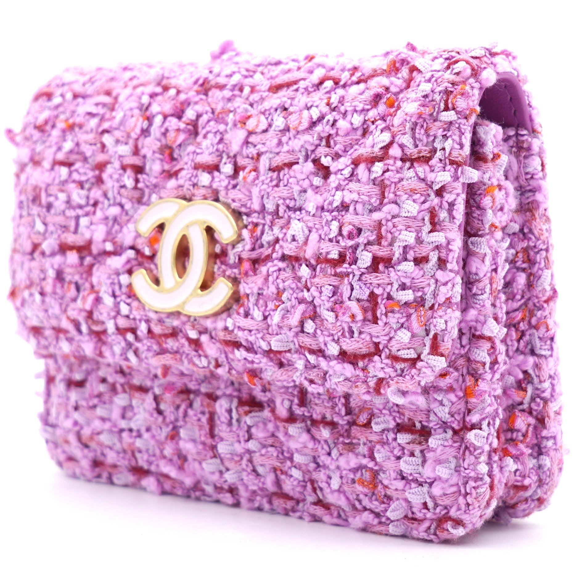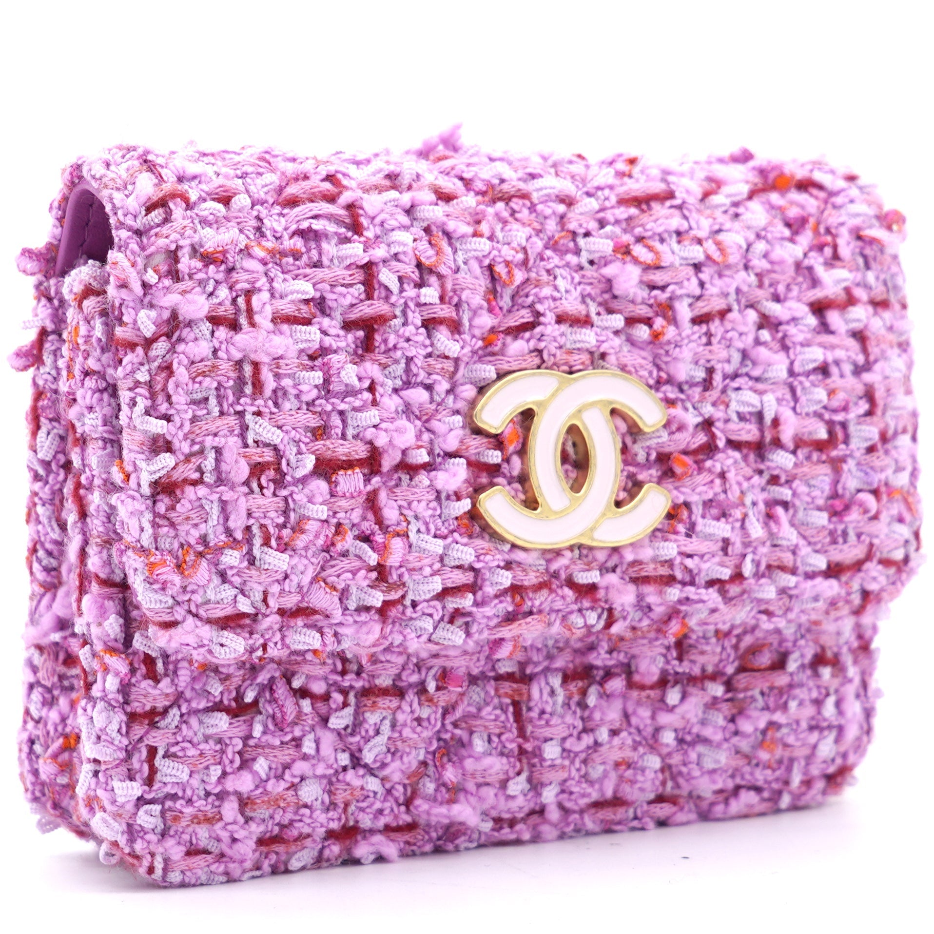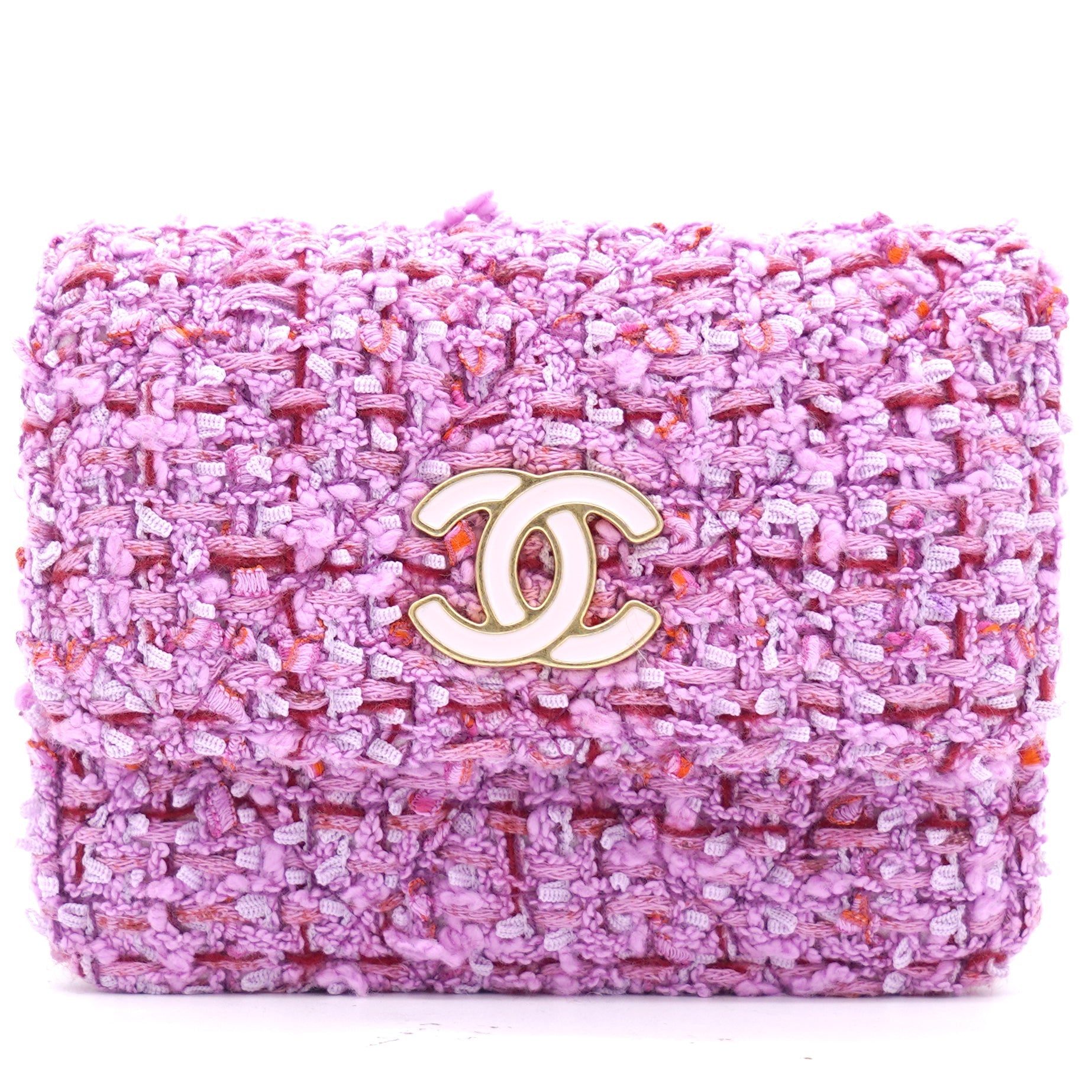 | This stylish wallet on chain is crafted of multicolour pink quilted tweed fabric. The bag features a gold CC on the front flap and a gold chain link belt strap with CC logo at the ends. The front flap opens with a snap to a pink fabric and leather interior with card slots, zipper and patch pockets. | Material: Textile Lining: Textile Hardware: Pink Enamel Finish Metal Accessories:Box; Dust Bag; Card; Receipt Shoulder Strap: Max43.0 cm Drop Adjustable Removable Date Stamp: 31930079 Production Year: 2022 | ![]() |