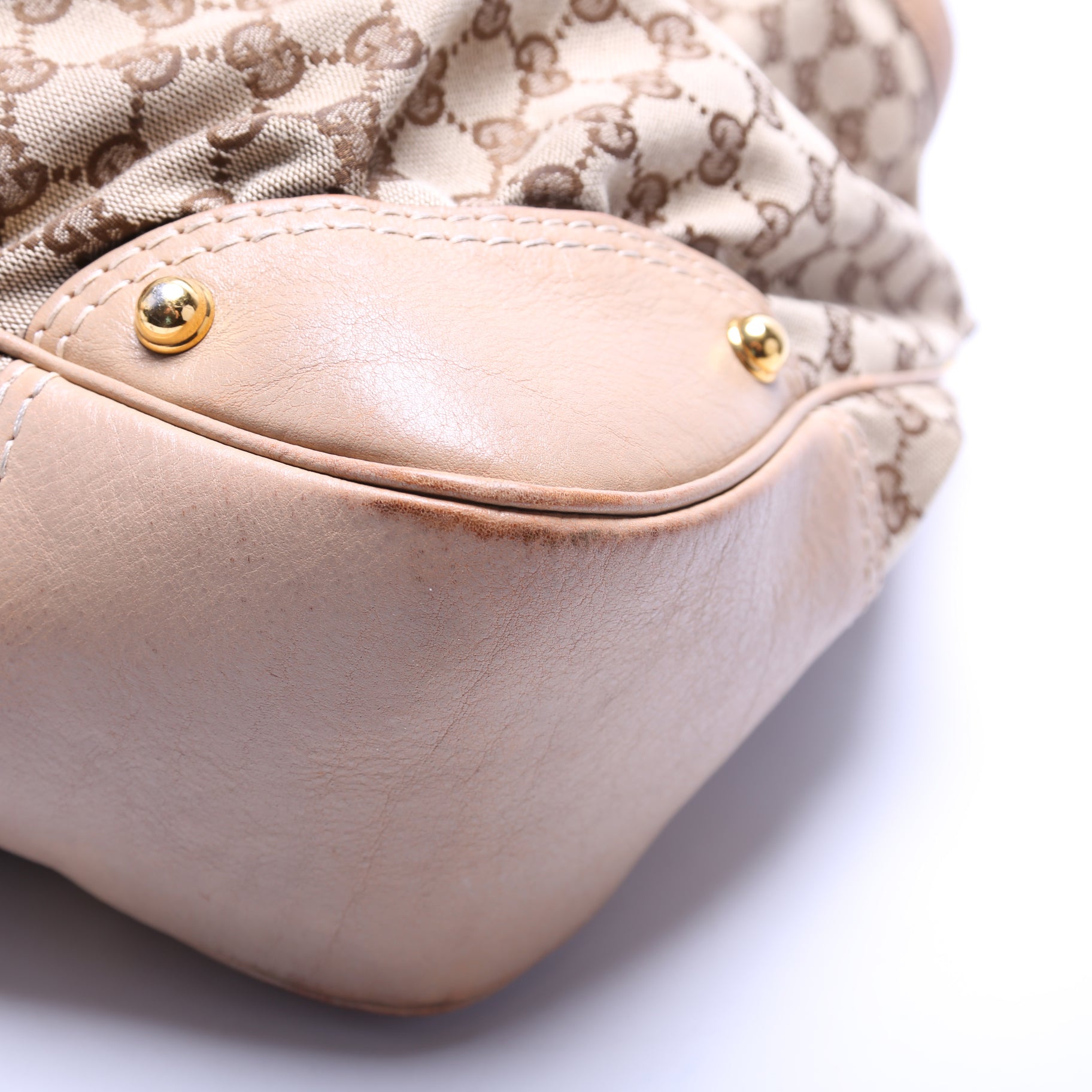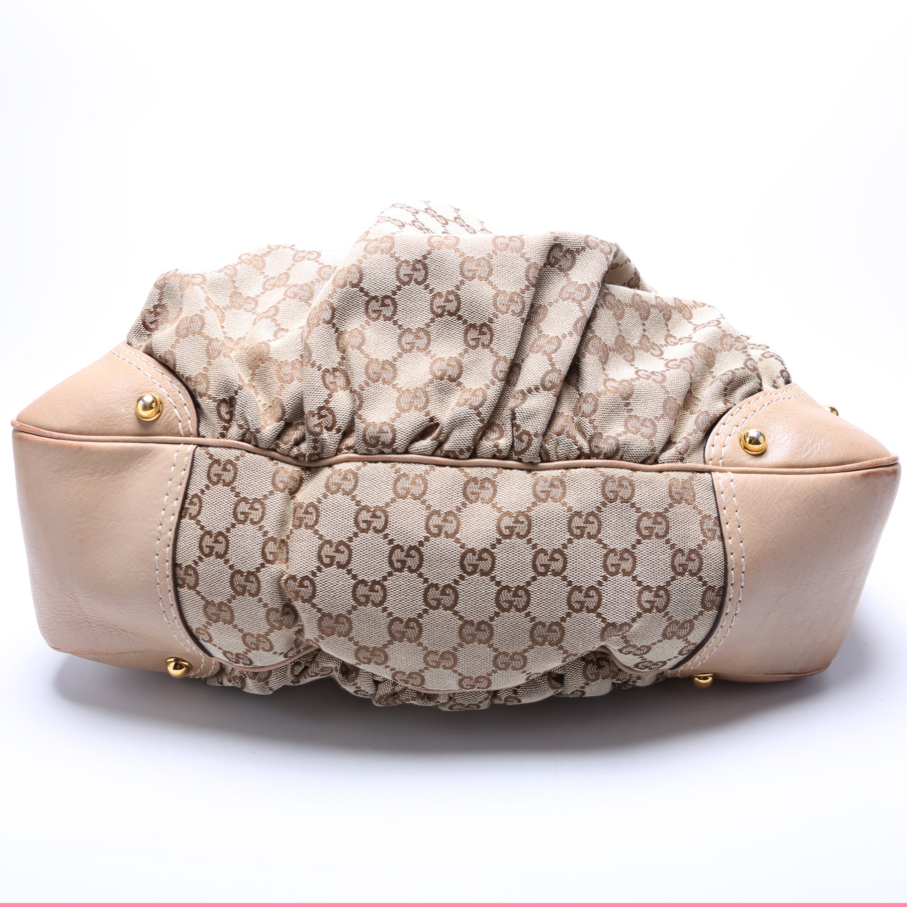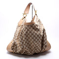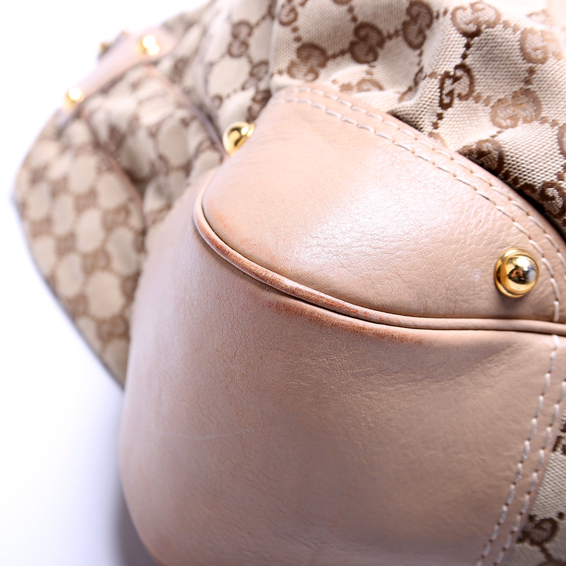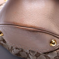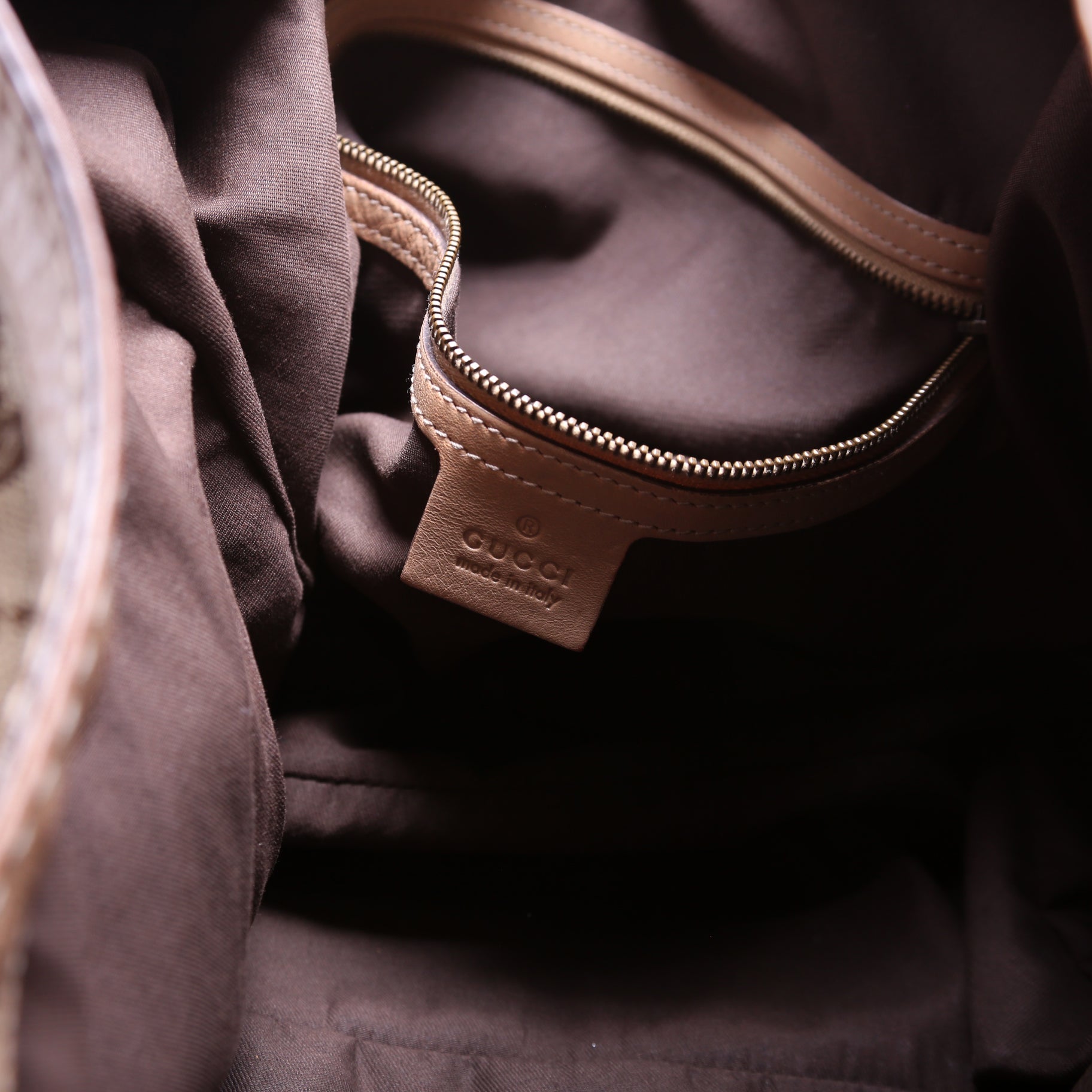 This Gucci GG Canvas Jockey Hobois eye catching bag. The exterior is in the classic Gucci GG canvas.