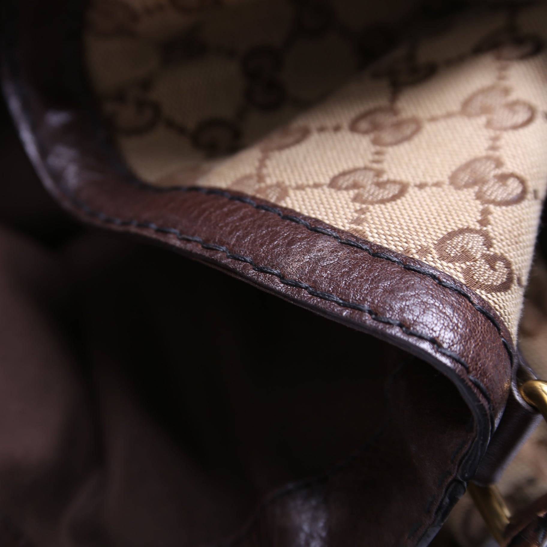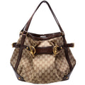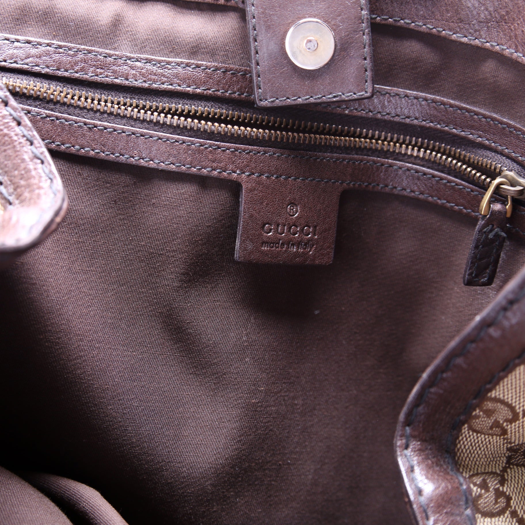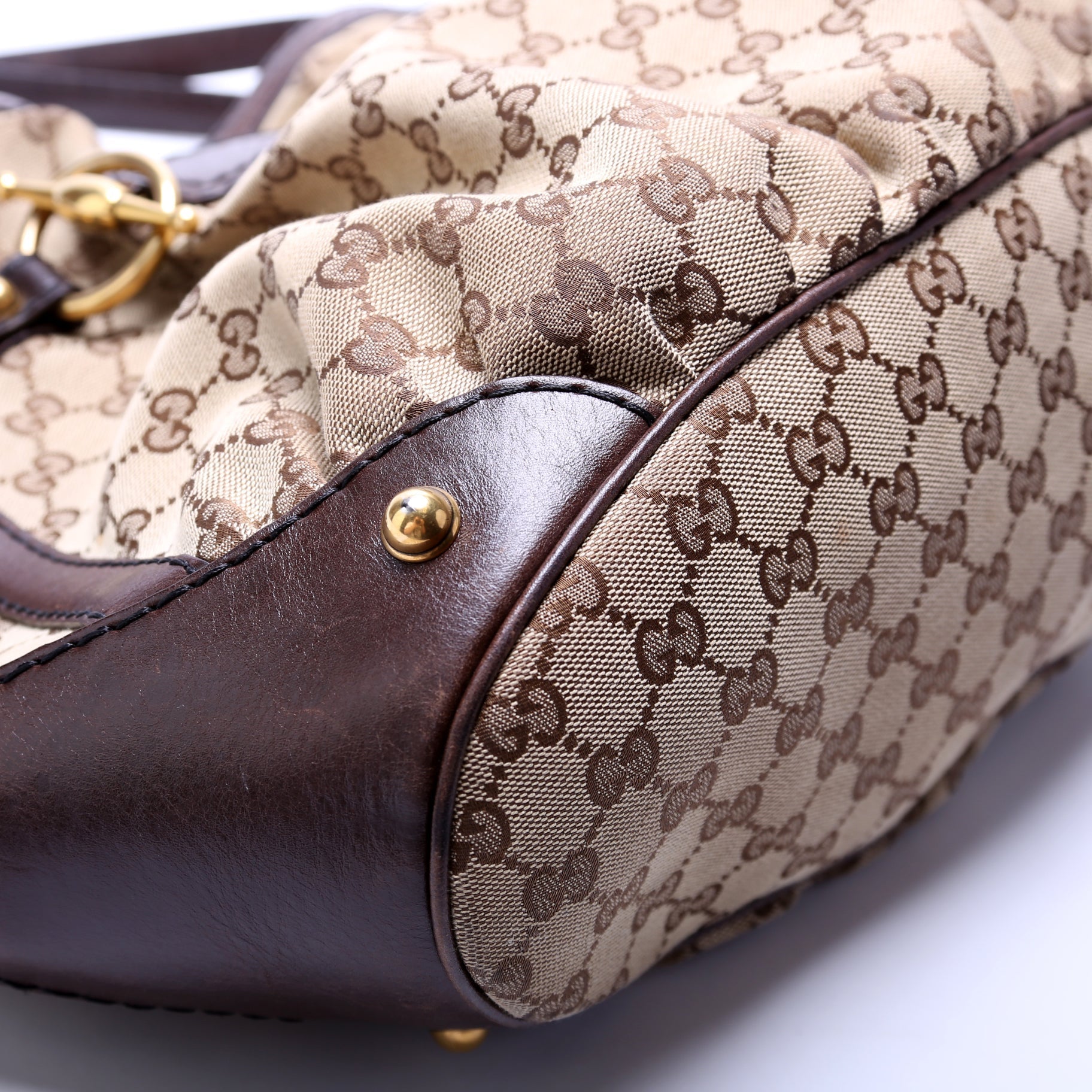 This Gucci GG Canvas Jockey Medium Toteis eye catching bag. The exterior is in the classic Gucci GG canvas.
