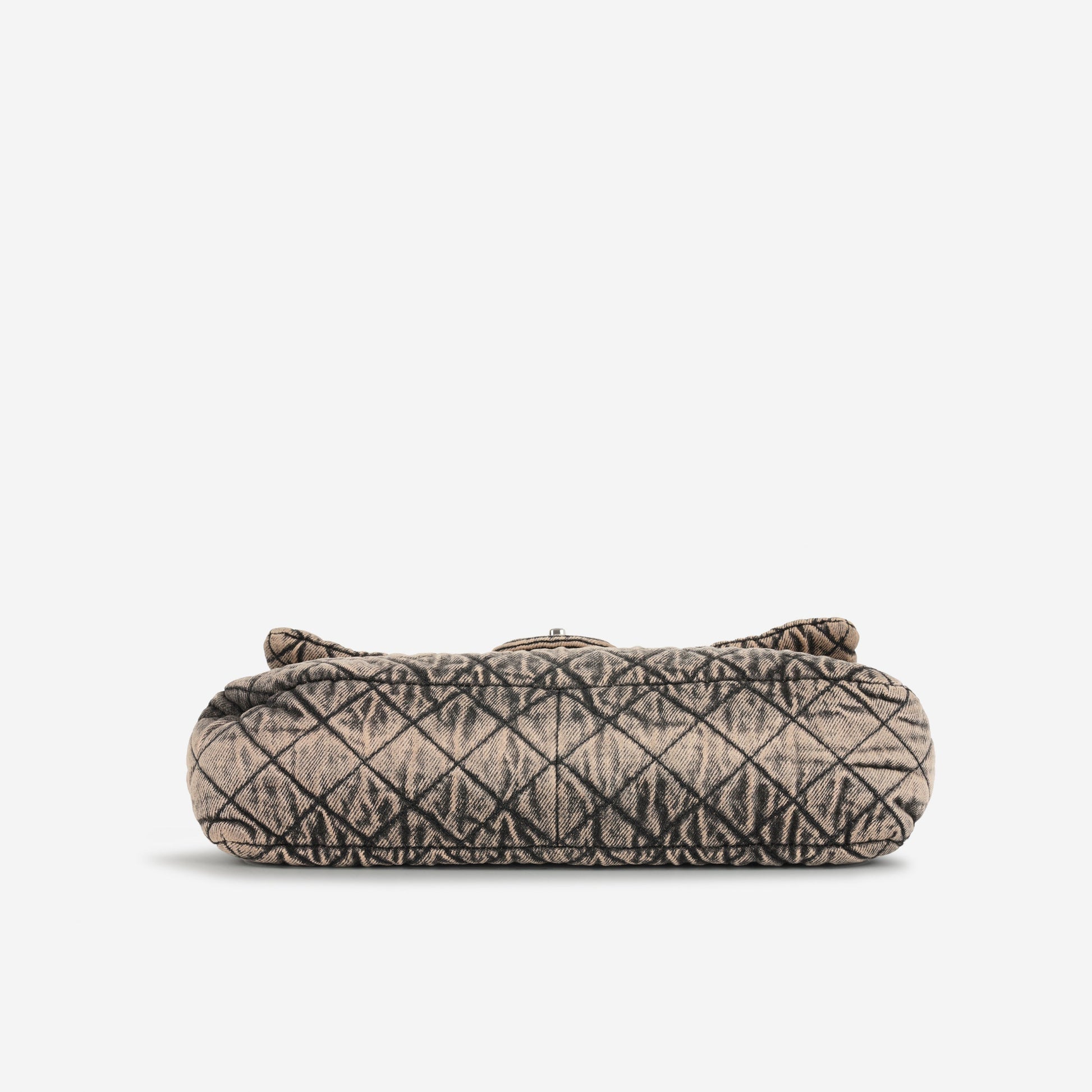 Inspired by denim textures and vintage finishes, the bag showcases Chanel’s iconic quilting pattern on soft, worn-in denim that balances boldness and femininity. The single flap silhouette offers timeless appeal, complemented by silver-tone hardware and the signature CC turn-lock closure.