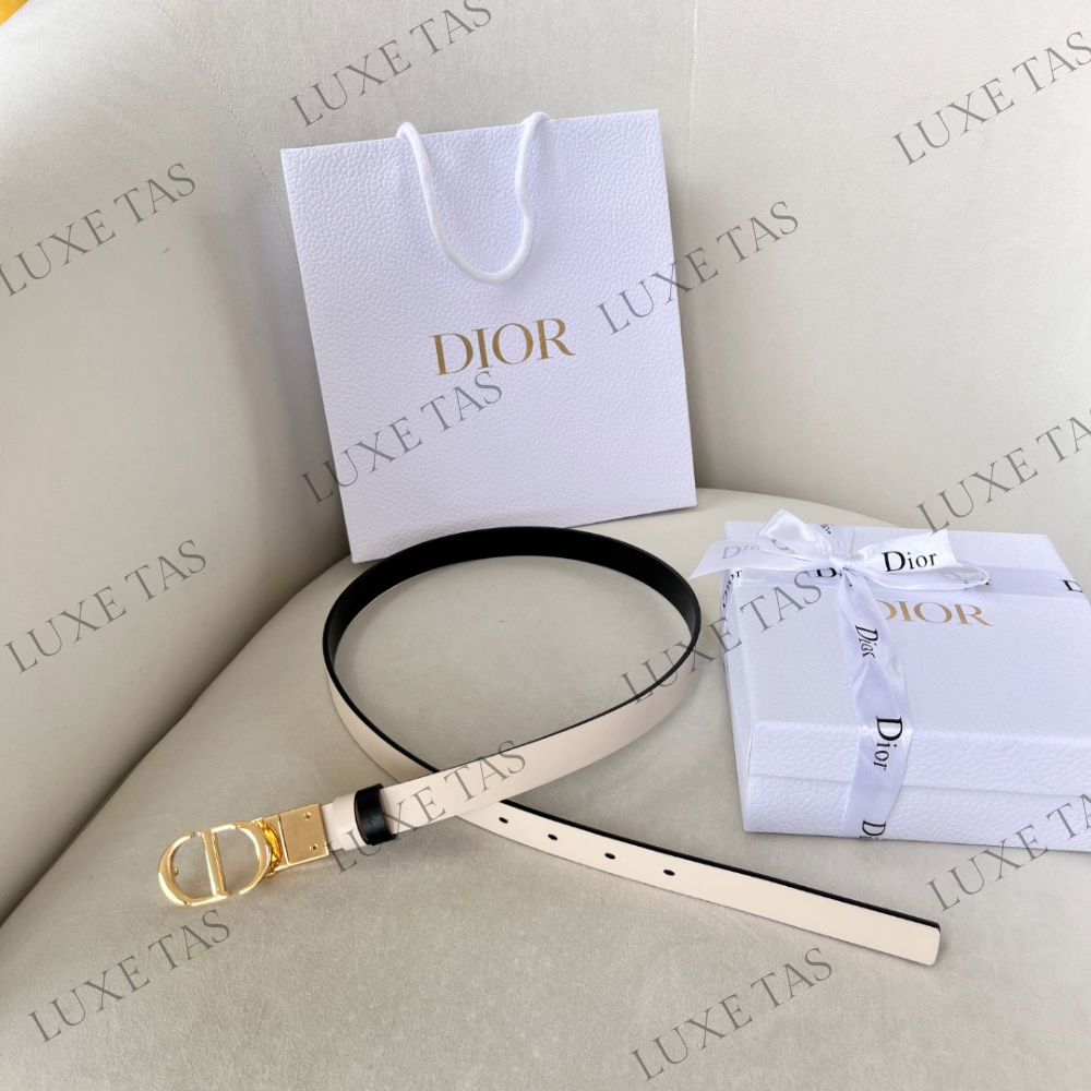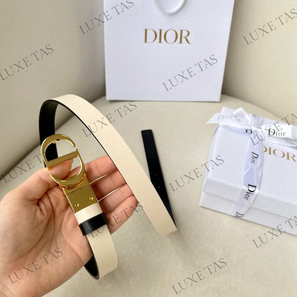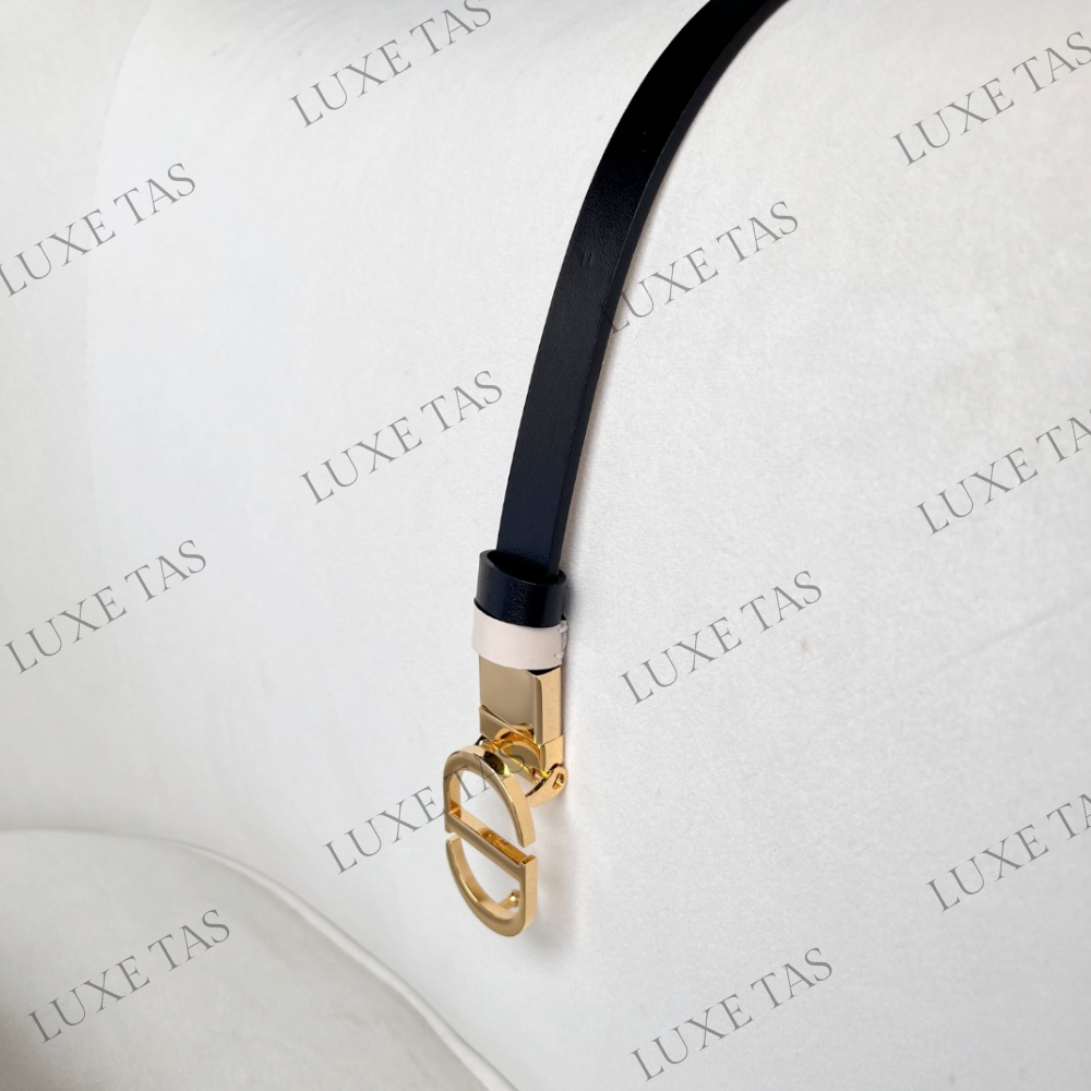 Experience the essence of timeless elegance with the 30 Montaigne reversible belt, inspired by the iconic bag of the same name. Expertly crafted in black smooth calfskin and latte smooth calfskin, this belt offers versatility with its swivel feature. Adorned with the iconic shiny gold-finish metal 'C*D' buckle, it exudes sophistication. The two removable loops provide the option for tonal or contrasting styling. This essential accessory effortlessly accentuates the waist and perfectly complements jeans, skirts, and dresses. Elevate your ensemble with this refined and versatile piece.
