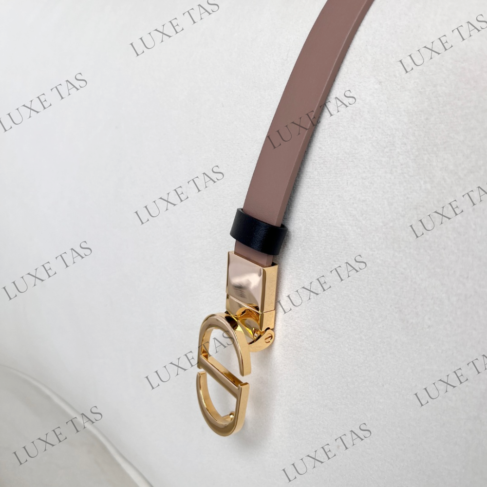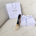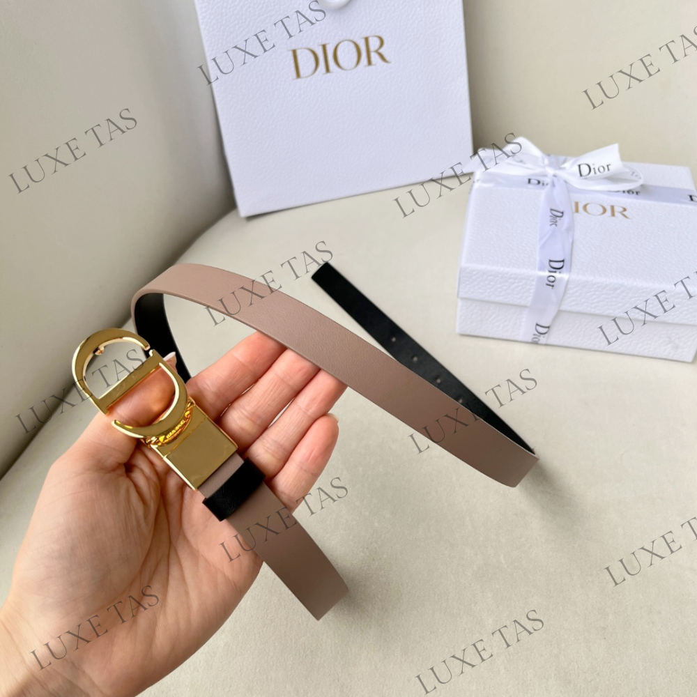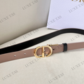 Experience the essence of timeless elegance with the 30 Montaigne reversible belt, inspired by the iconic bag of the same name. Expertly crafted in black smooth calfskin and hazelnut smooth calfskin, this belt offers versatility with its swivel feature. Adorned with the iconic shiny gold-finish metal 'C*D' buckle, it exudes sophistication. The two removable loops provide the option for tonal or contrasting styling. This essential accessory effortlessly accentuates the waist and perfectly complements jeans, skirts, and dresses. Elevate your ensemble with this refined and versatile piece.
