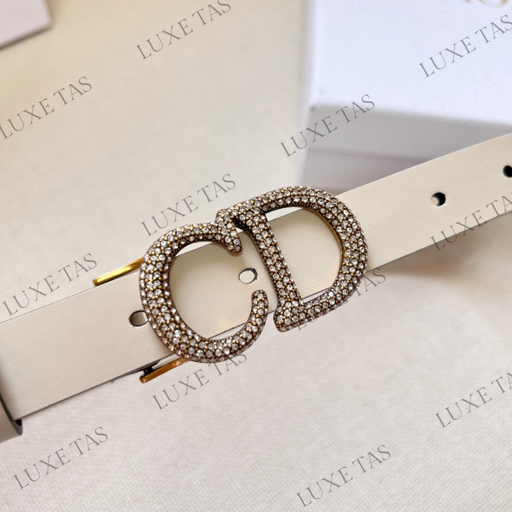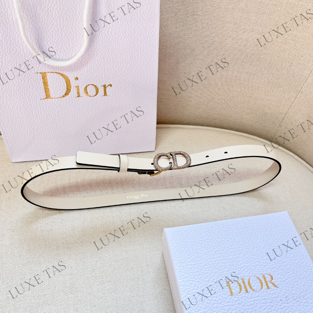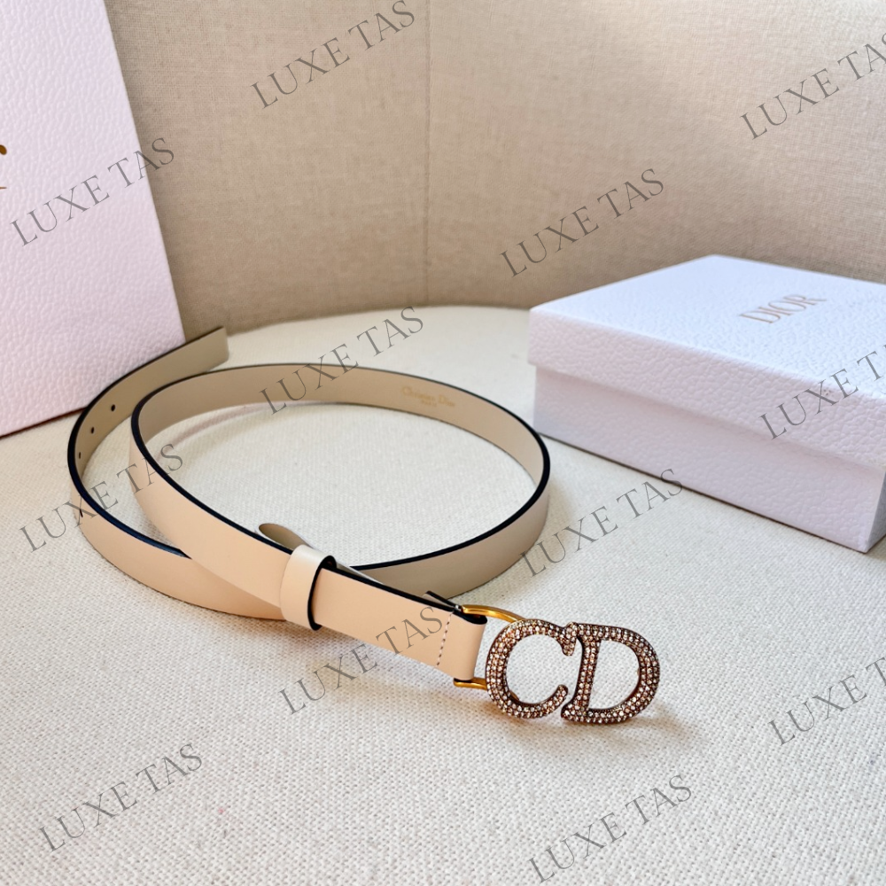 Discover the timeless allure of the Saddle belt, a true icon and staple in every wardrobe. This refined version showcases a luxurious latte hue, crafted from ultrasmooth calfskin with a velvety touch and exquisite sheen. The antique gold-finish metal 'C*D' buckle is adorned with meticulously hand-applied white crystals, adding a touch of opulence. With its sleek and slender silhouette, this belt beautifully accentuates skirts, dresses, and pants, effortlessly enhancing your ensemble.