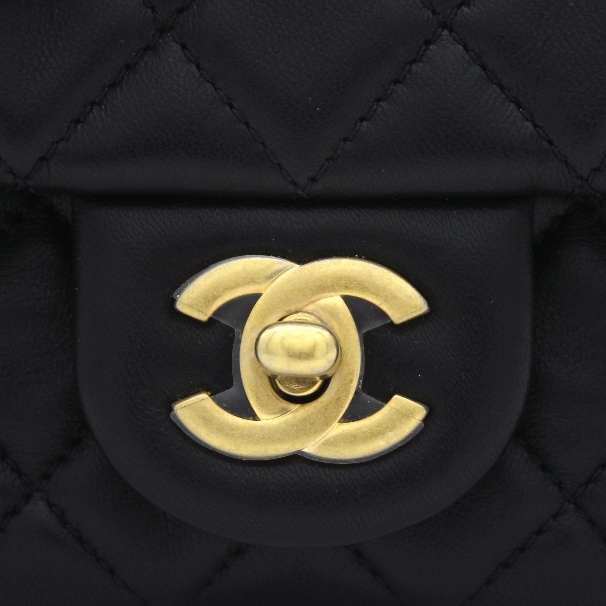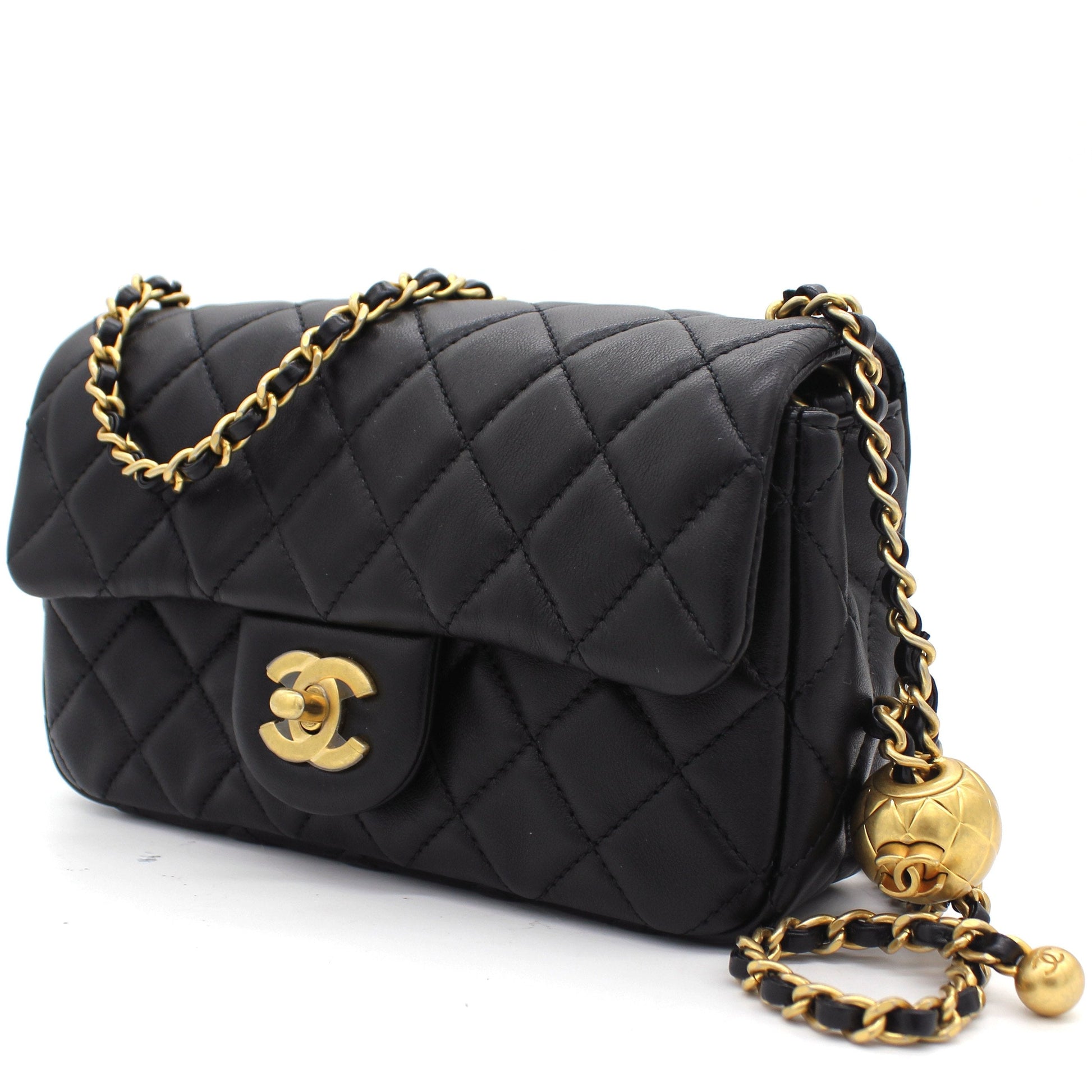 | This new mini rectangular looks like a Classic Bag with woven chain leather strap. The round-shaped gold charm added to the chain strap cannot be missed. It’s something small, but so effective, which makes the chain strap is adjustable. This chic crossbody flap bag is crafted of soft diamond-quilted lambskin leather in black. The bag features an aged gold chain-link shoulder strap threaded with leather that has a round gold cinch adjustment. The crossover flap opens with a Chanel CC turn-lock to a metallic gold leather interior with a zipper and a patch pocket for daytime and evening essentials | Material: Lambskin Accessories: FULL SET: Dust Bag; Box; Card; Receipt Serial Number: 30880189 Bought Year: 2020 | ![]() |