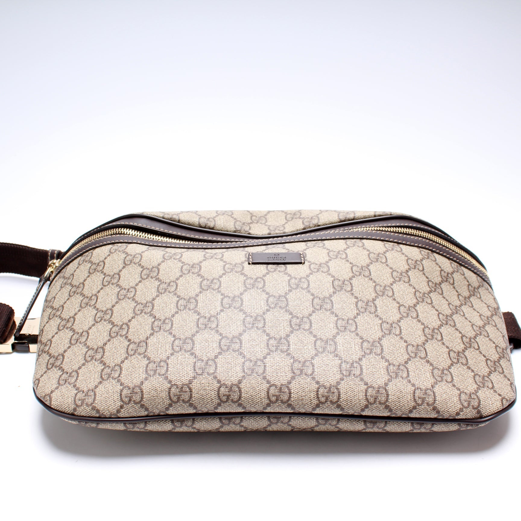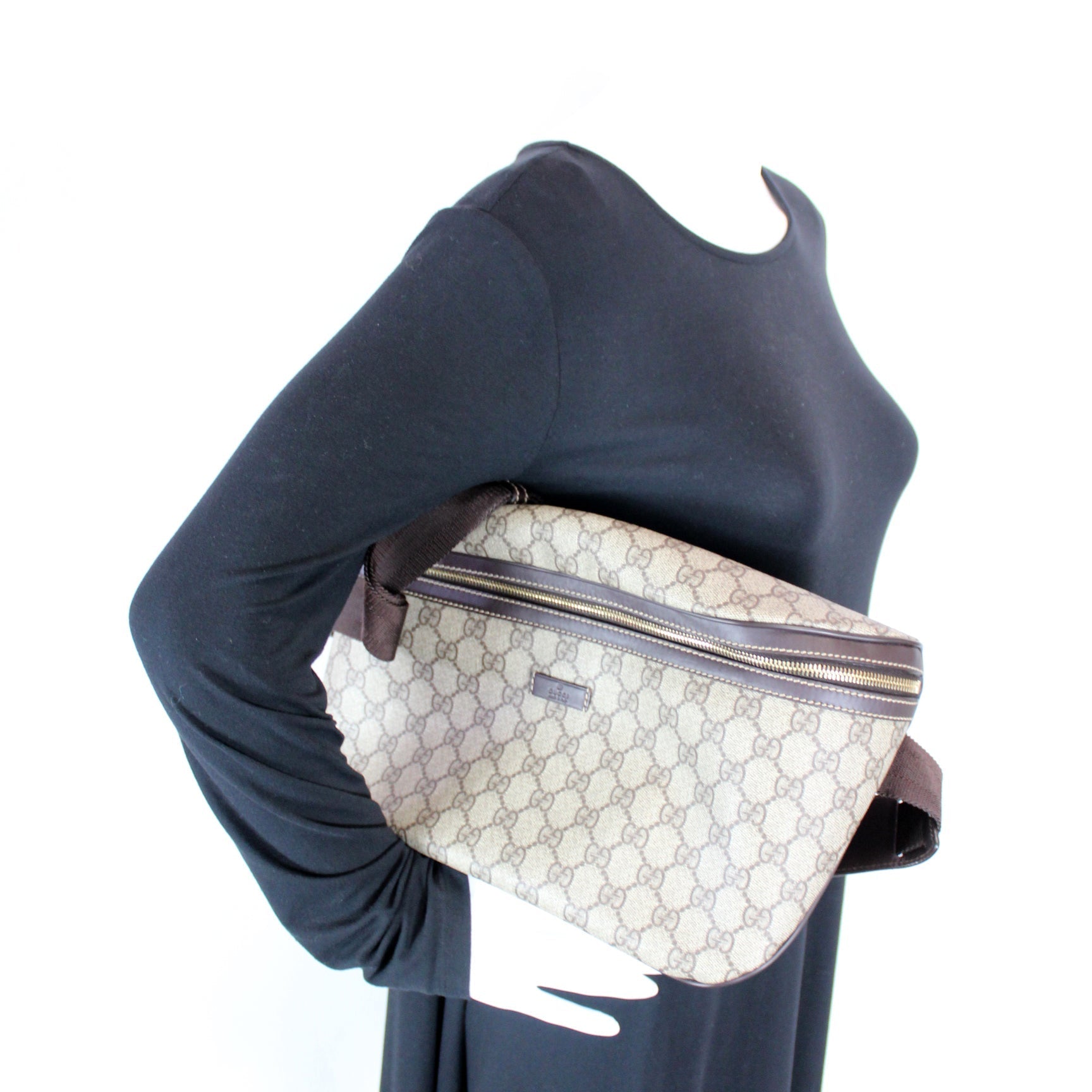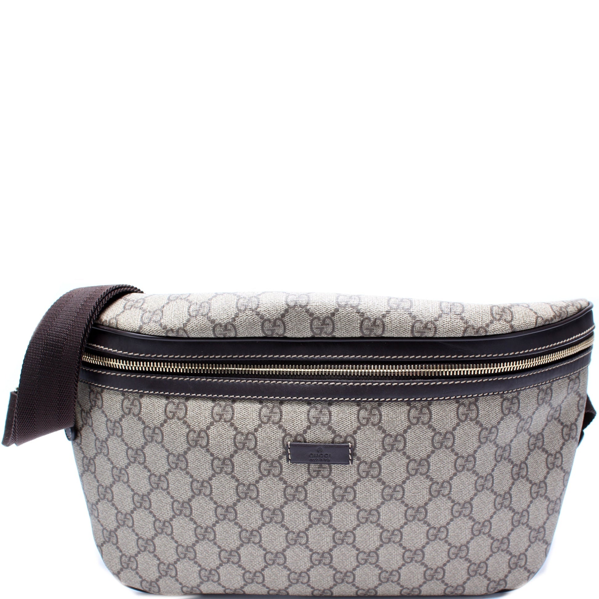 This Gucci GG Supreme Belt Bag is guaranteed 100% authentic. The exterior is in the classic GG coated canvas.