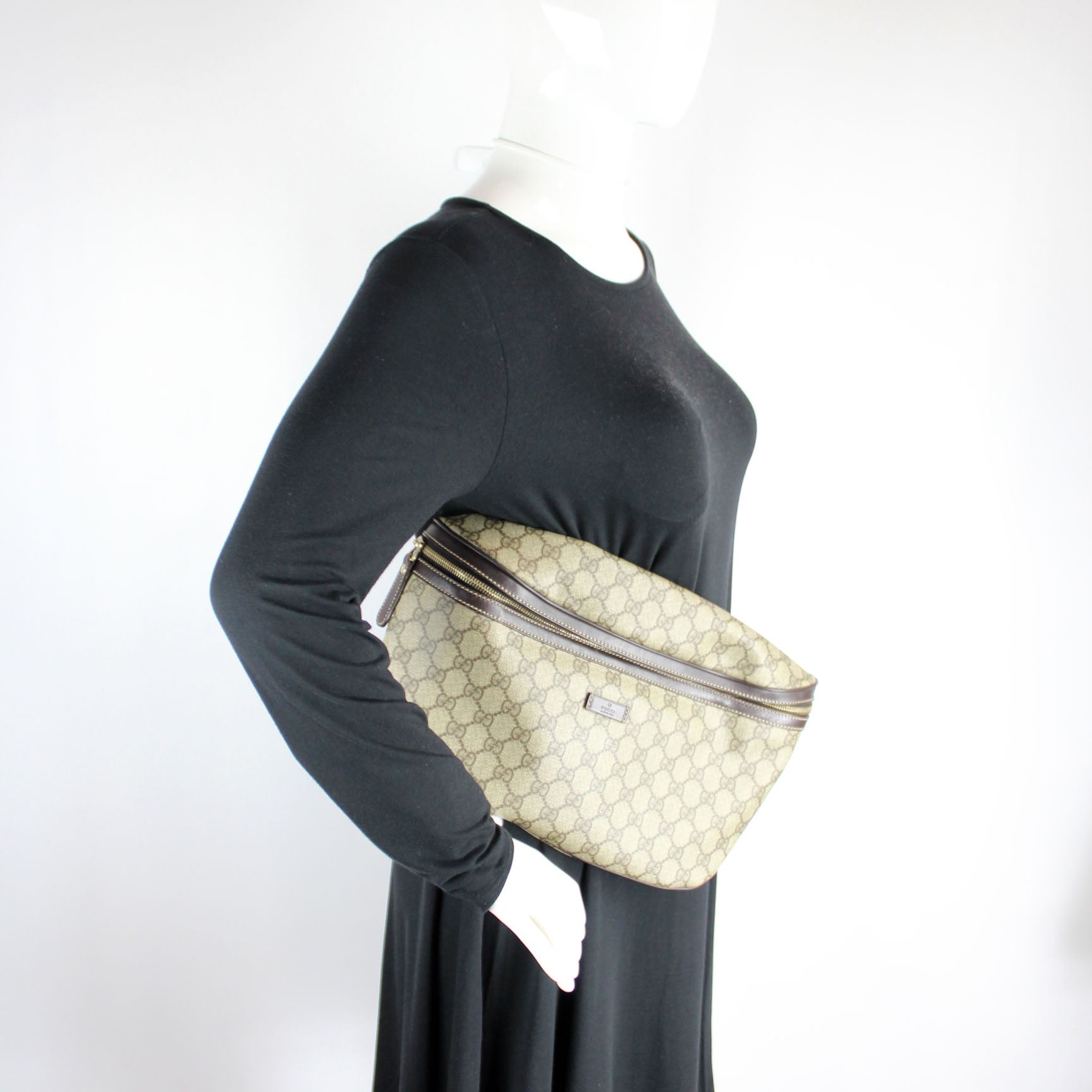 This Gucci GG Supreme Belt Bag is guaranteed 100% authentic. The exterior is in the classic GG coated canvas.