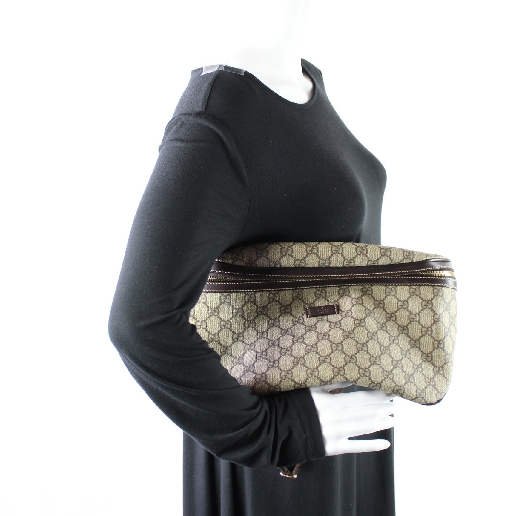 This Gucci GG Supreme Belt Bag is guaranteed 100% authentic. The exterior is in the classic GG coated canvas.