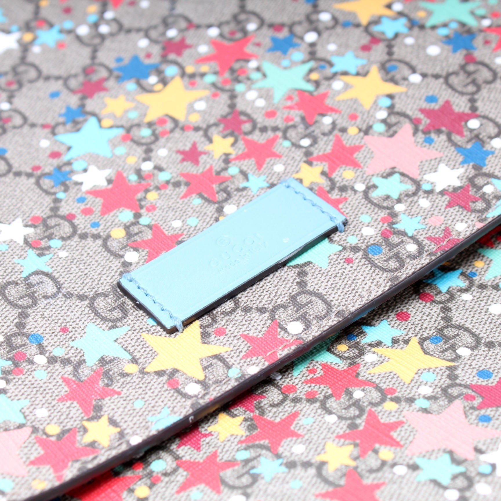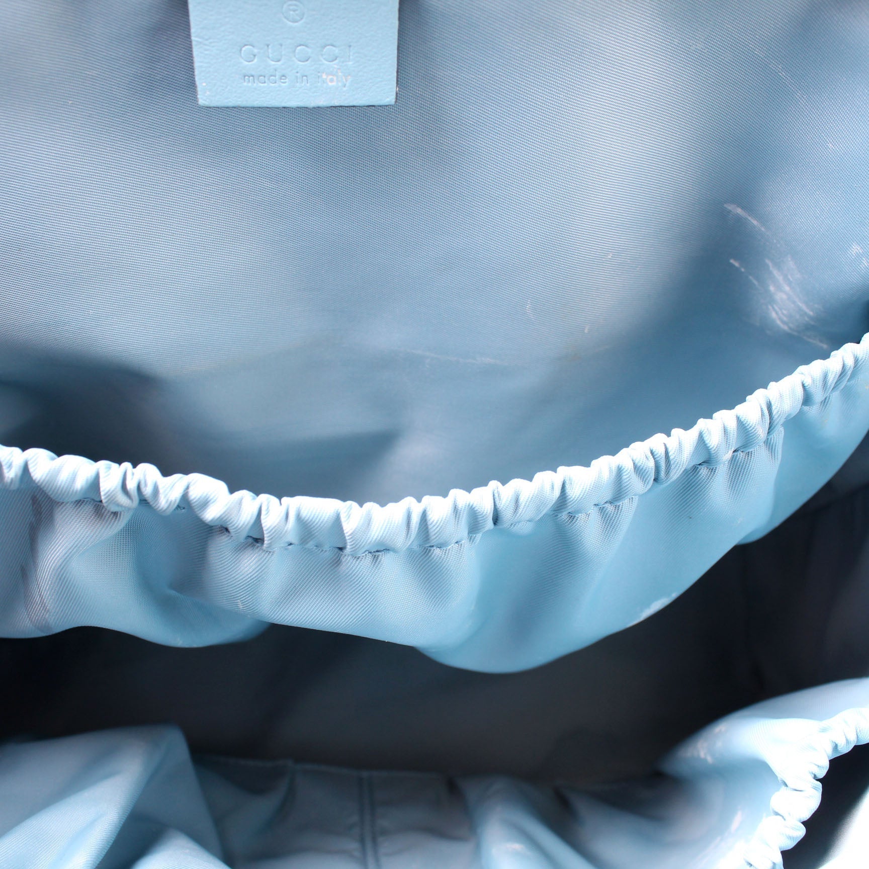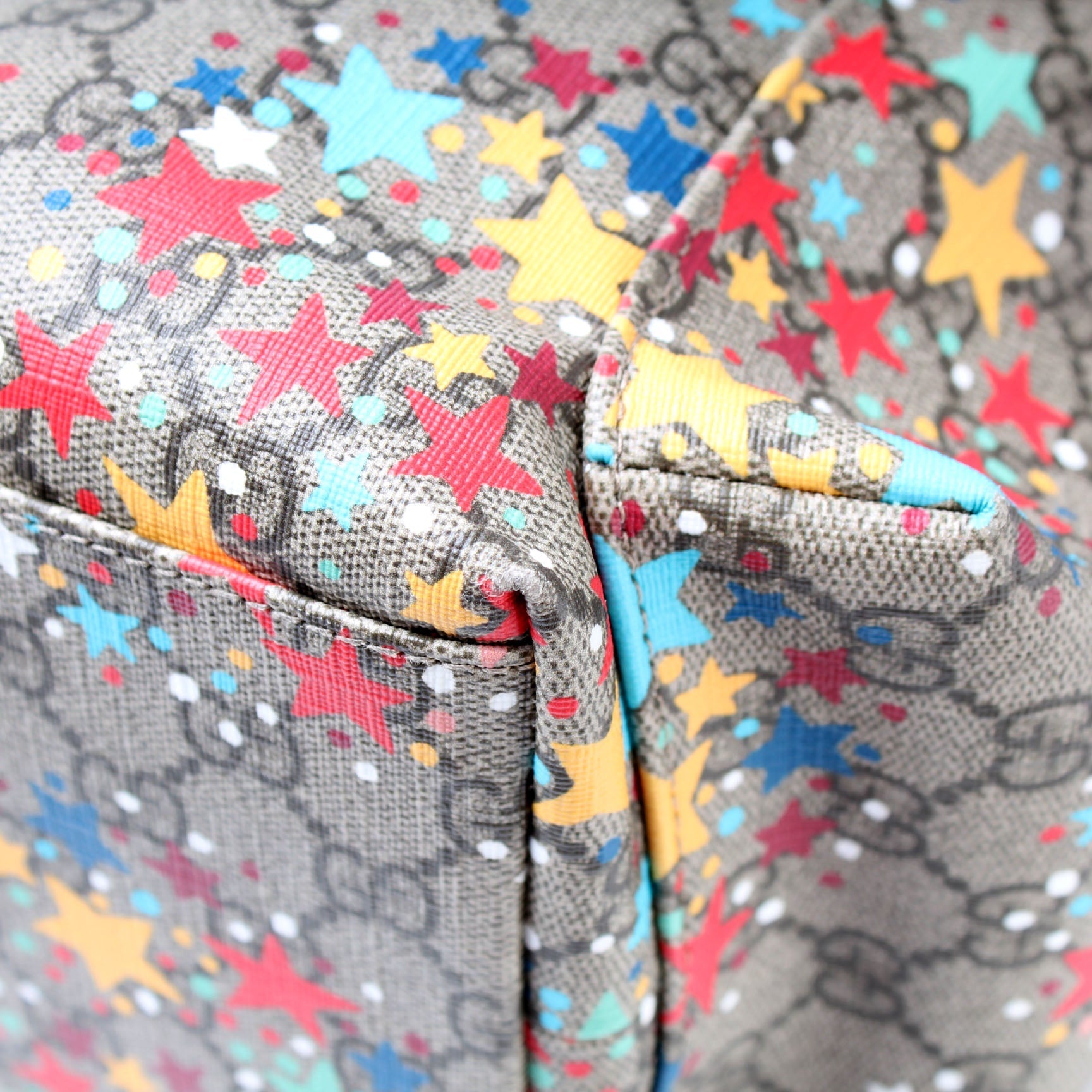 This Gucci Diaper Bagis eye catching bag. The exterior is in the classic Gucci GG coated canvas.