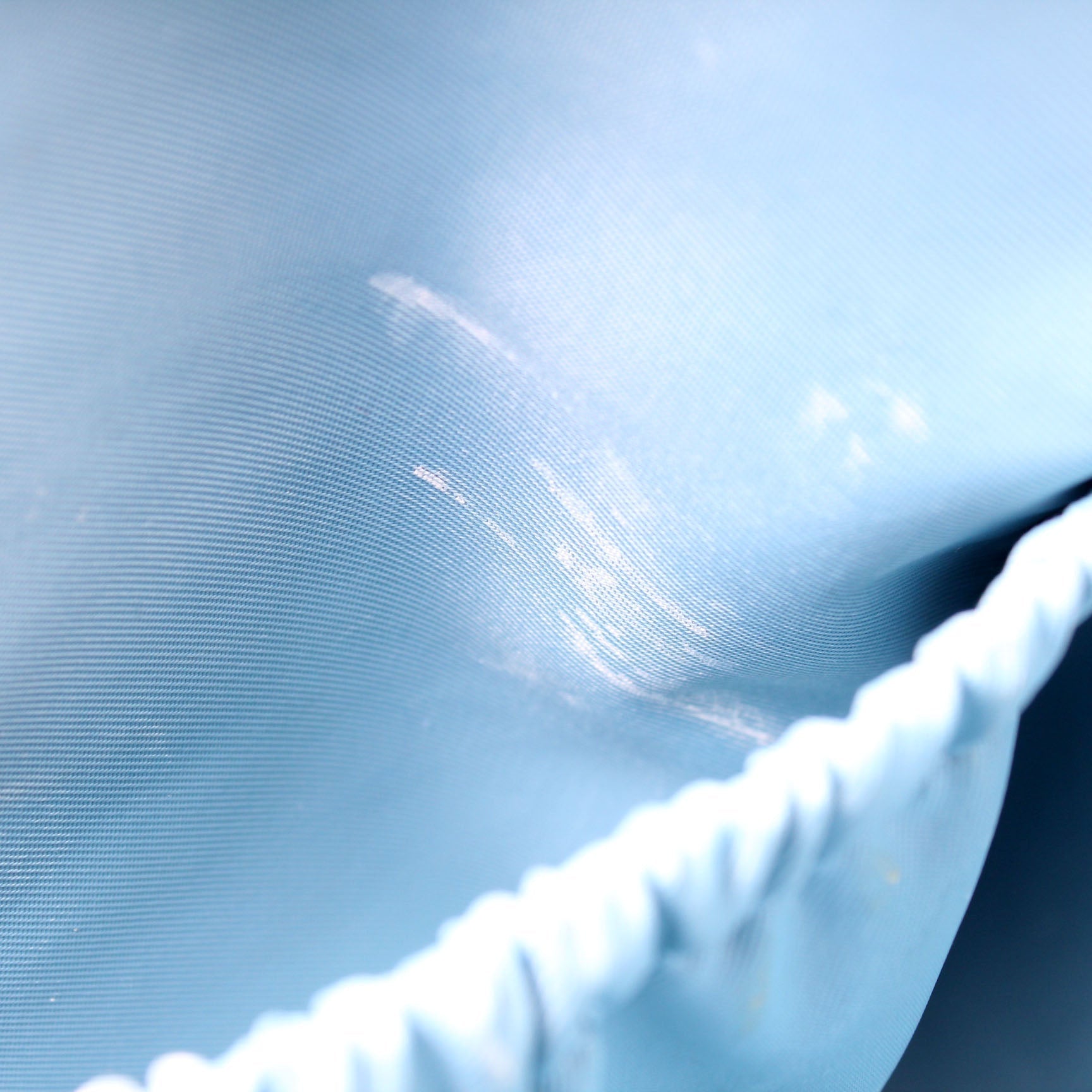 Exterior: The exterior coated canvas is free of any rips or cracks. The corners and pipping show minor wear. The exterior features three velcro pockets. There is staining throughout the interior of the pockets.