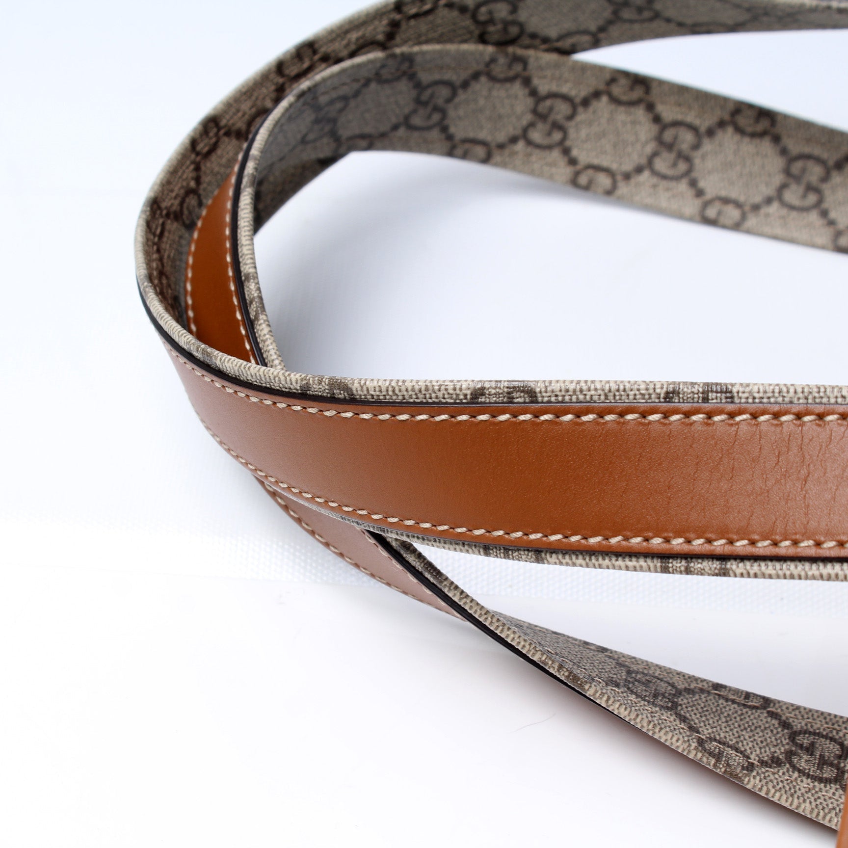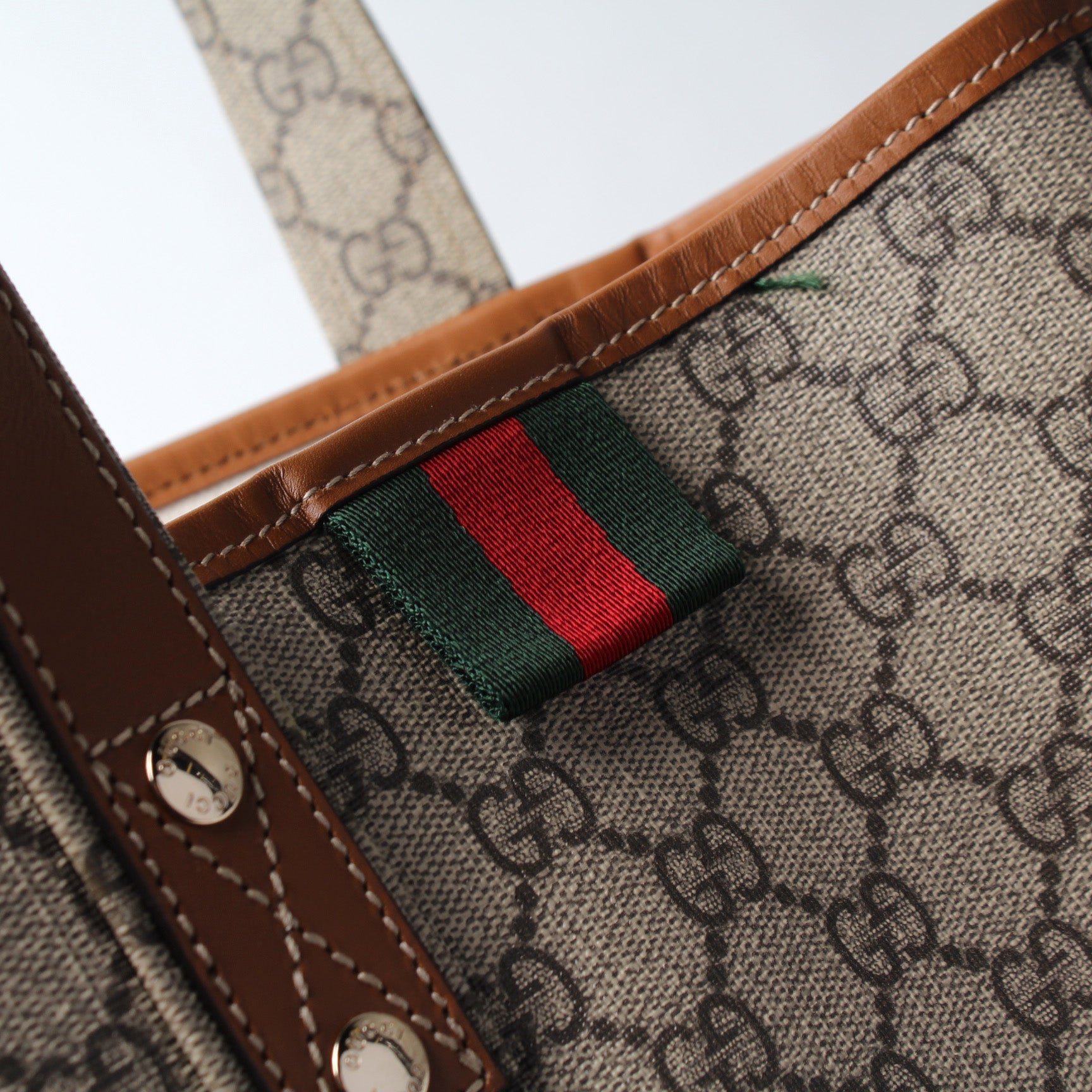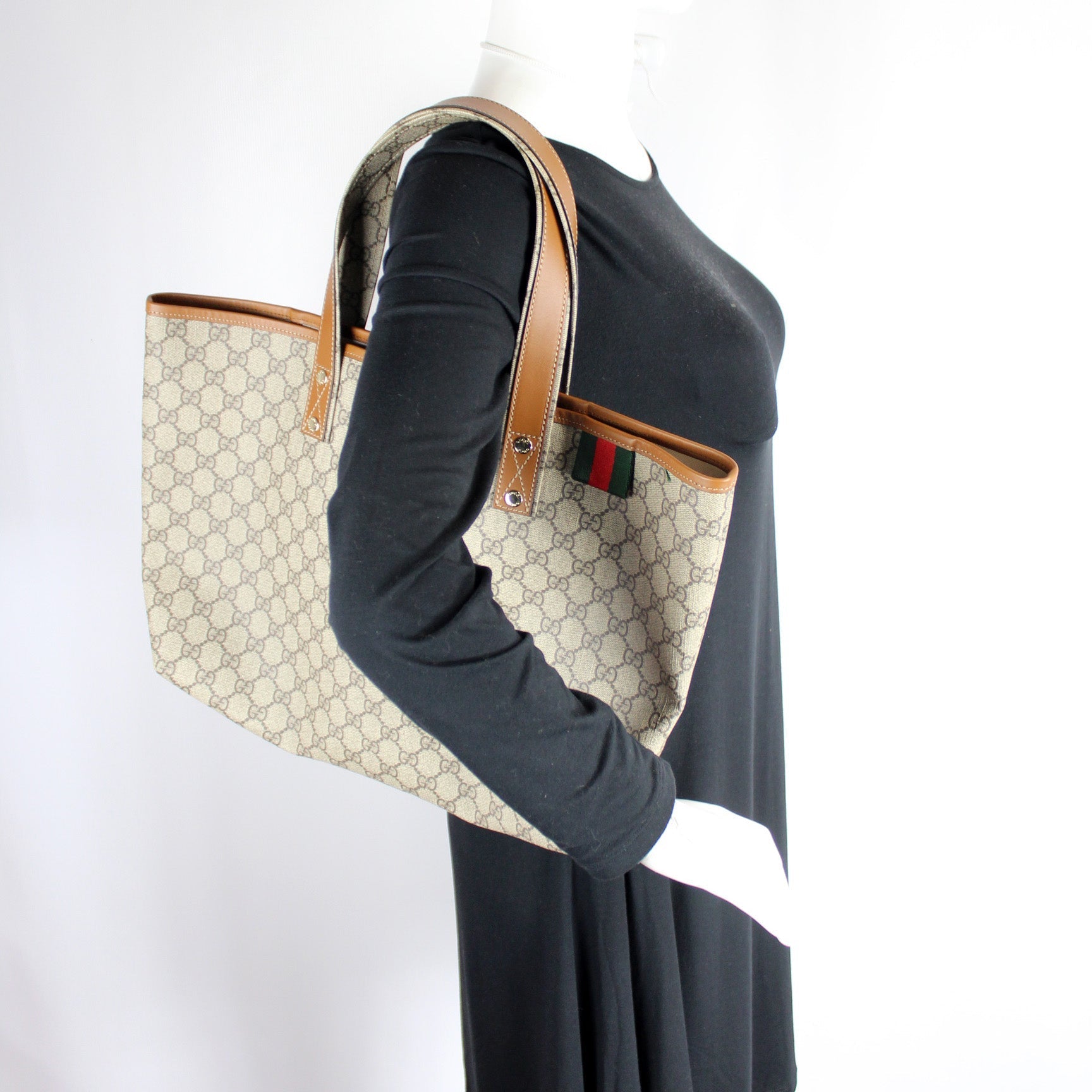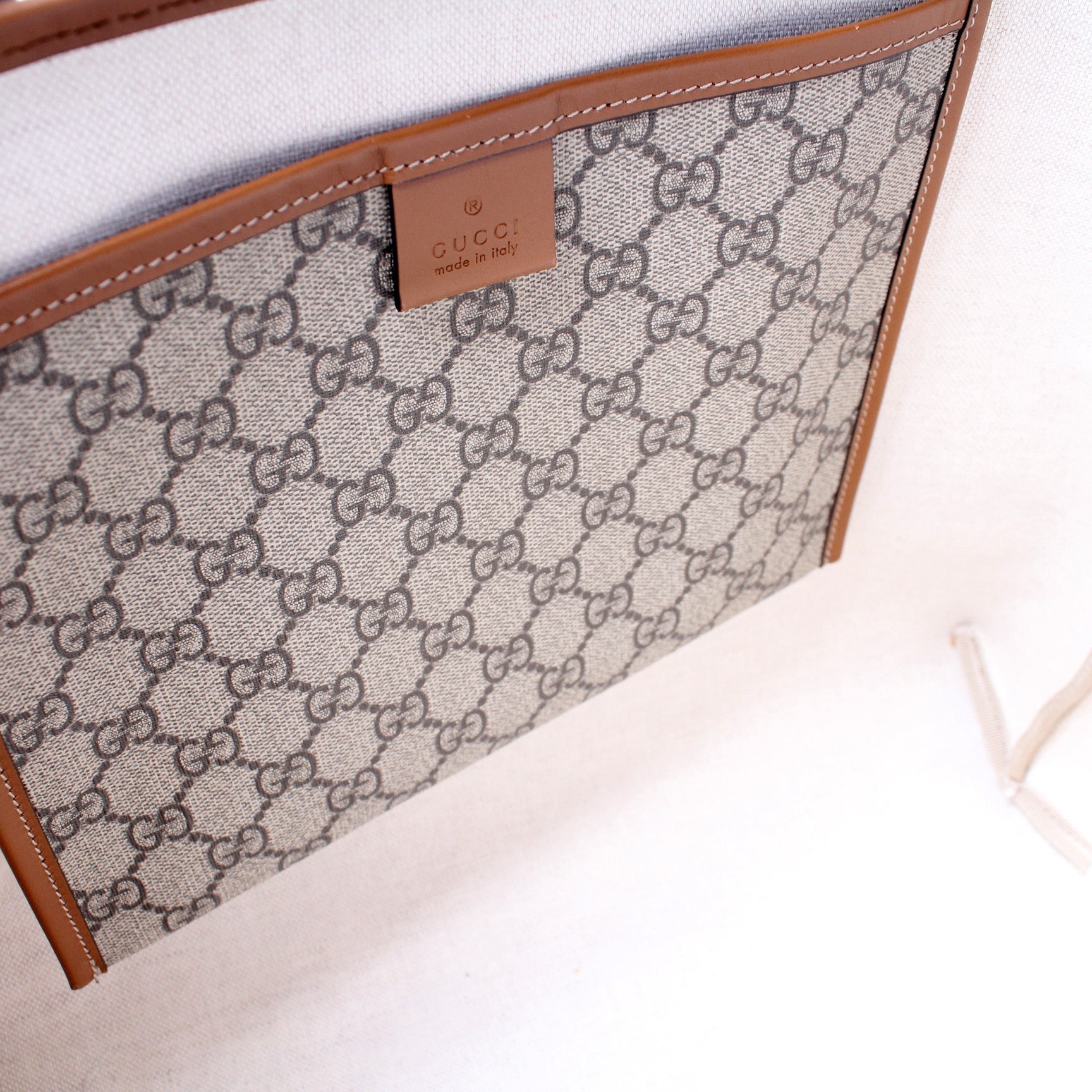 This Gucci Sherry Line Toteis eye catching bag. The exterior is in the classic Gucci GG Supreme coated canvas.