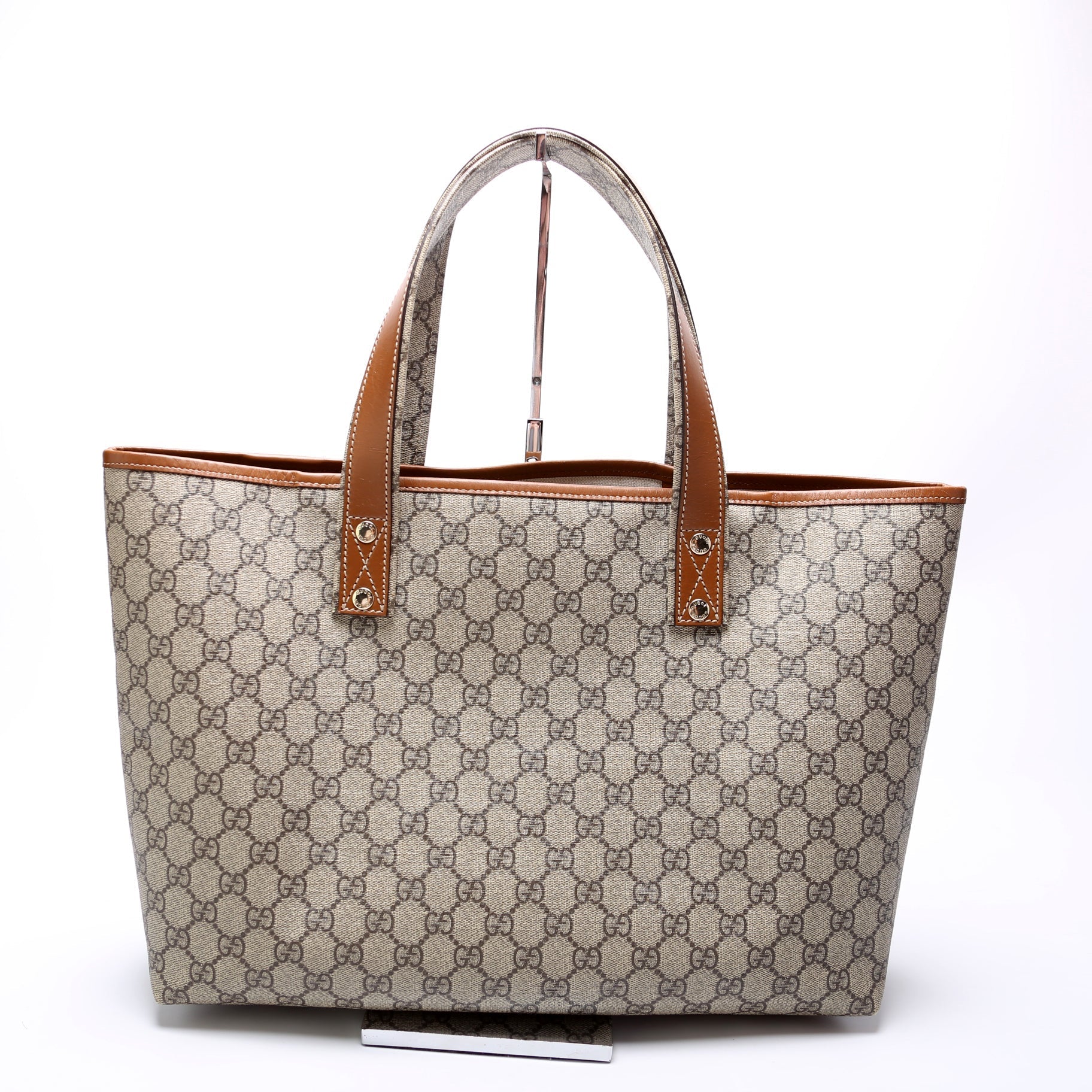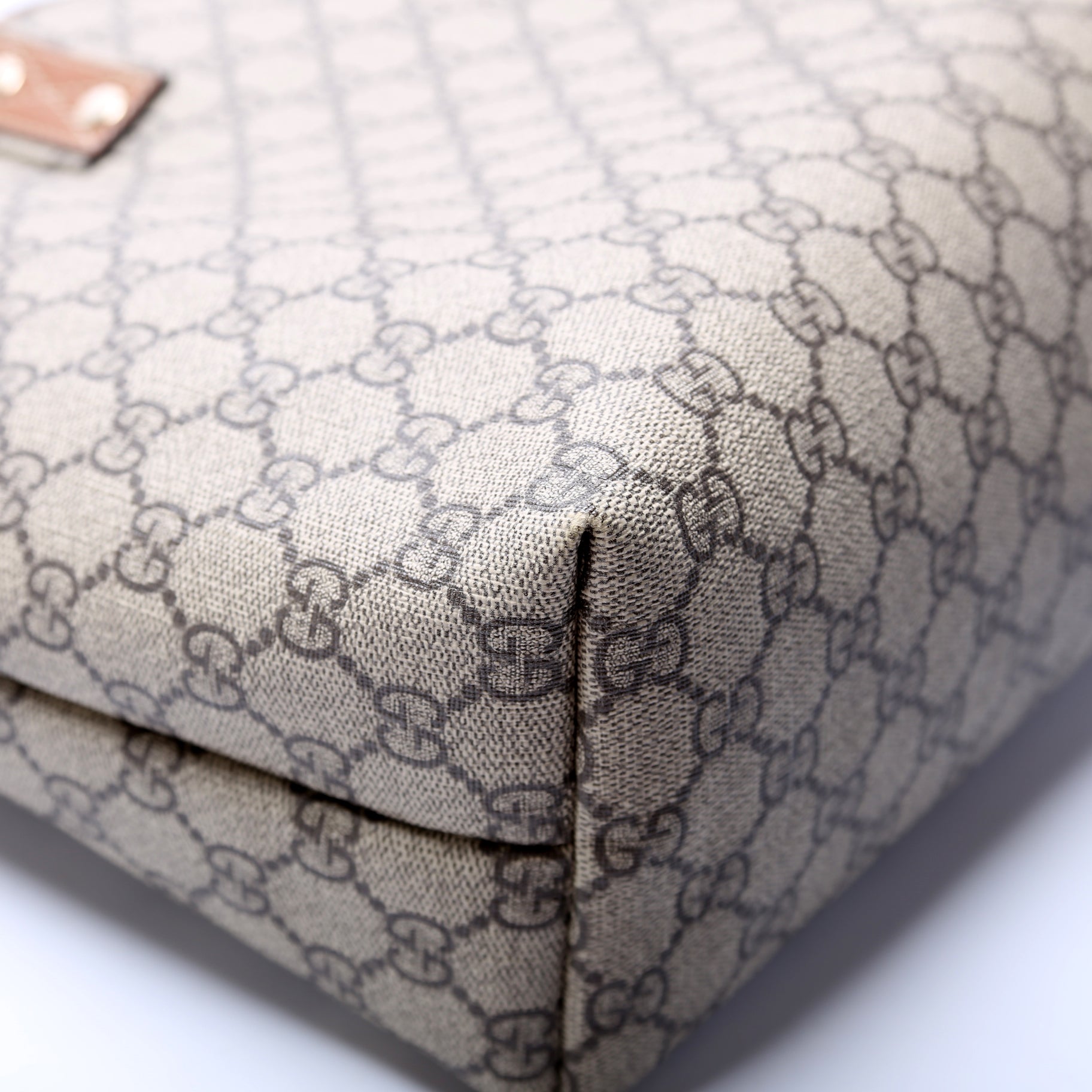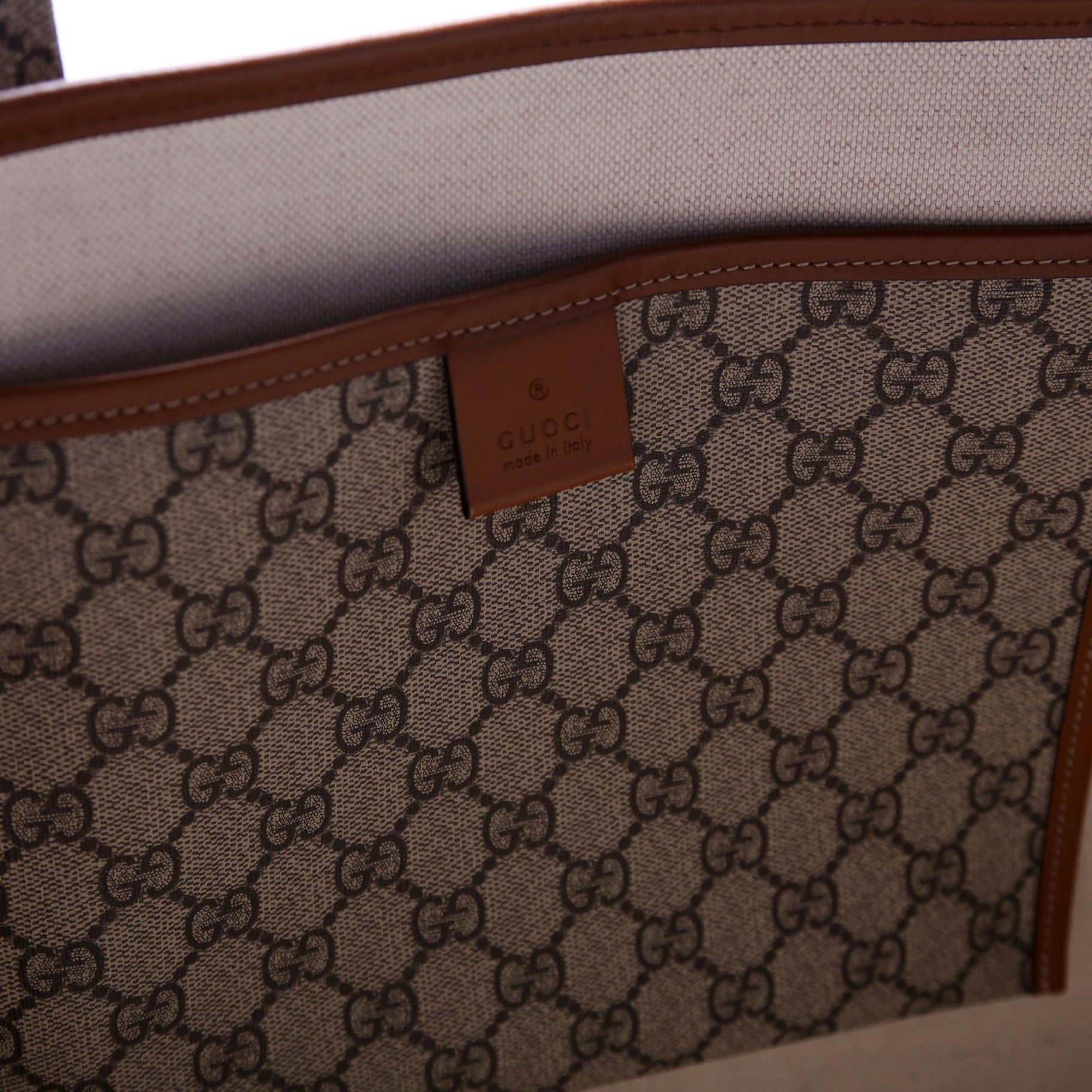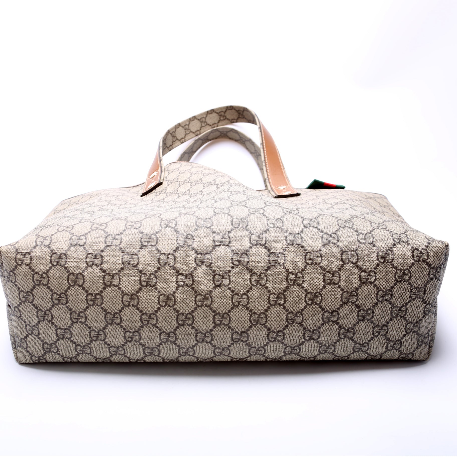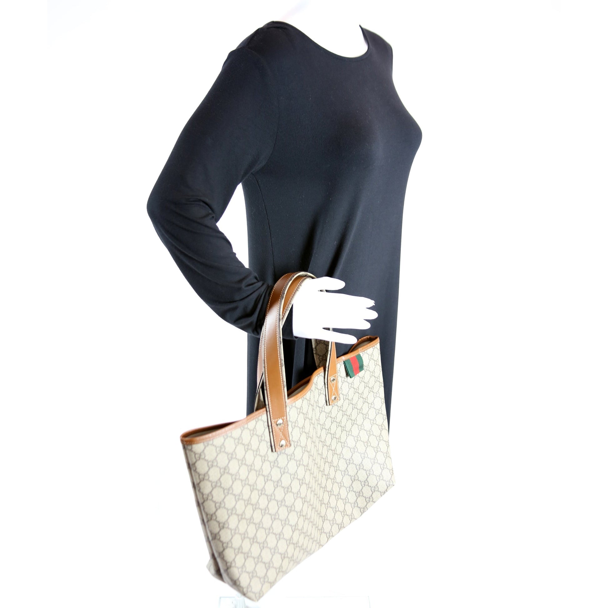 This Gucci Sherry Line Toteis eye catching bag. The exterior is in the classic Gucci GG Supreme coated canvas.