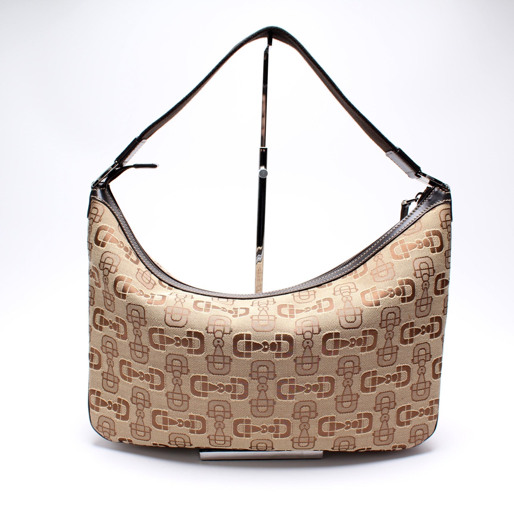 This Gucci Horsebit Canvas Hobois eye catching bag. The exterior is in the classic Gucci Horsebit canvas.