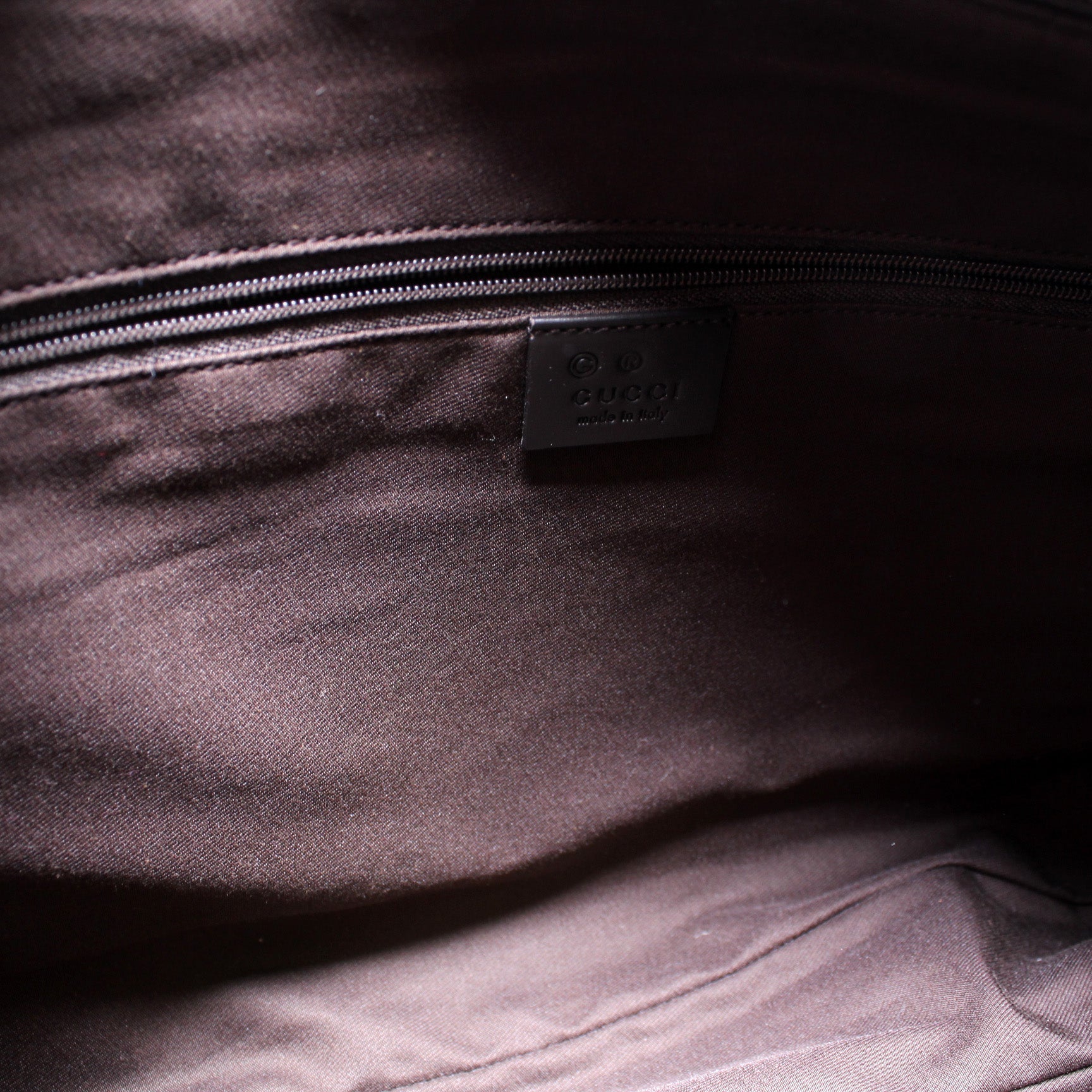 Interior: The interior is clean and free of rips or tears. The interior features one zip pocket and one open pocket.