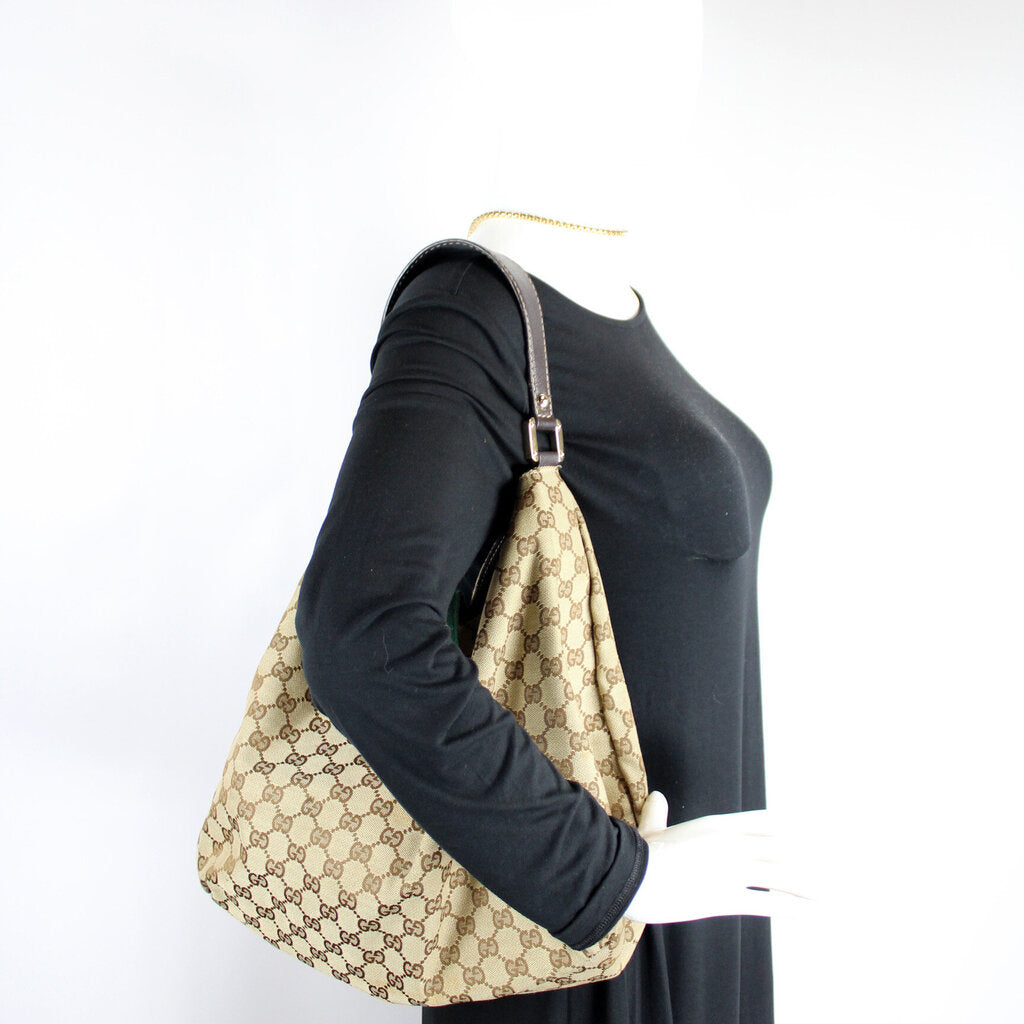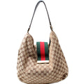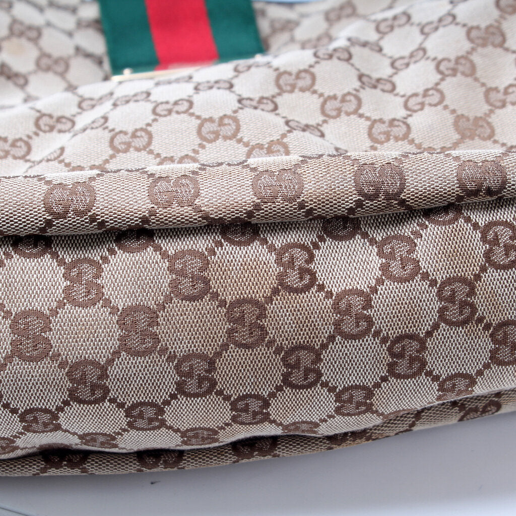 This Gucci GG Canvas Web Hobo is guaranteed 100% authentic. The exterior is in the classic Gucci GG canvas.
