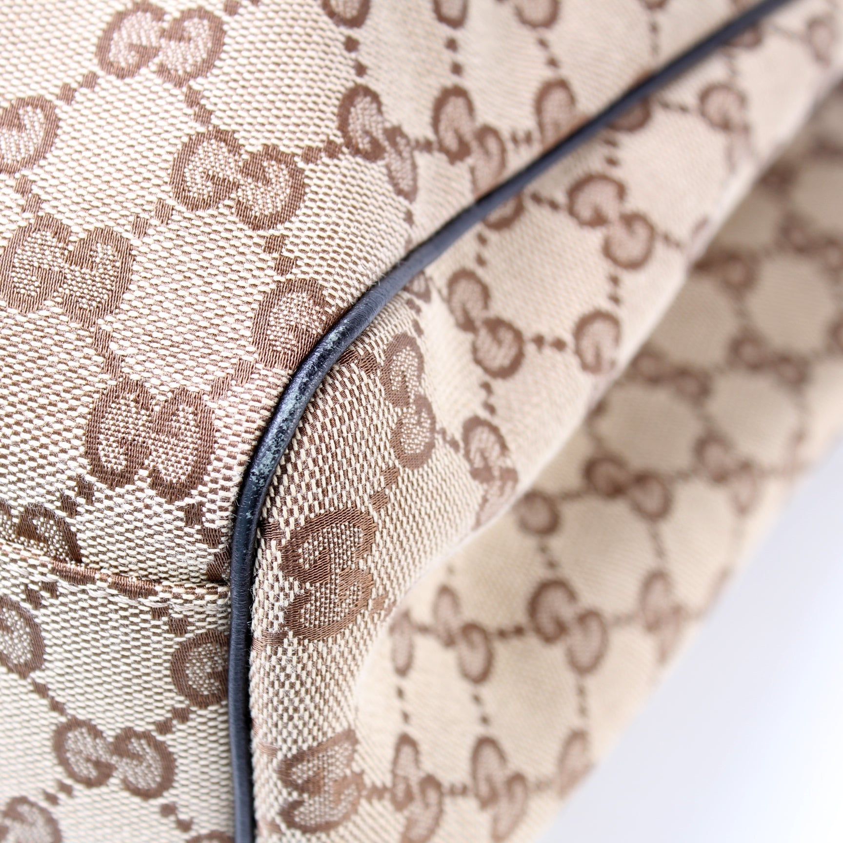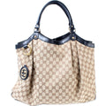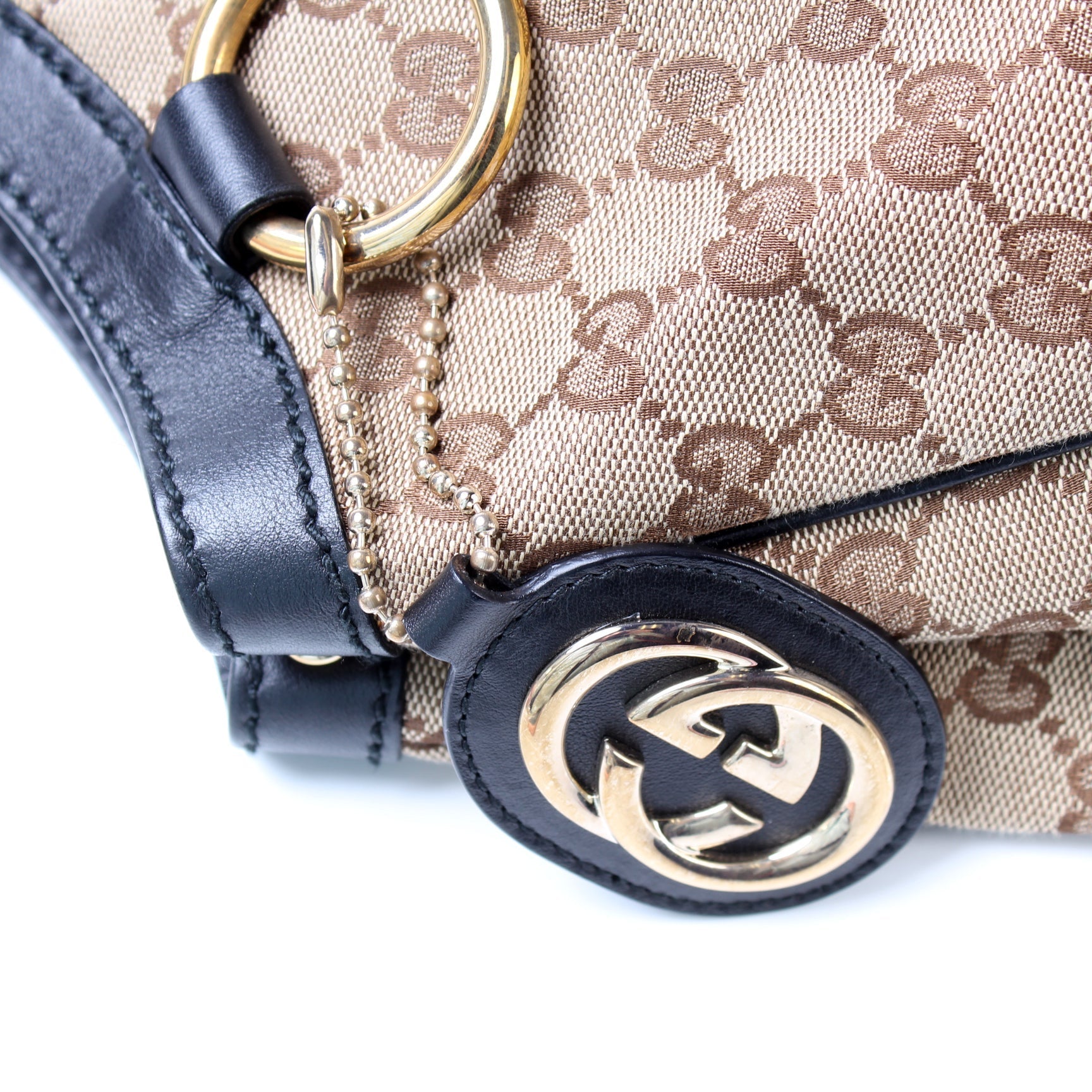 This Gucci Sukey Largeis eye catching bag. The exterior is in the Gucci canvas.