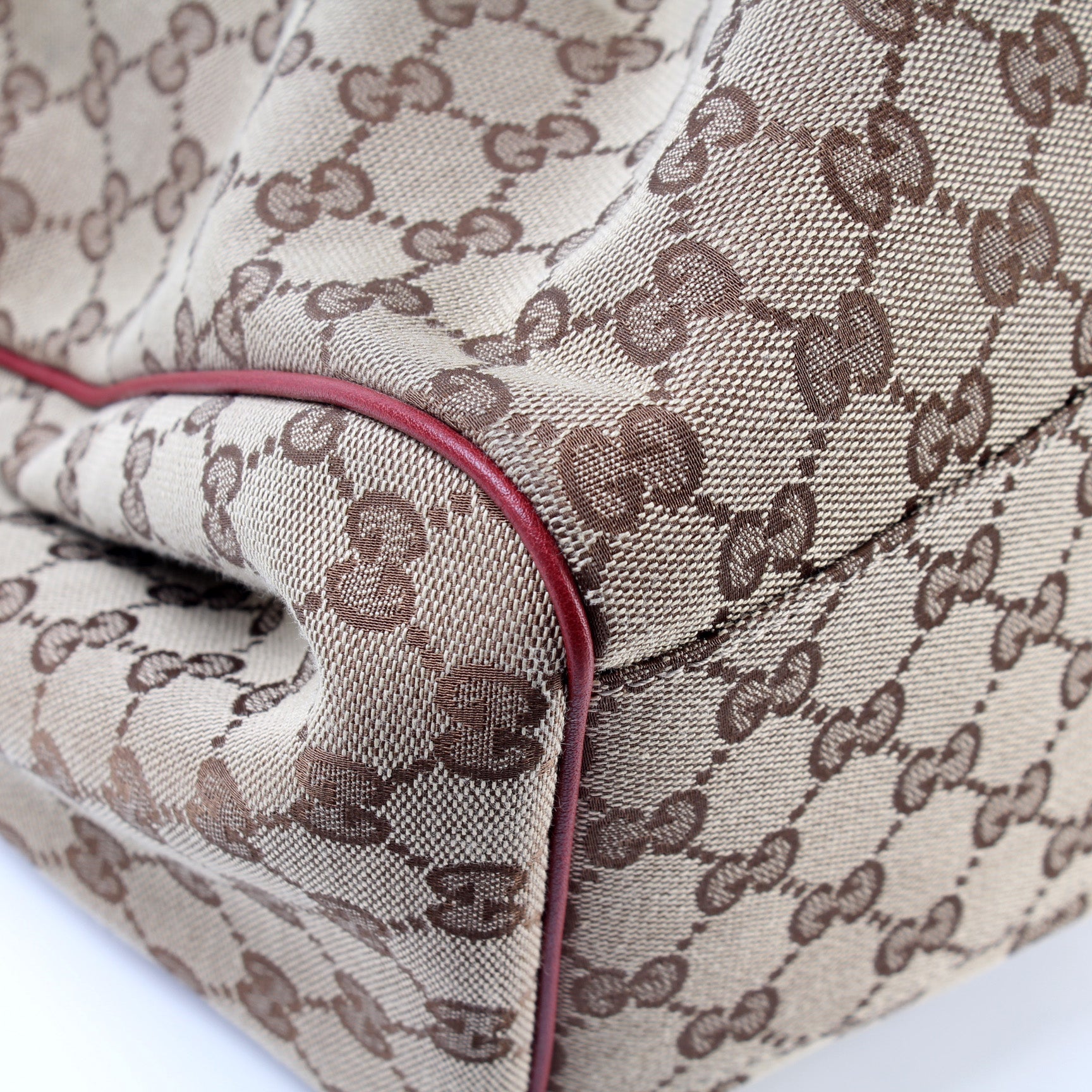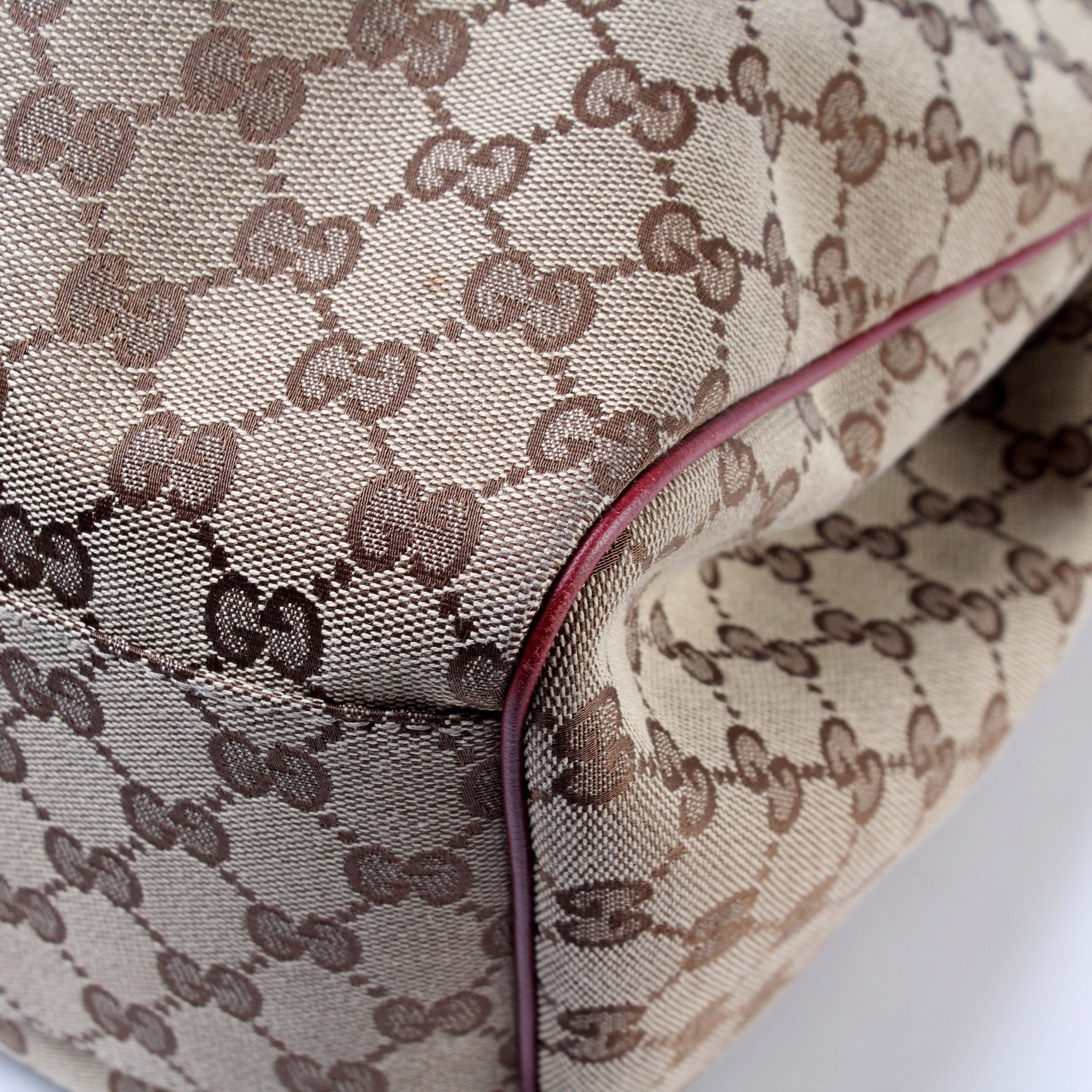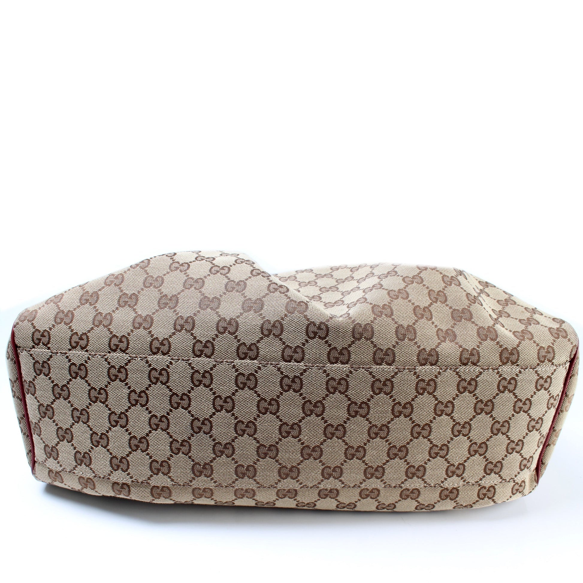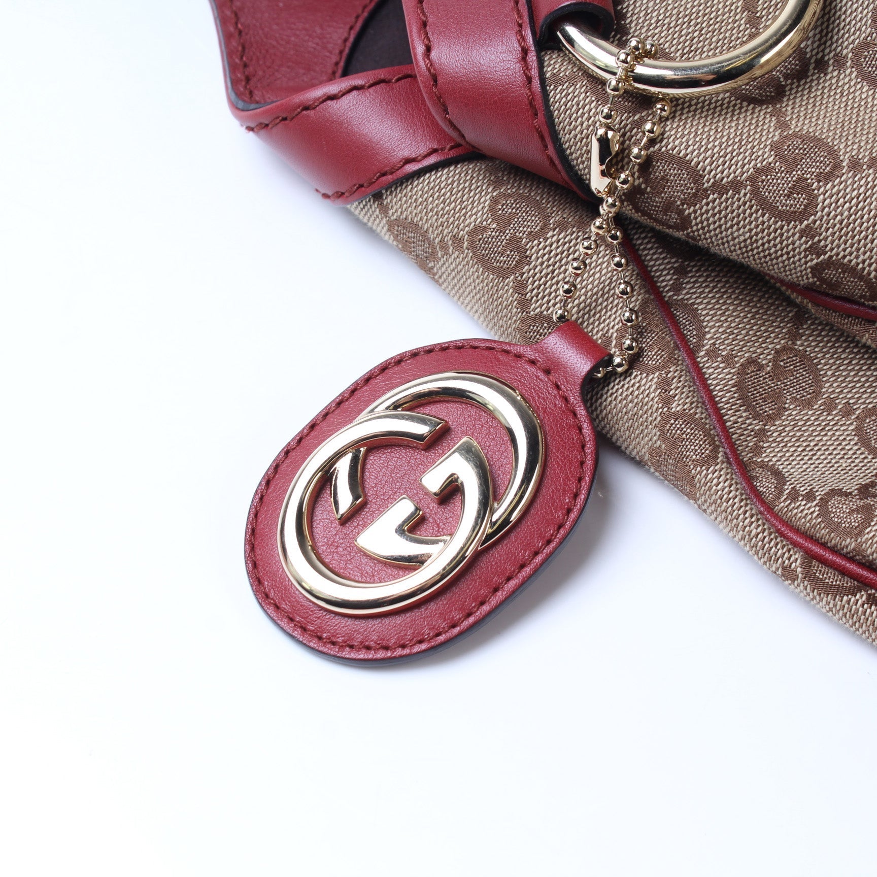 This Gucci Sukey Largeis eye catching bag. The exterior is in the classic Gucci GG canvas.