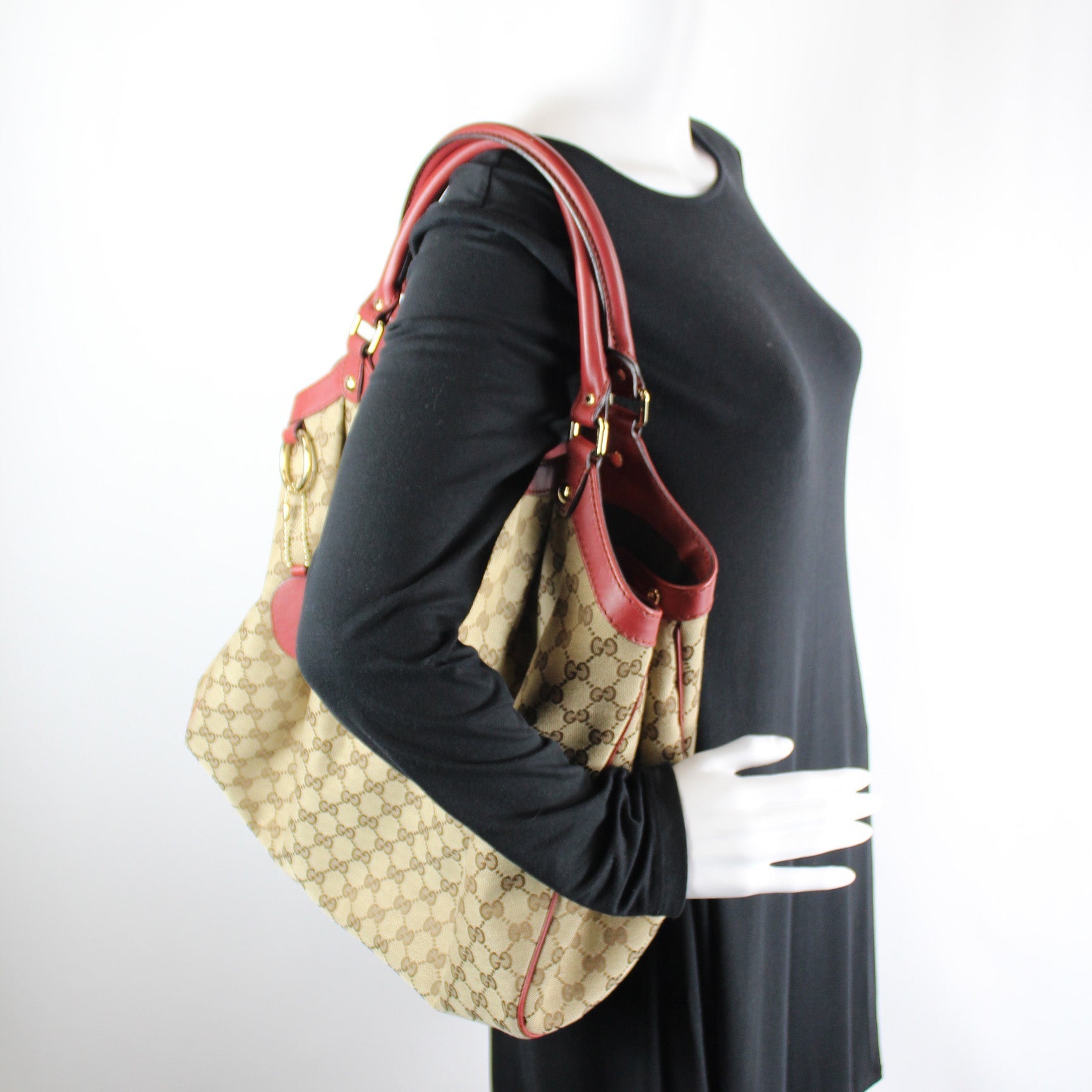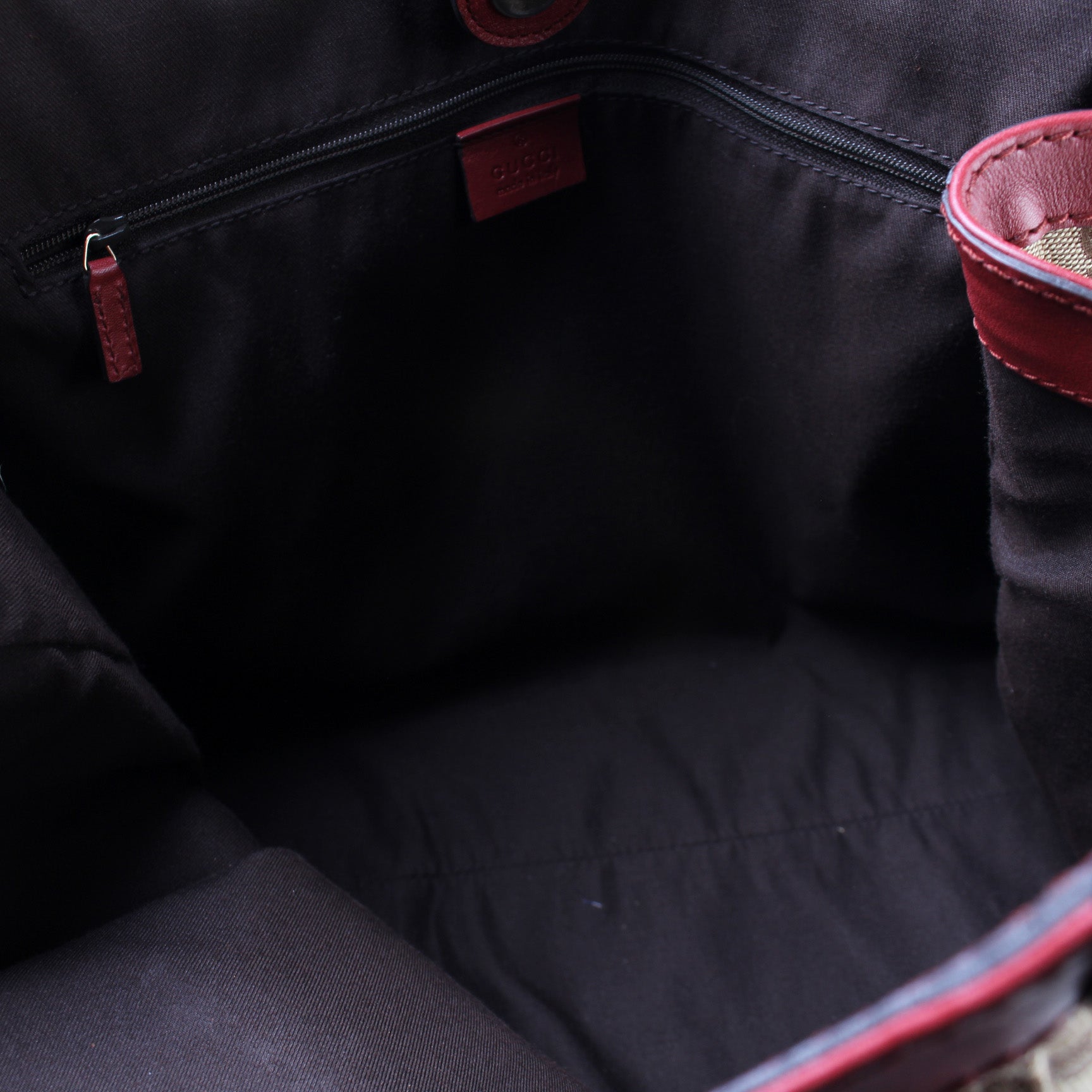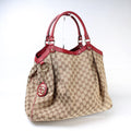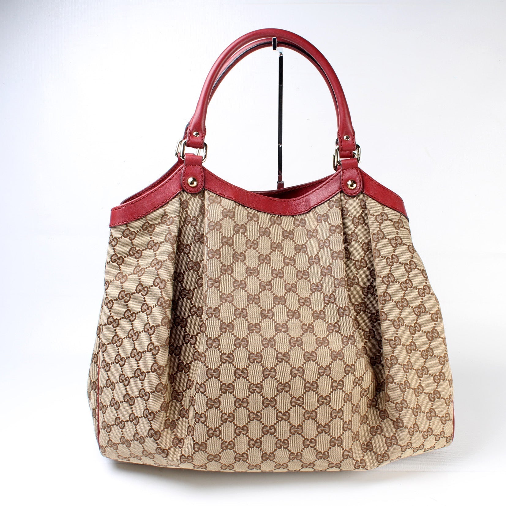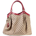 This Gucci Sukey Largeis eye catching bag. The exterior is in the classic Gucci GG canvas.