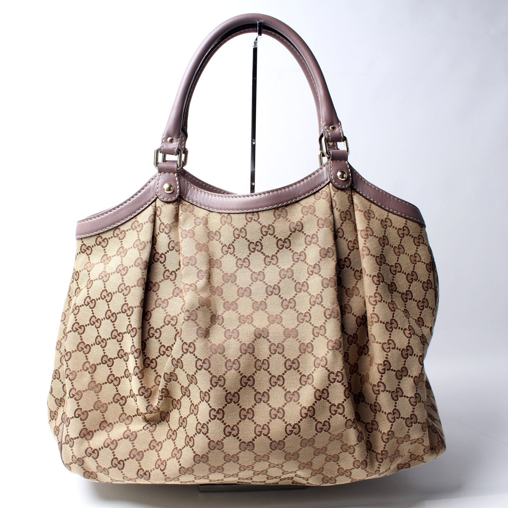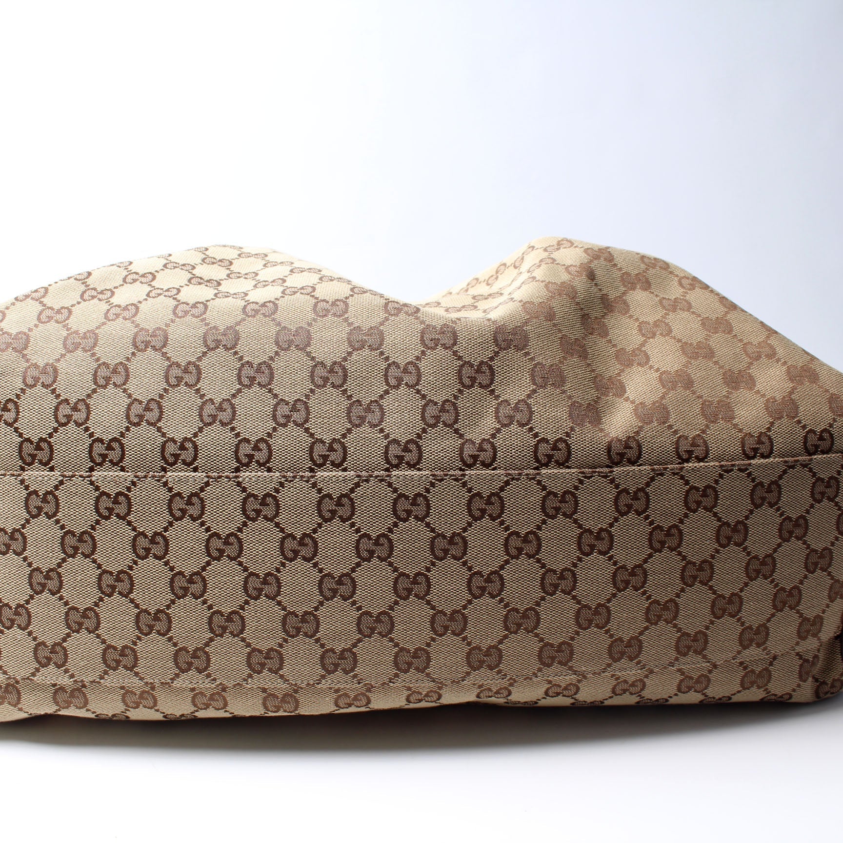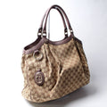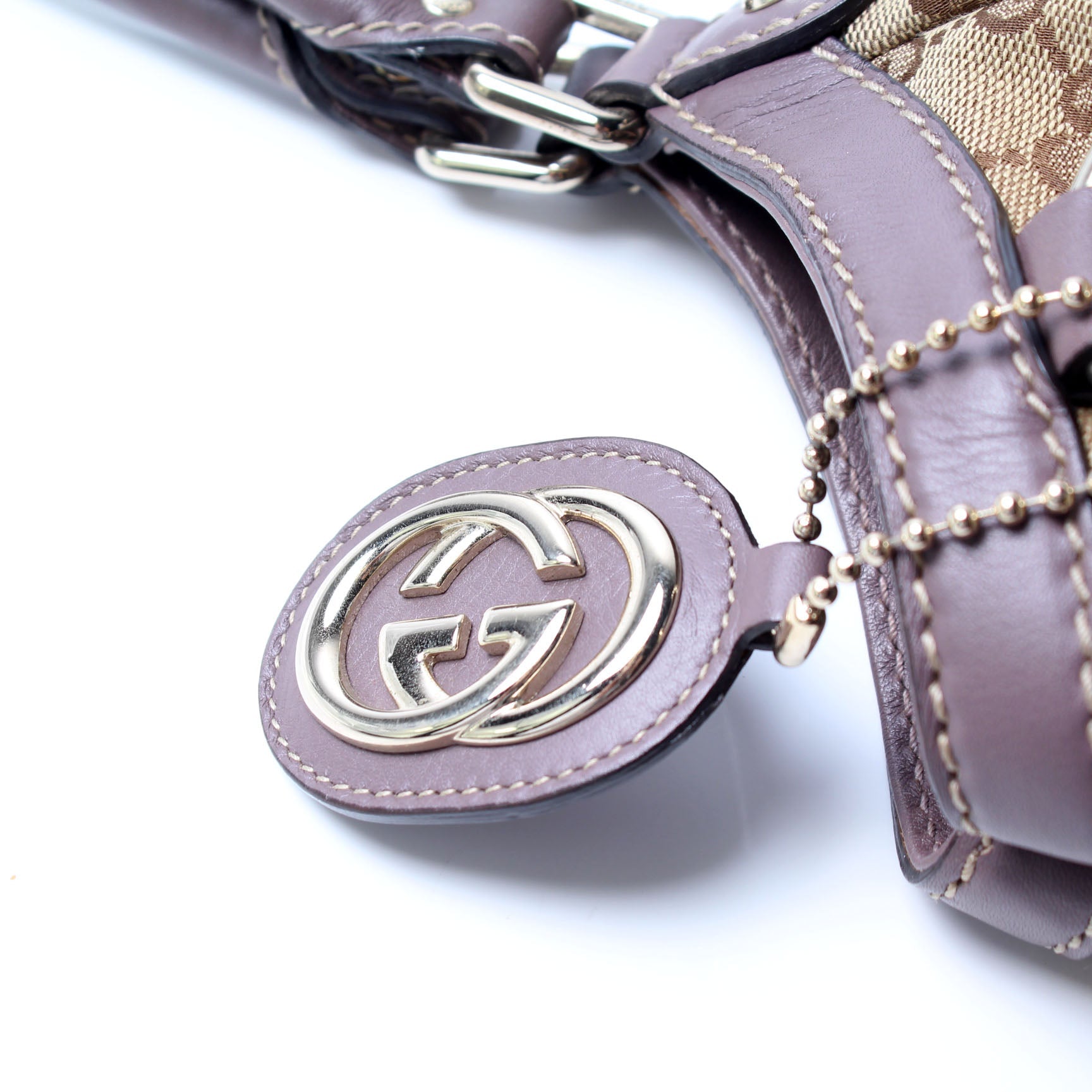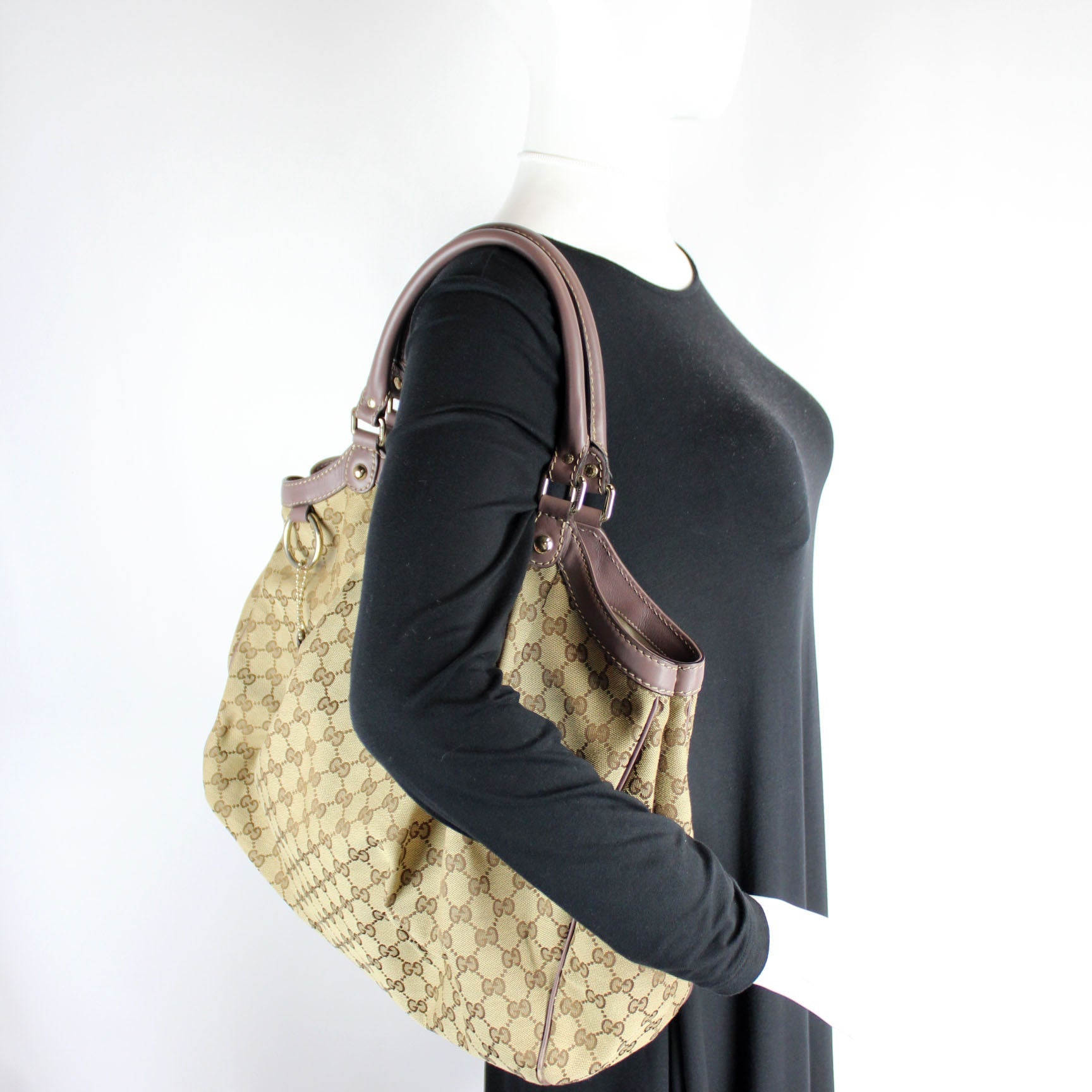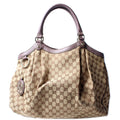 This Gucci Sukey Largeis eye catching bag. The exterior is in the Gucci canvas.