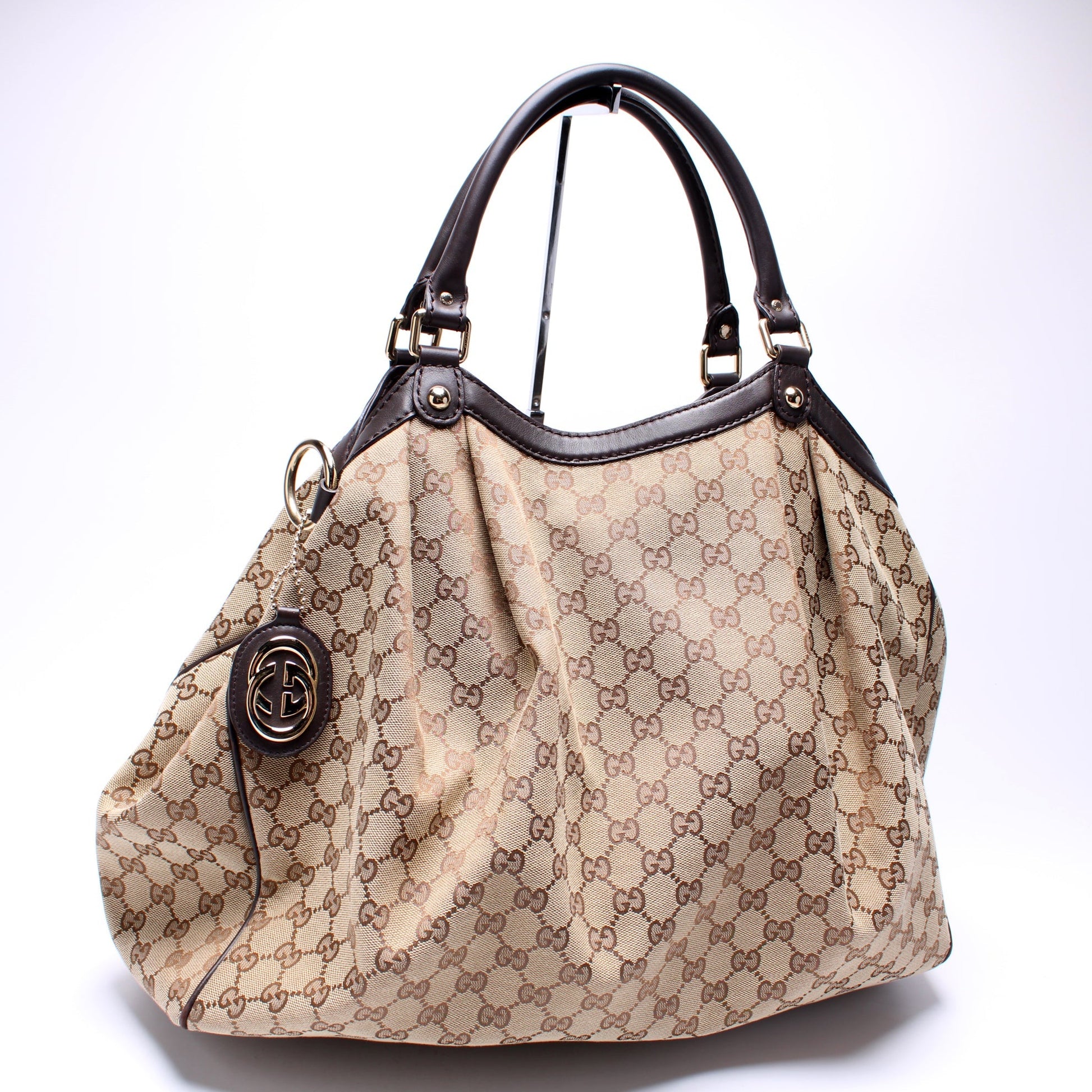 This Gucci Sukey GG Canvas Largeis eye catching bag.