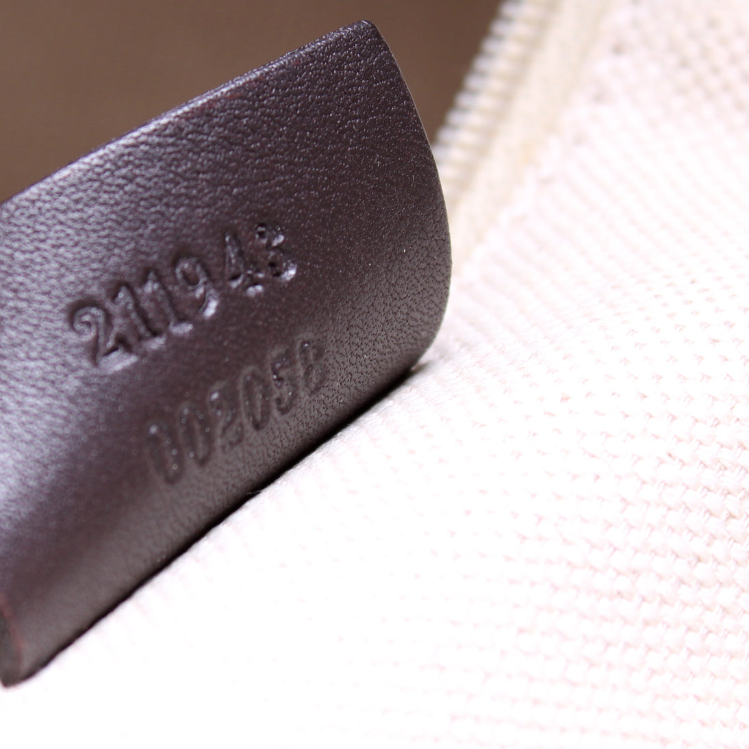 Interior: The interior has minor stains and features one zip closure pocket.