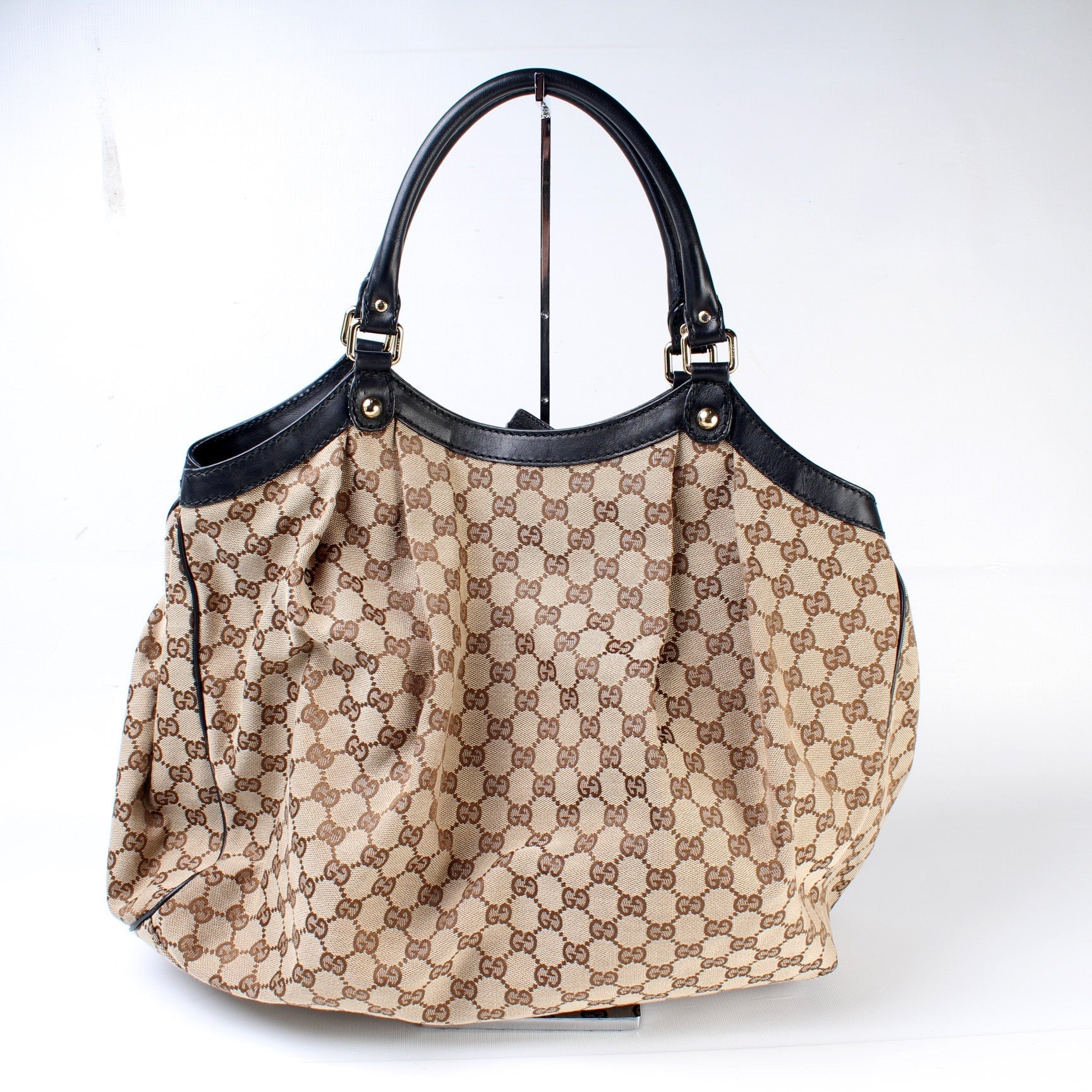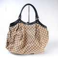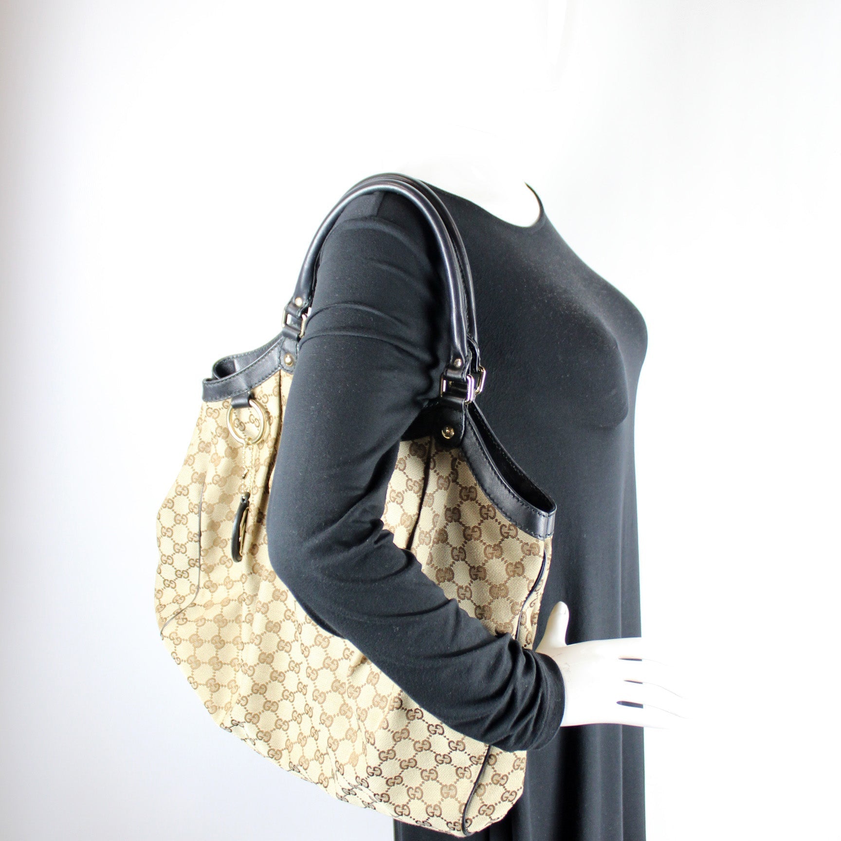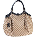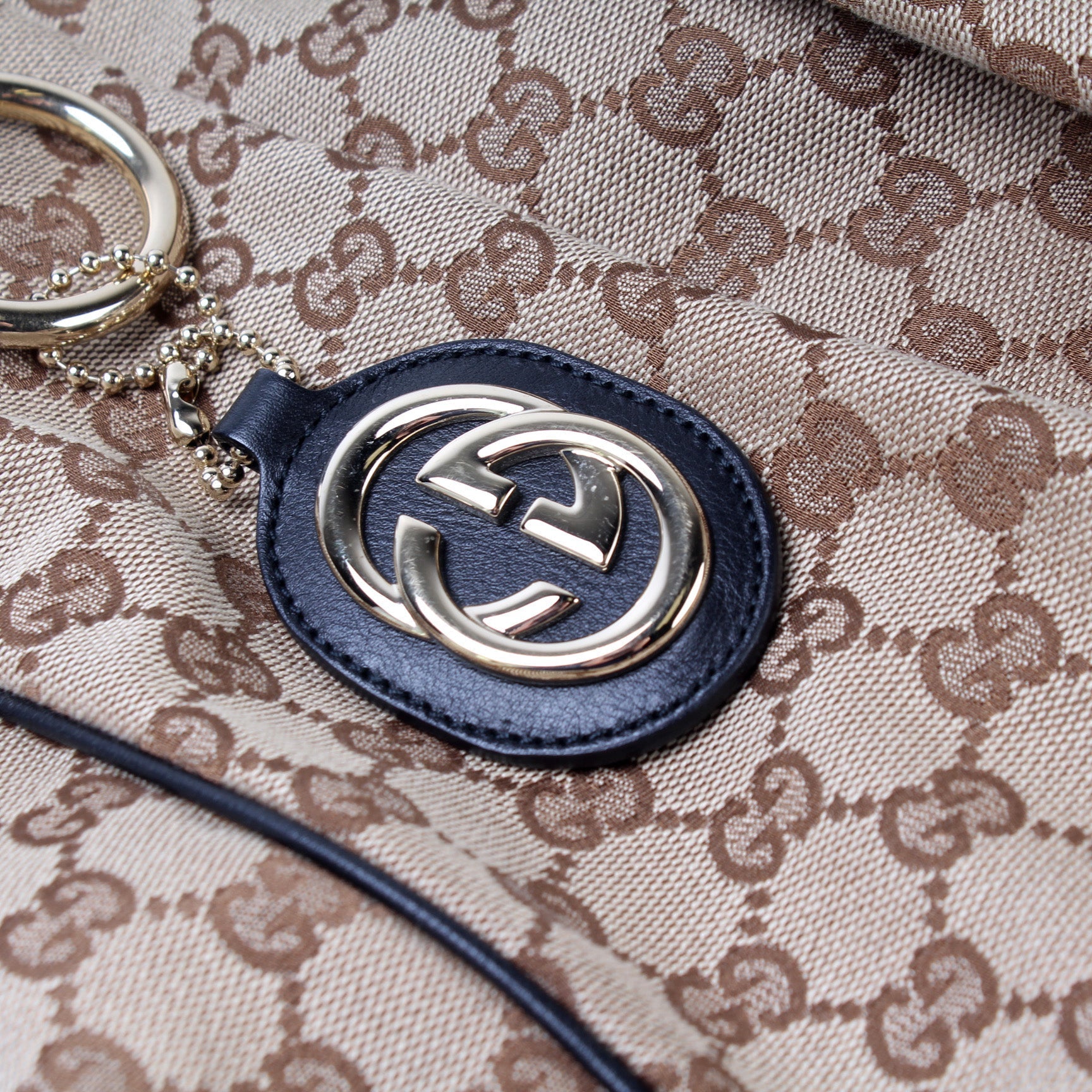 This Gucci Sukey Largeis eye catching bag. The exterior is in the GG Canvas.