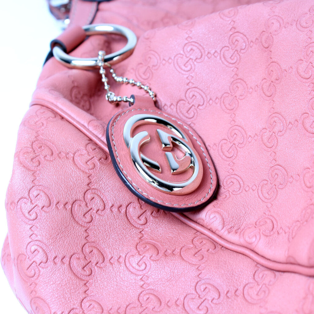 This Gucci Sukeyis eye catching bag. The exterior is in the classic Gucci GG Guccisima leather.