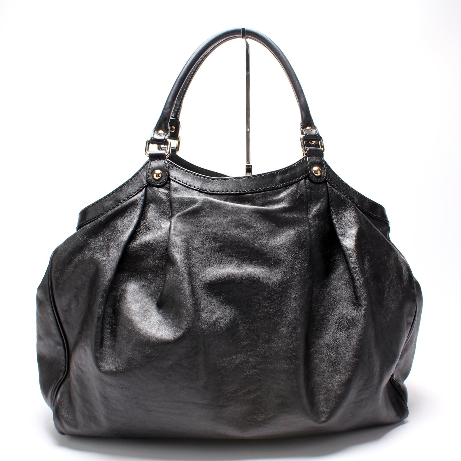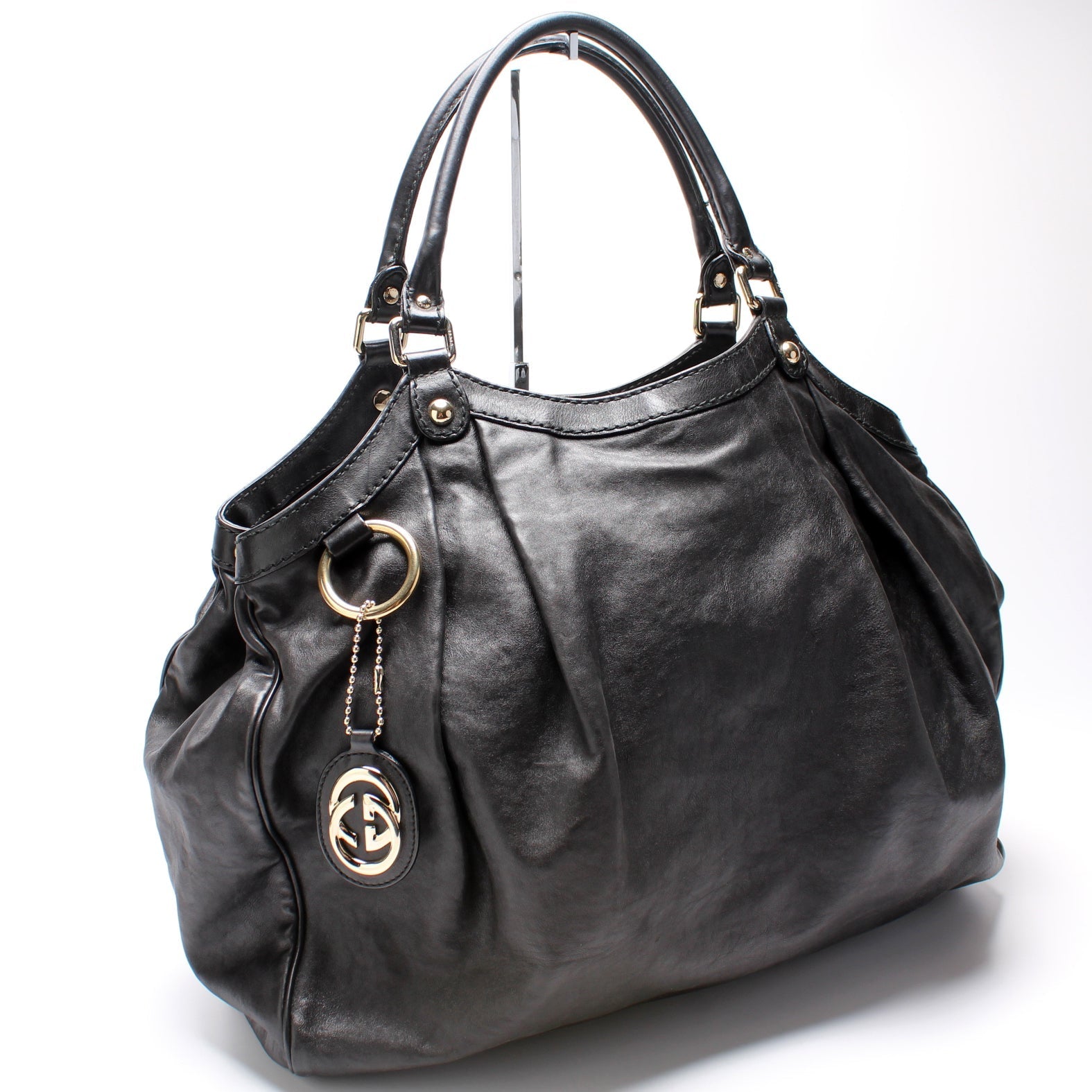 This Gucci Sukey Largeis eye catching bag. The exterior is in the classic Gucci leather.