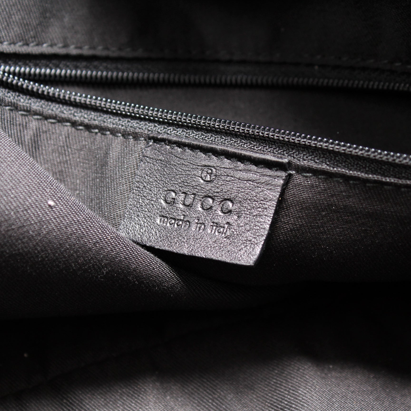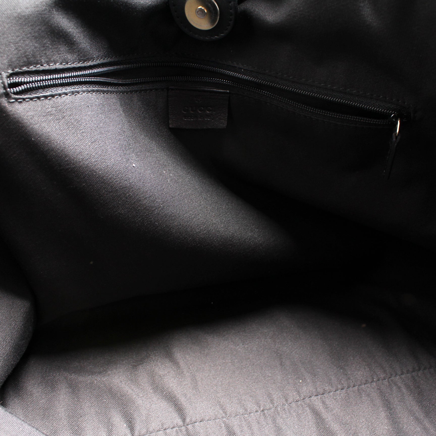 Interior: The interior is clean and free of rips or tears. The interior features one zip closure pocket.