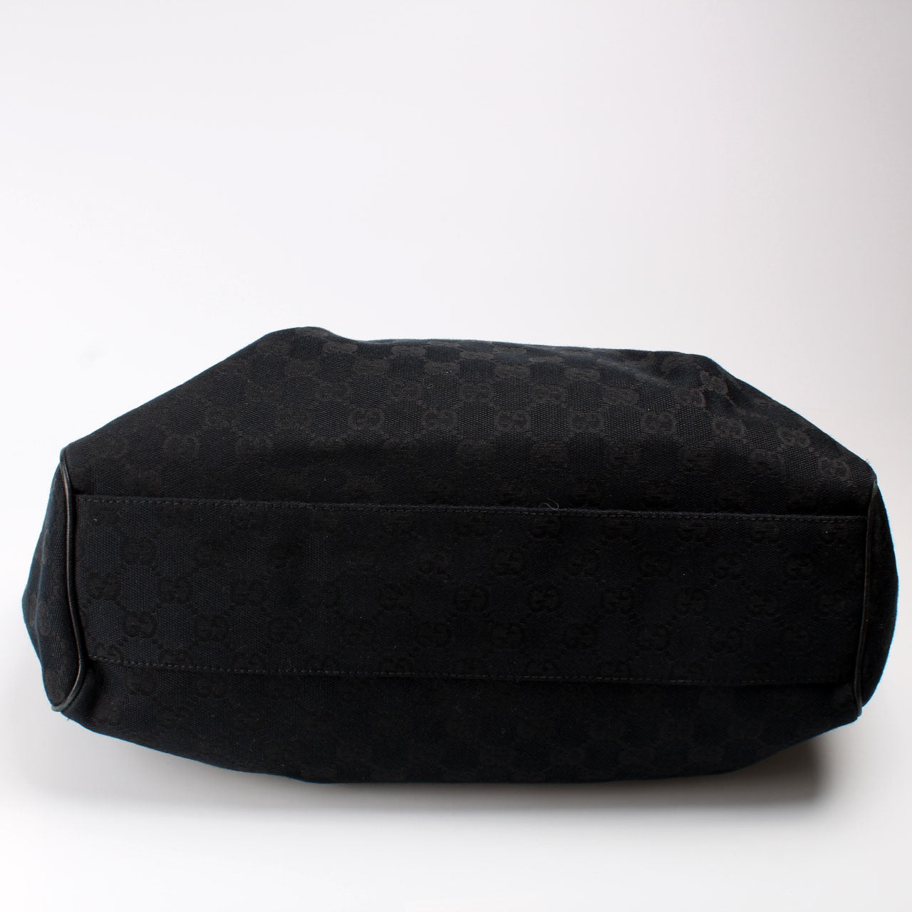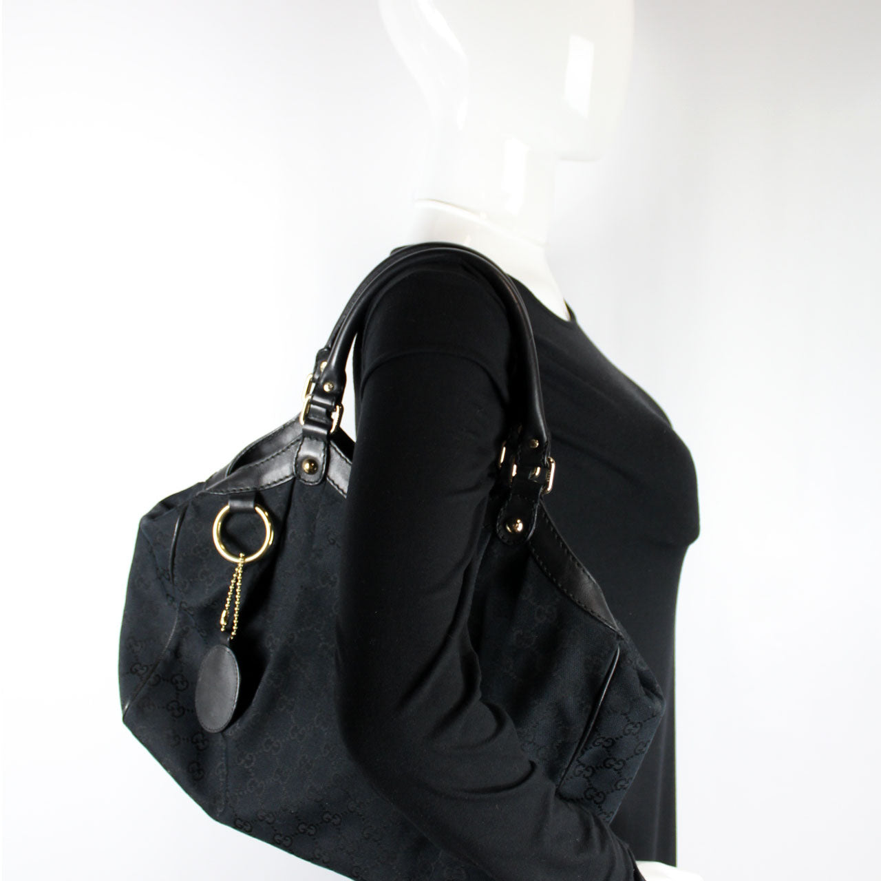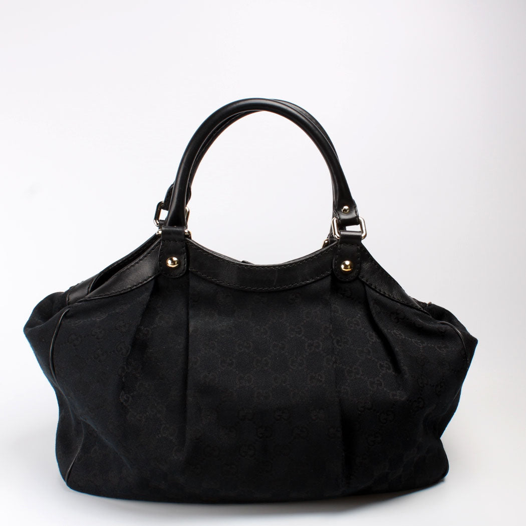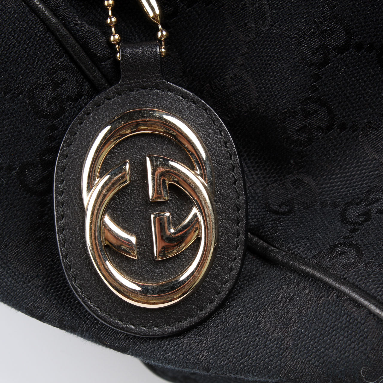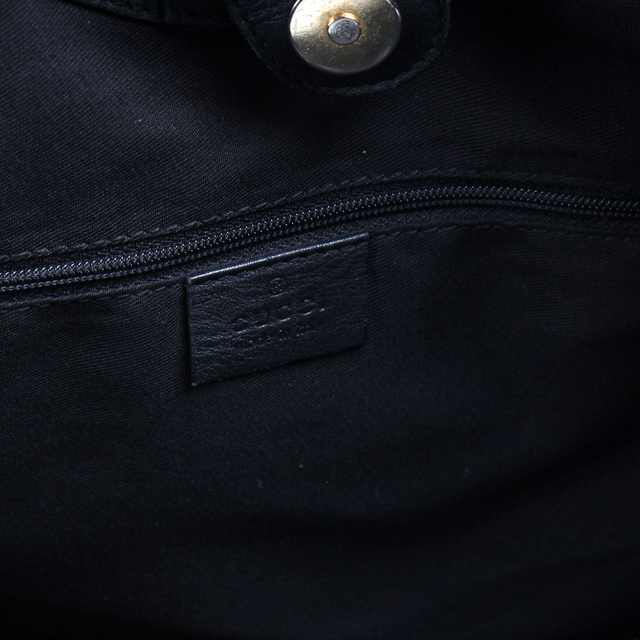 This Gucci Sukey Mediumis eye catching bag. The exterior is in the GG canvas.