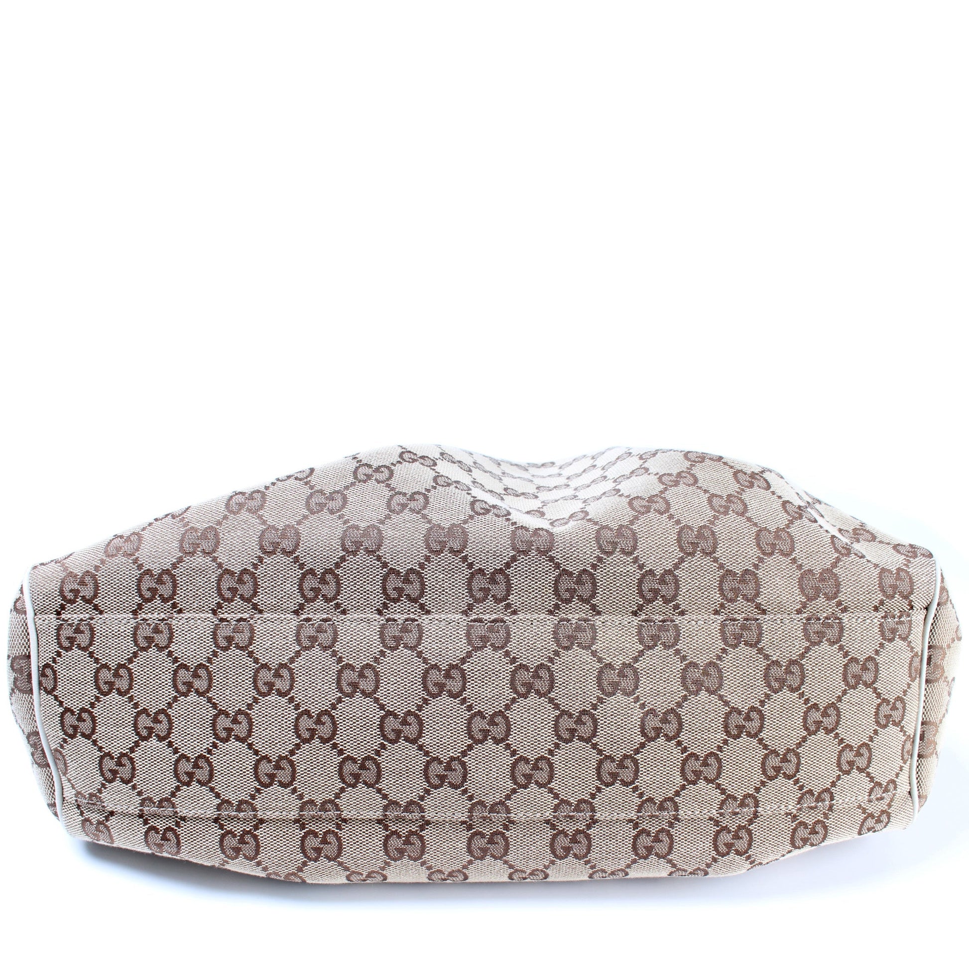This Gucci Sukey Mediumis eye catching bag. The exterior is in the classic Gucci Guccissima leather.
