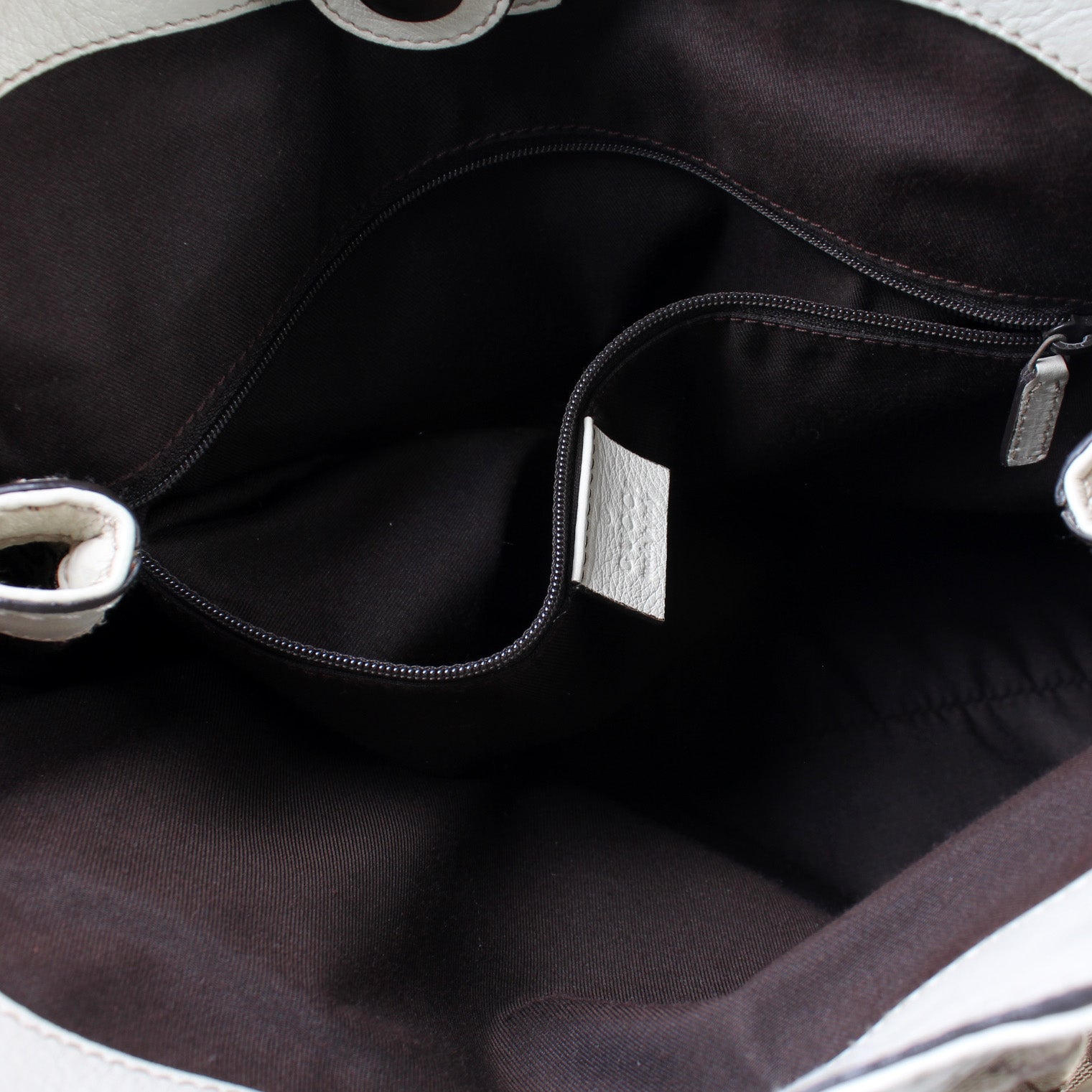 Interior: The interior is clean and free of rips or tears. The interior features one zip closure pocket.