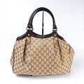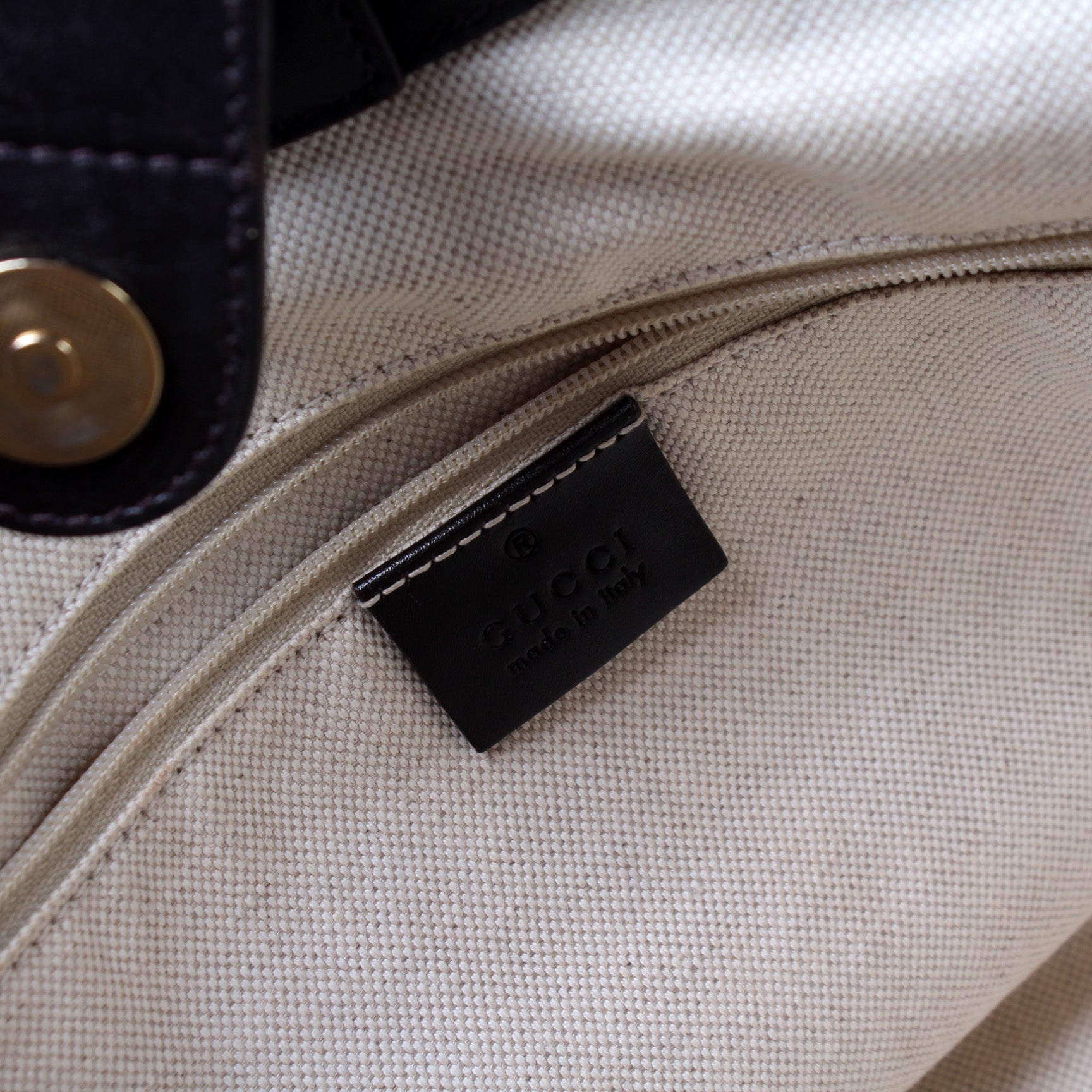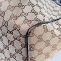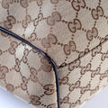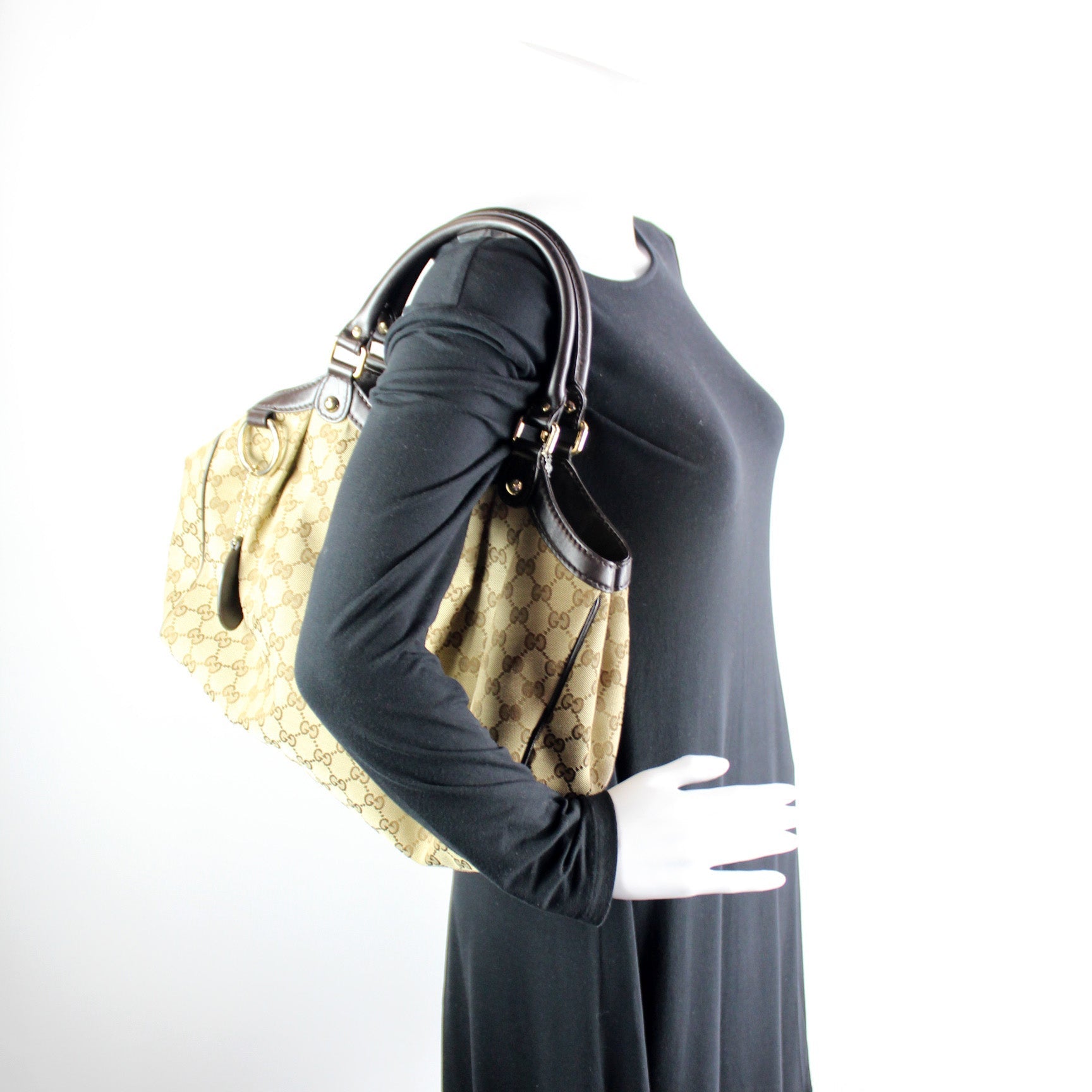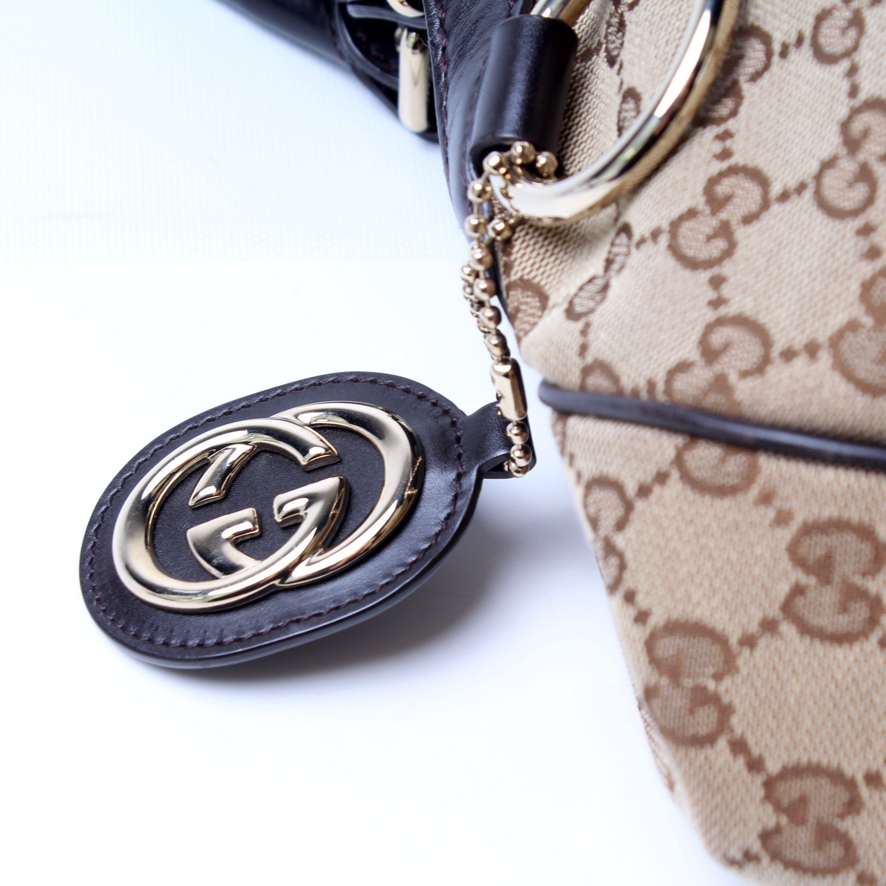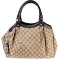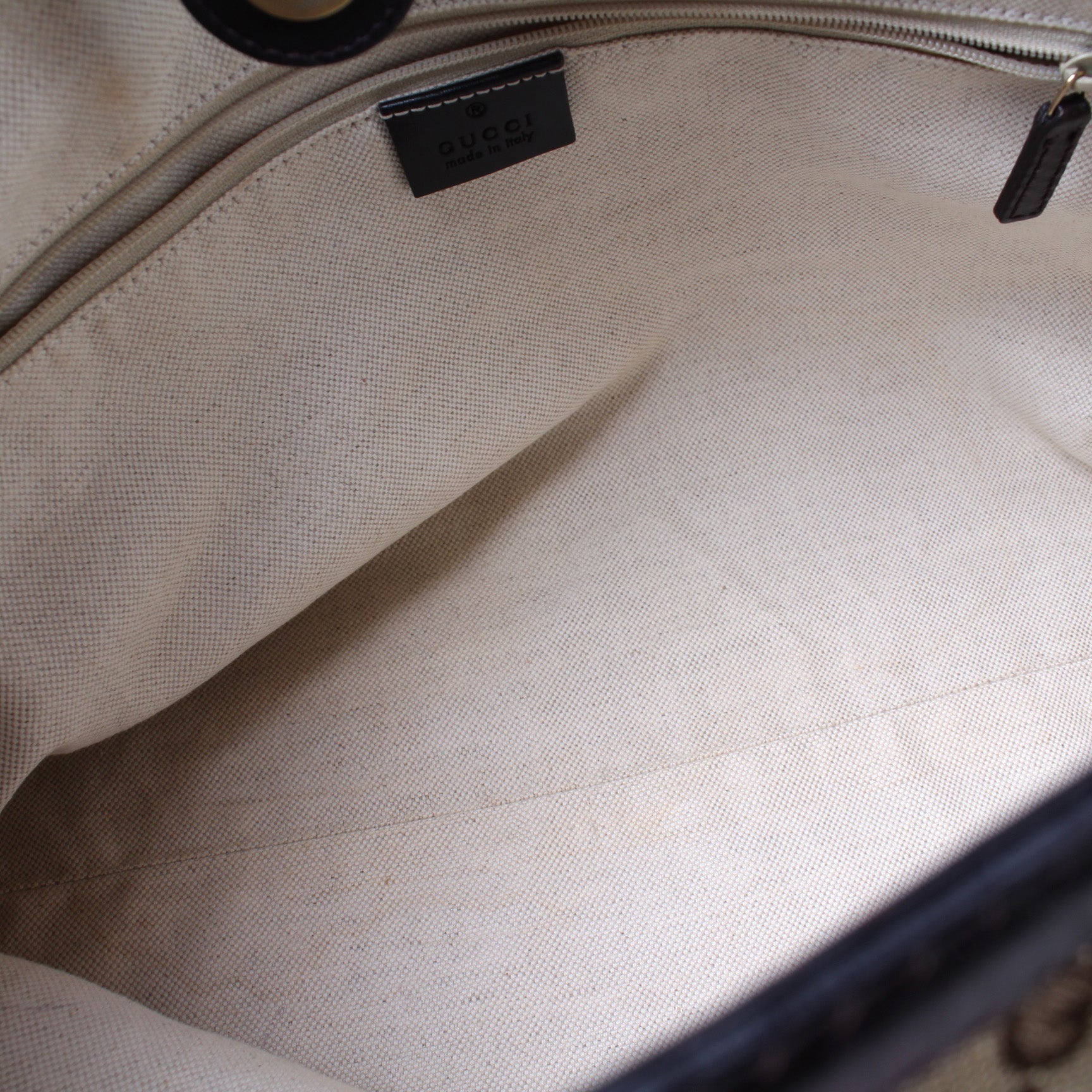 This Gucci Sukey Mediumis eye catching bag. The exterior is in the Gucci GG canvas.