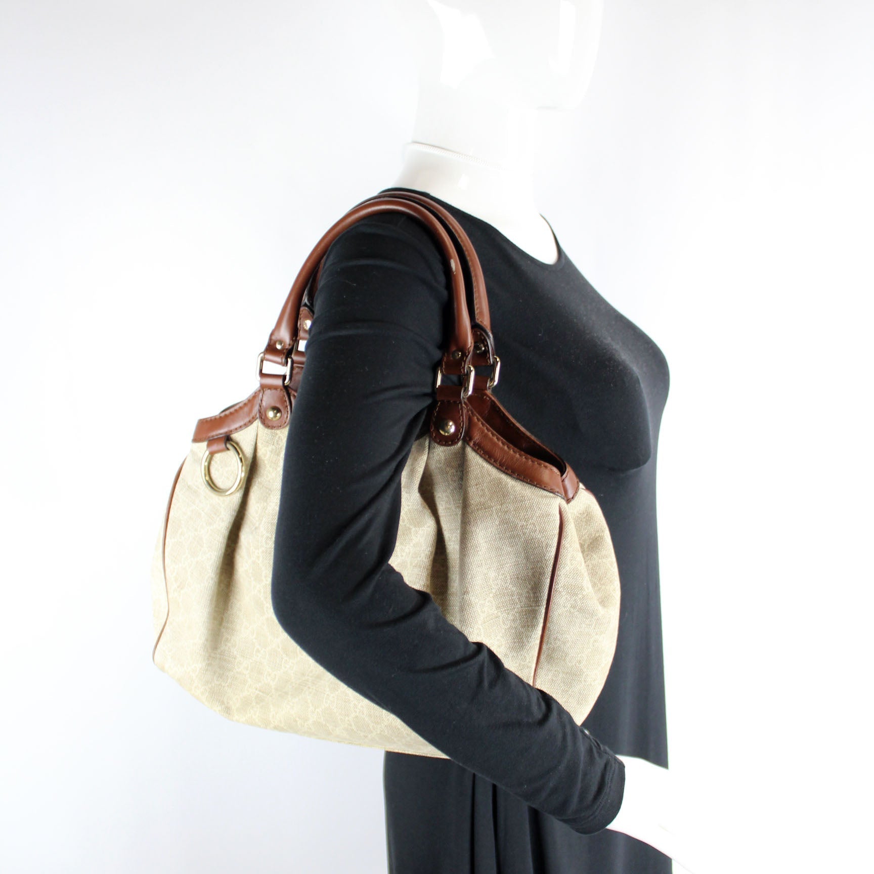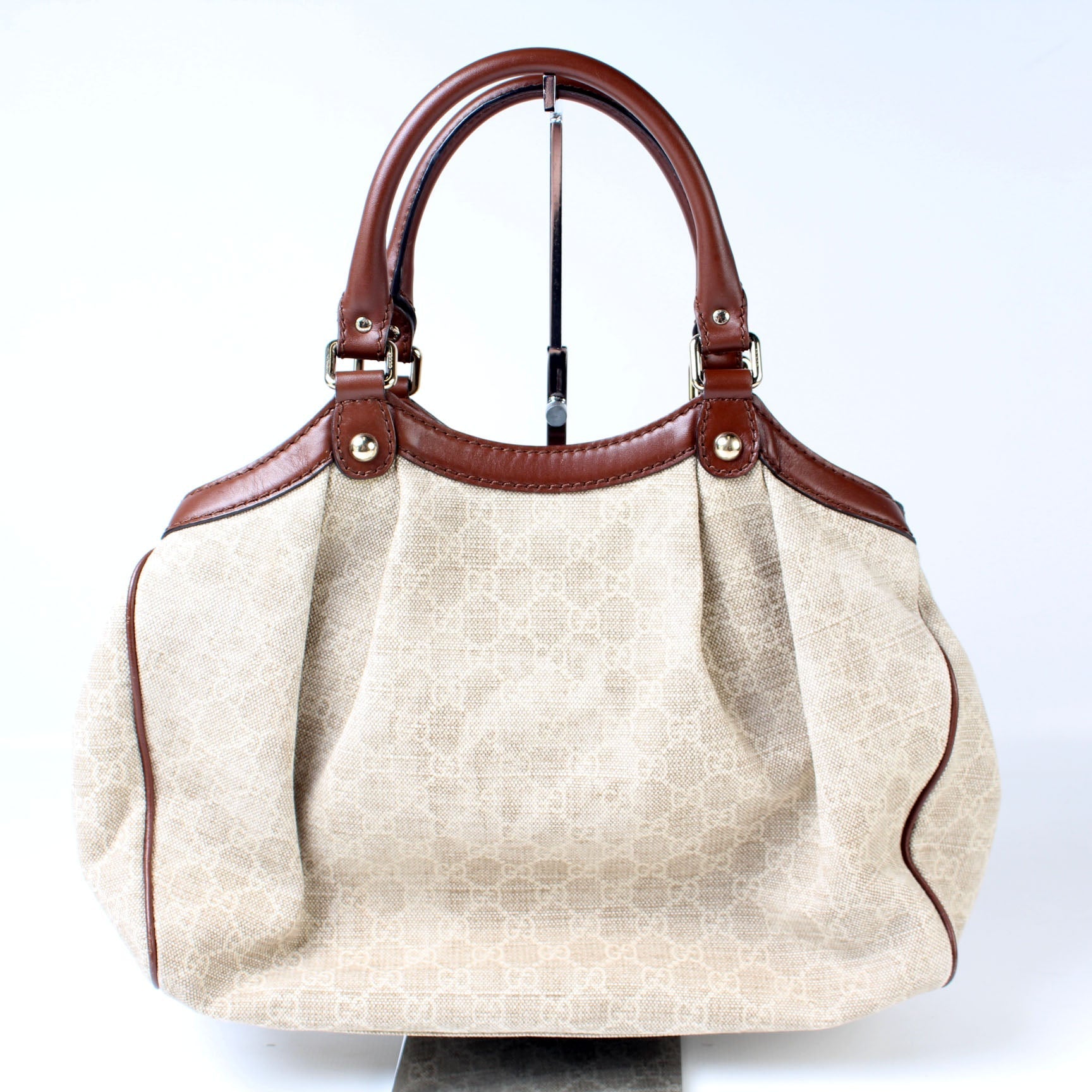 This Gucci Sukey Mediumis eye catching bag. The exterior is in the classic Gucci Guccissima leather.