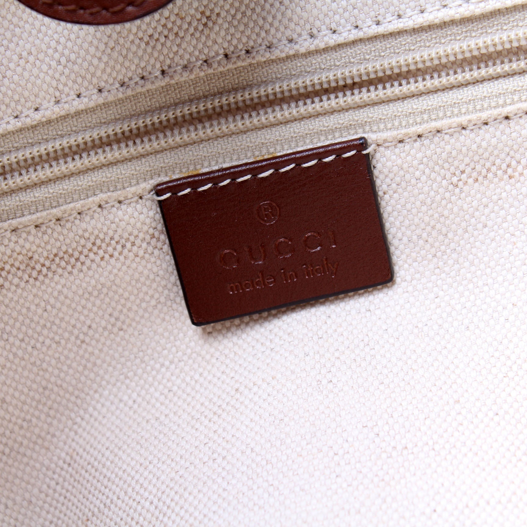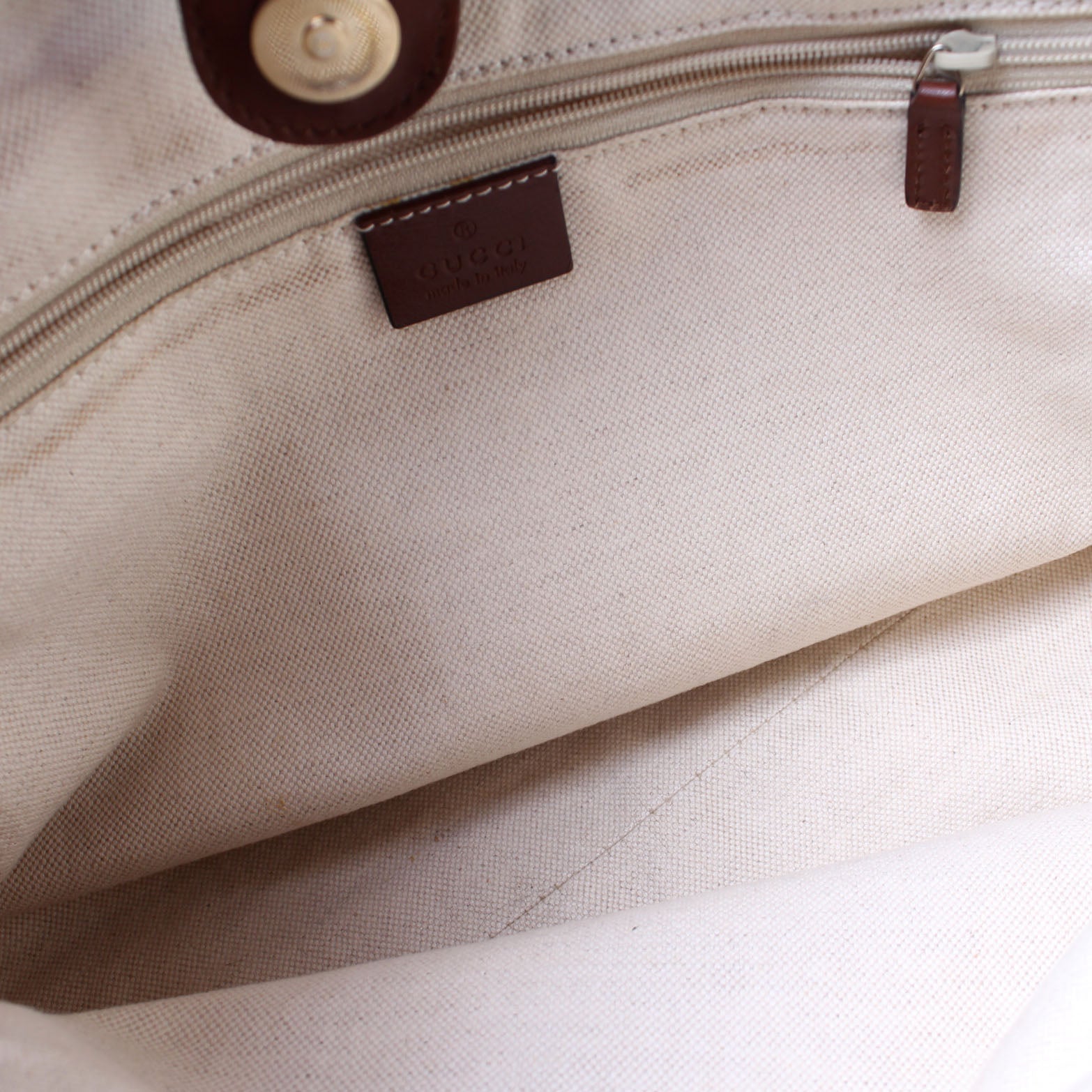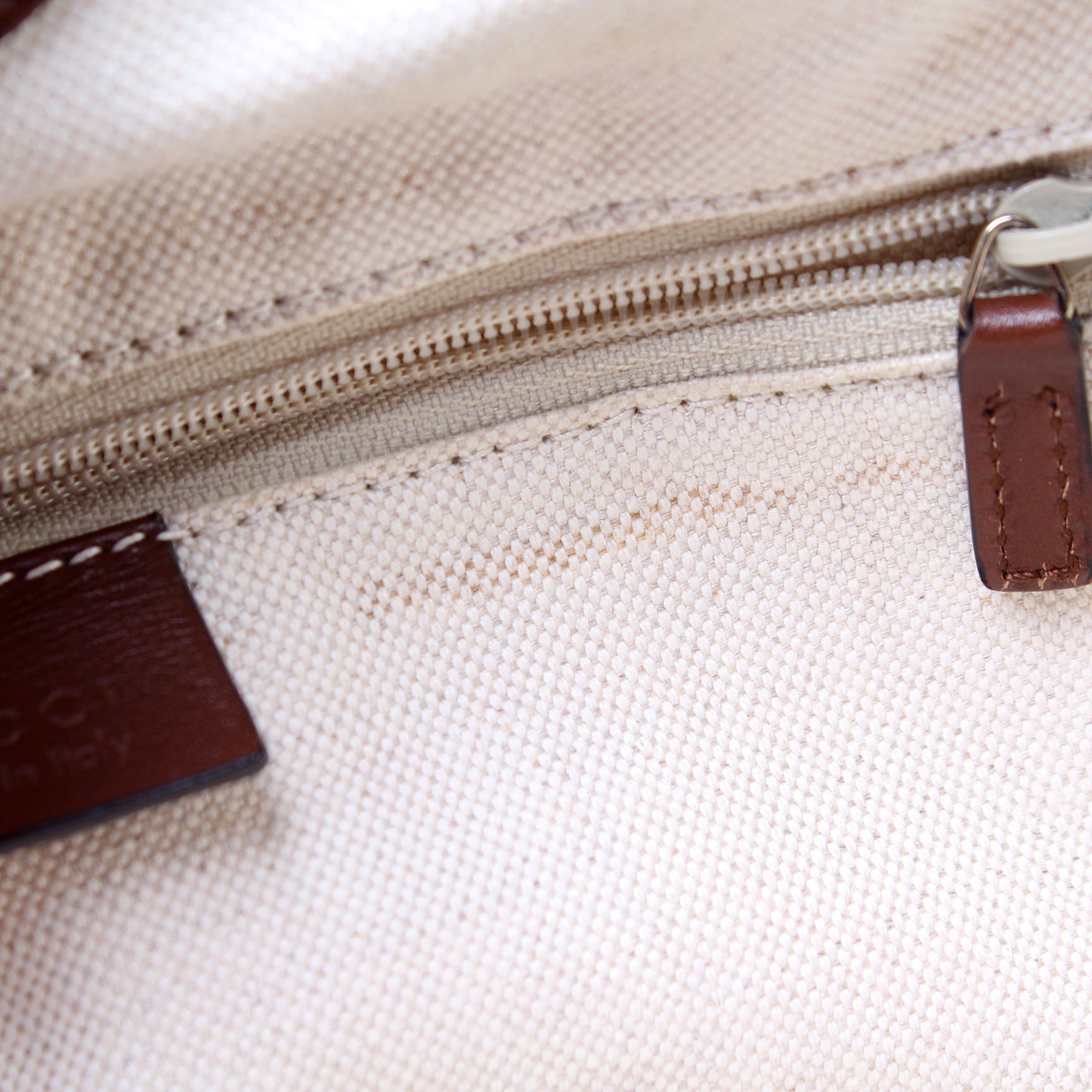 Interior: The interior is clean and free of rips or tears. The interior features one zip closure pocket.