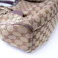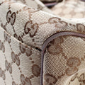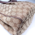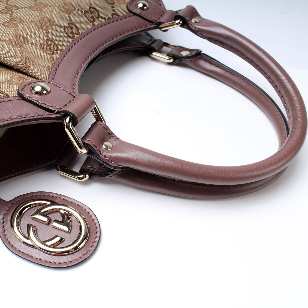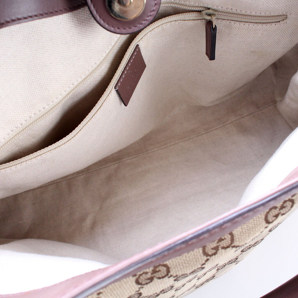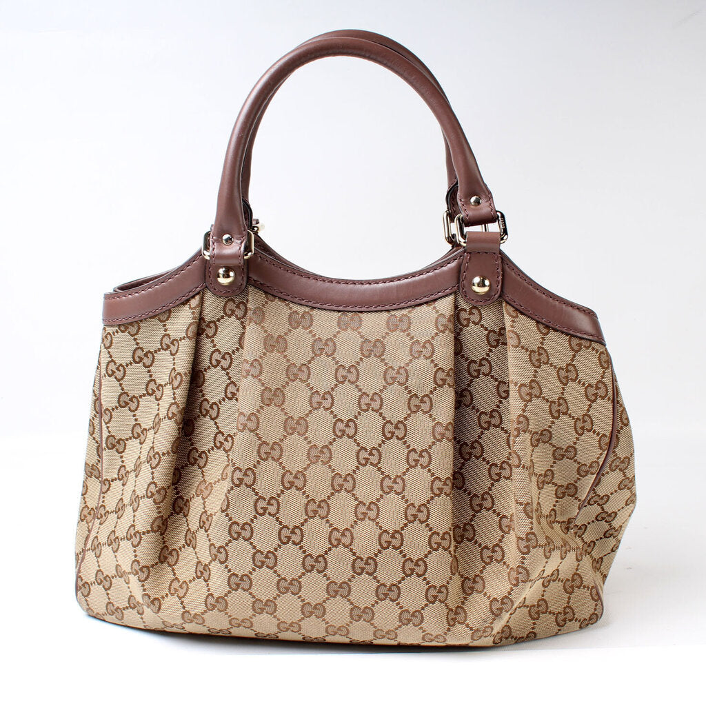 This Gucci Sukey Mediumis eye catching bag. The exterior is in the Gucci canvas.