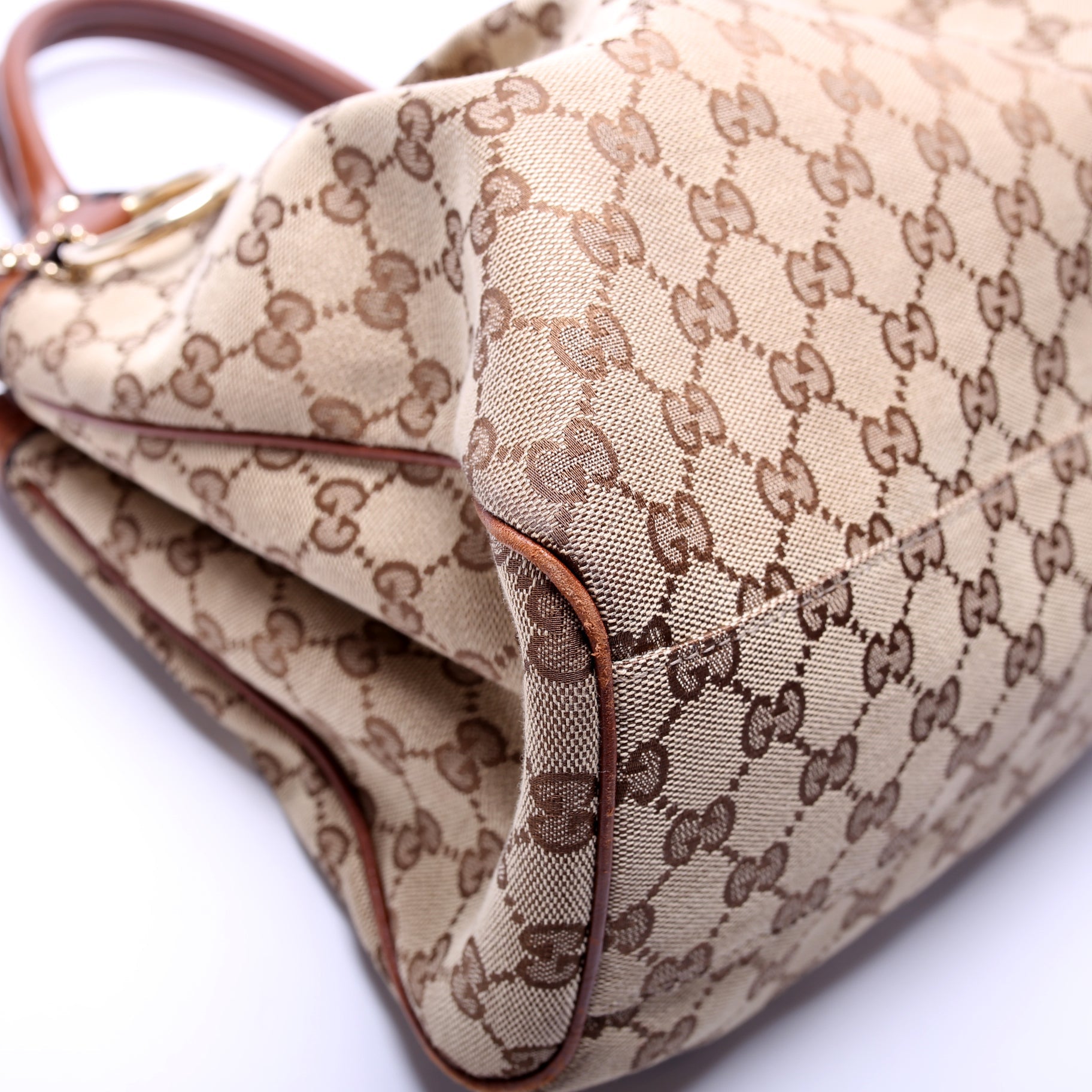 Handle: The leather handles show minor wear throughout. ,